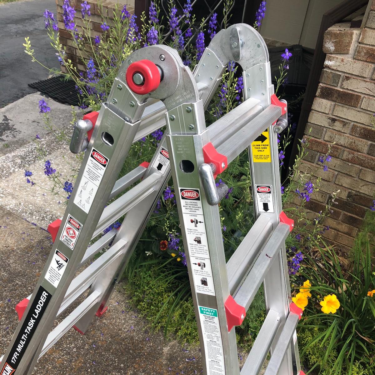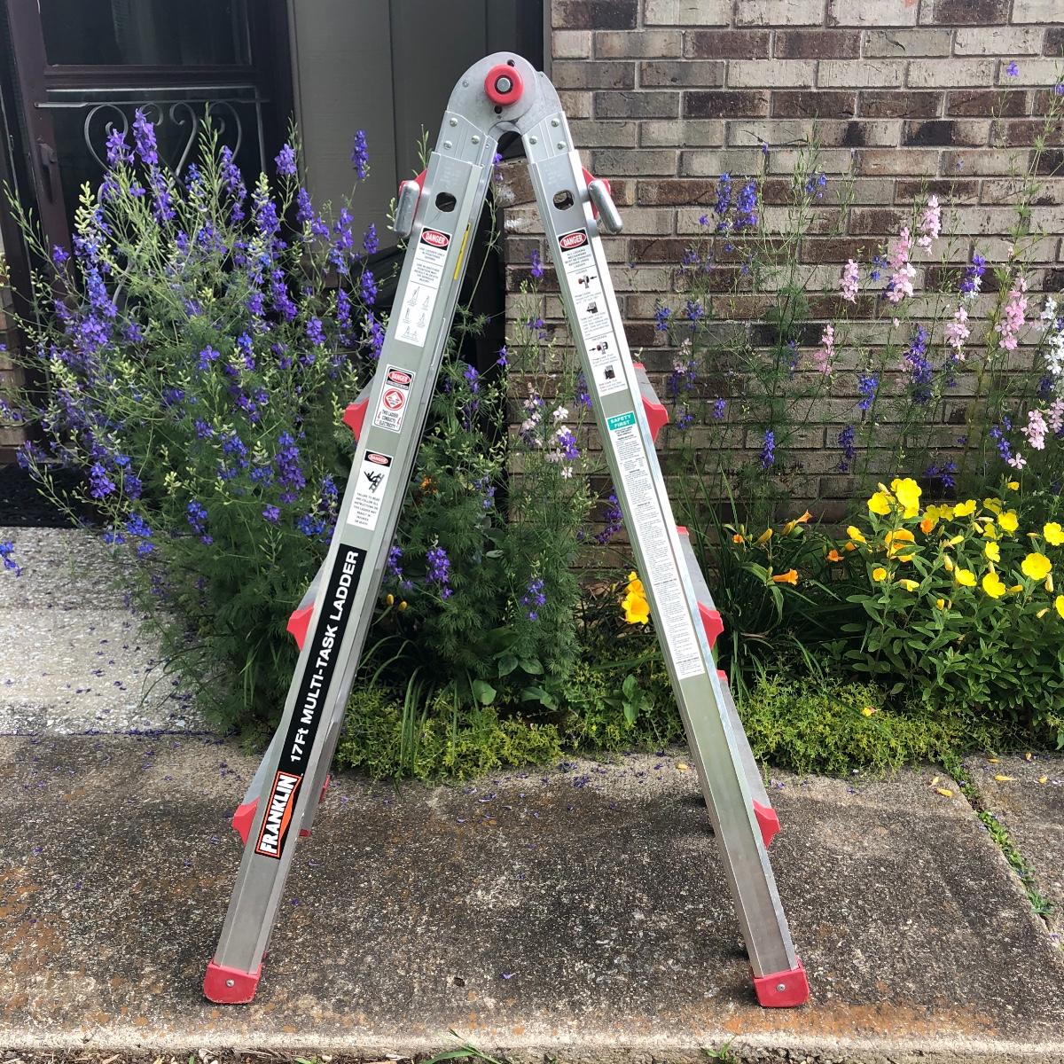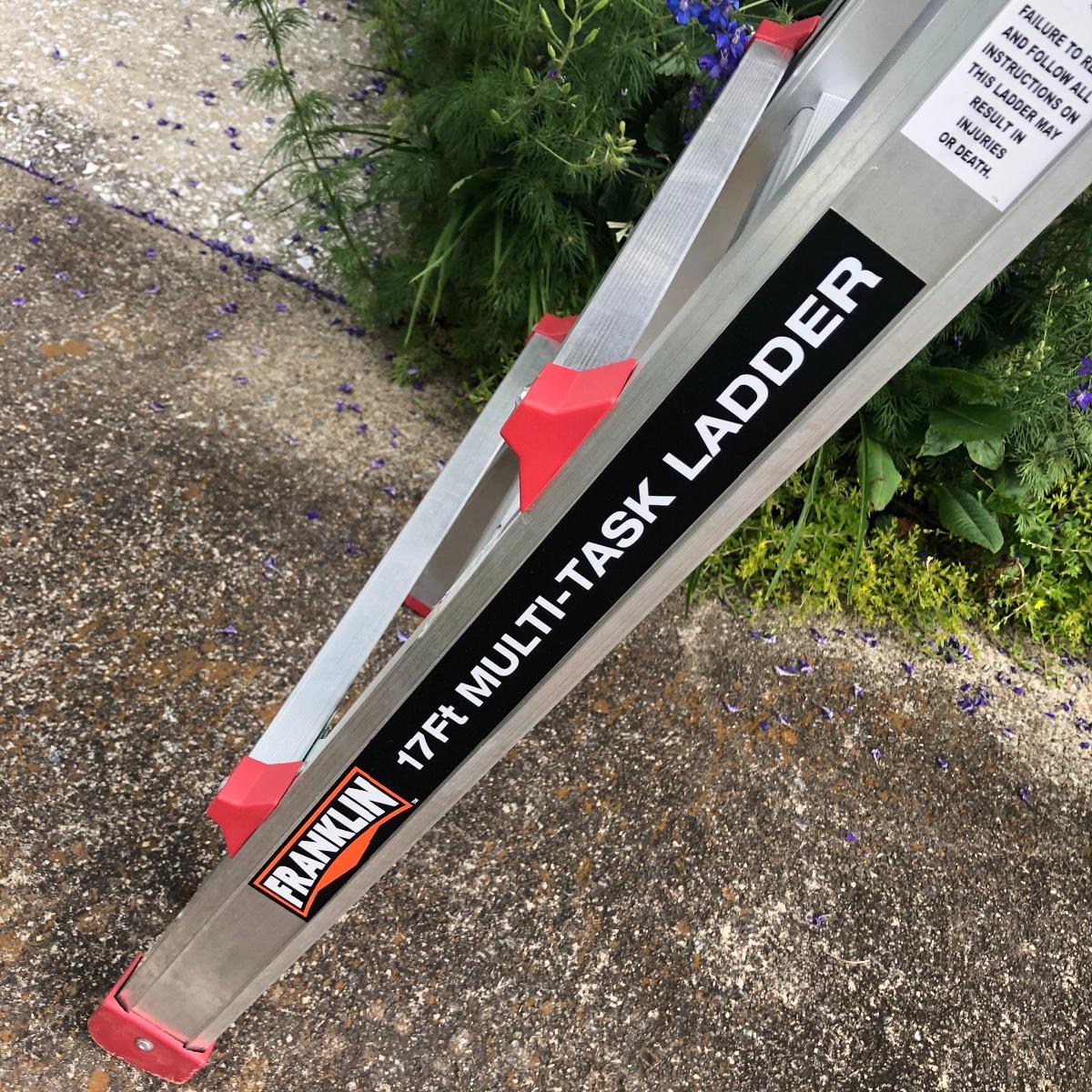 Franklin 17ft multi-task ladder. This ladder can stay in the double sided setting or extend to be a leaning ladder. From there, it can also be extended further on both ends.