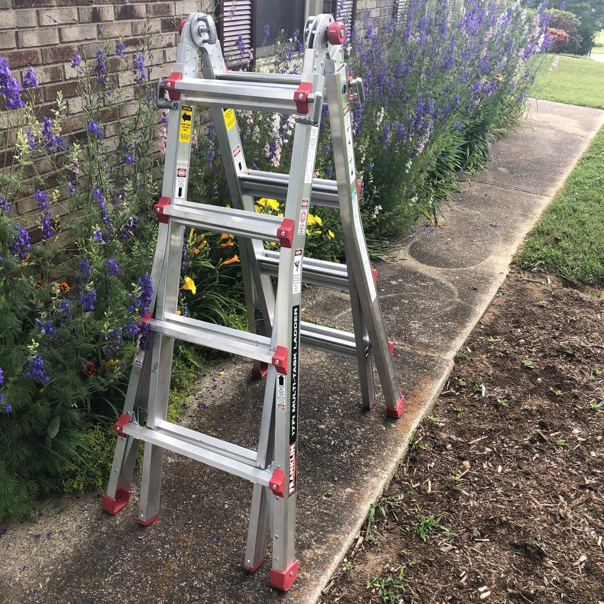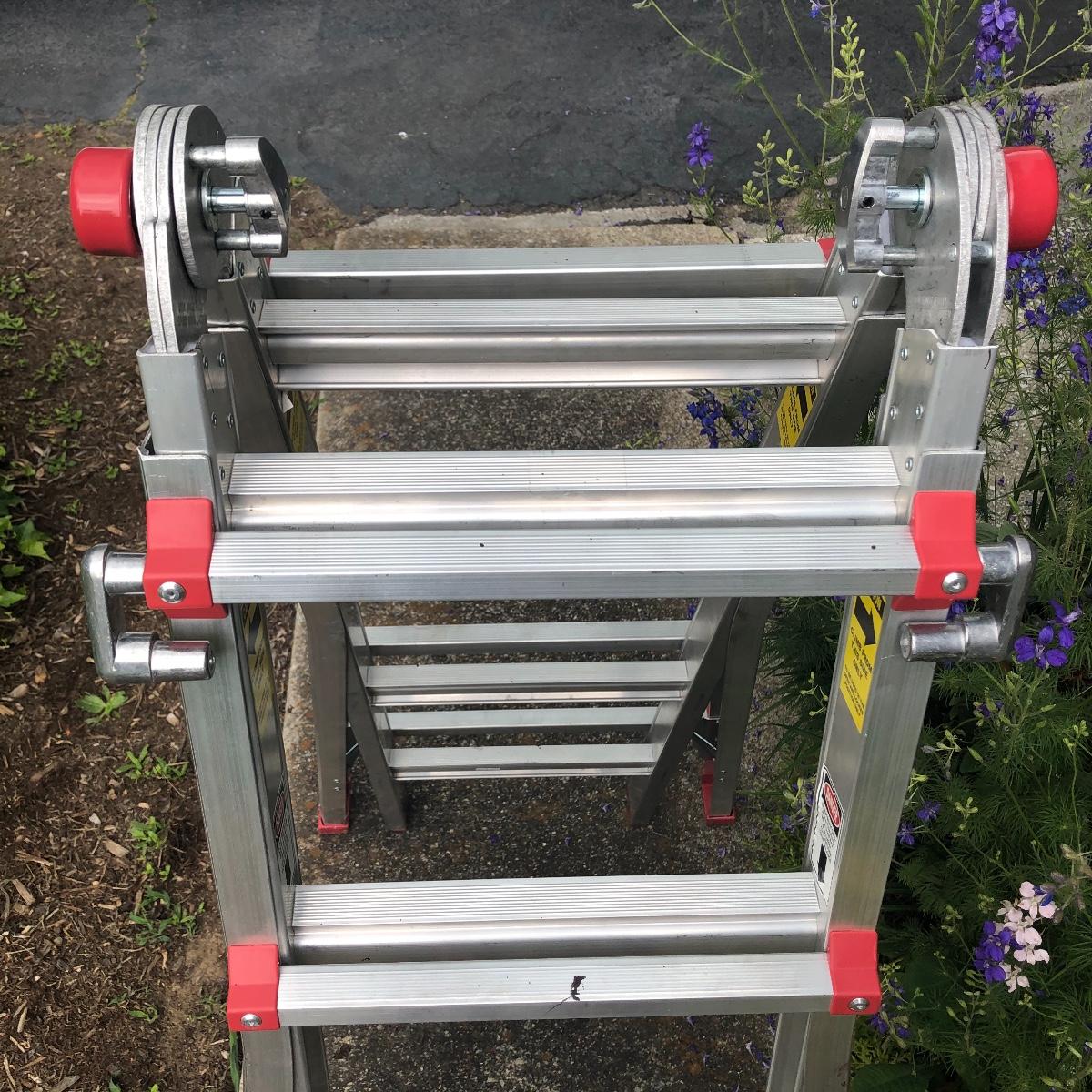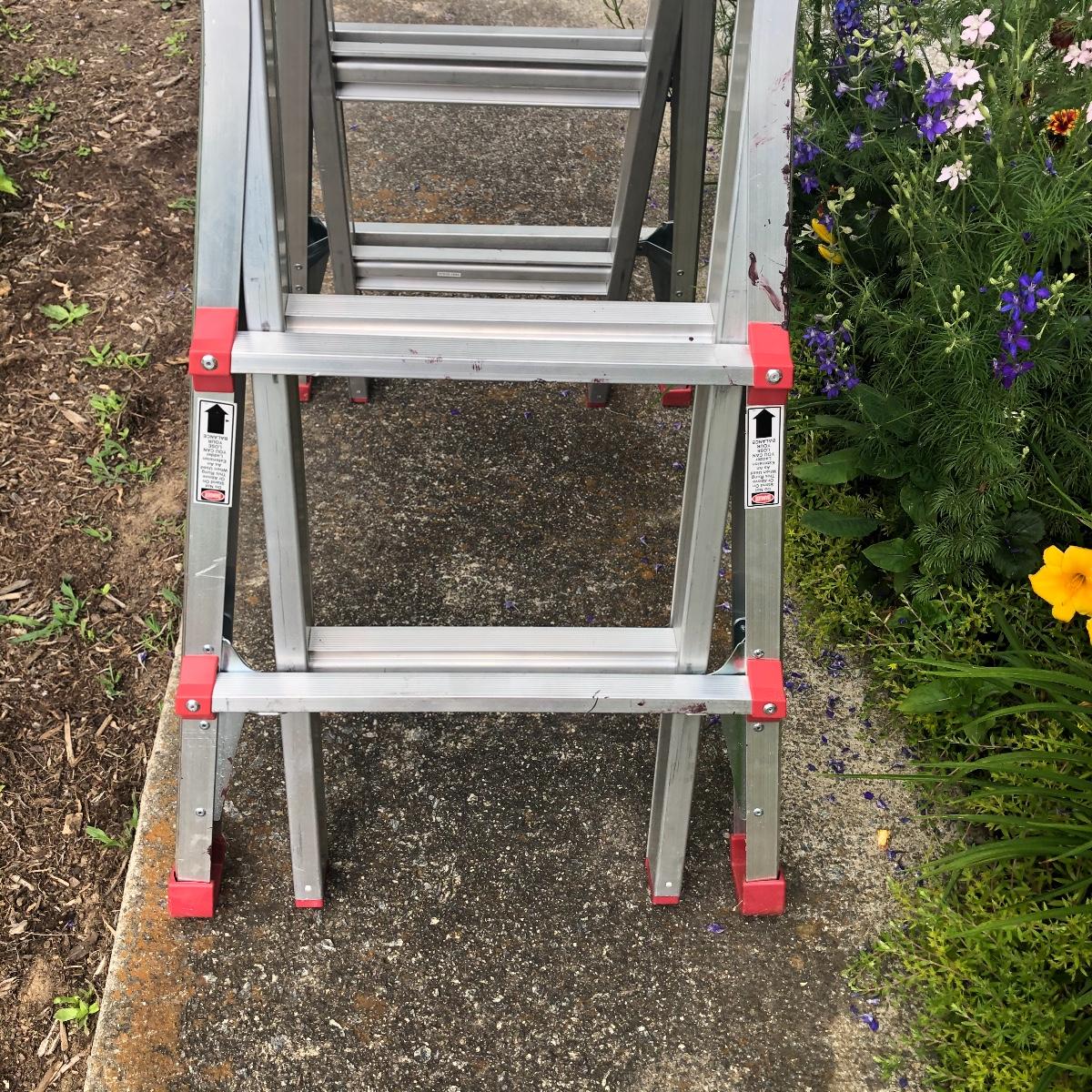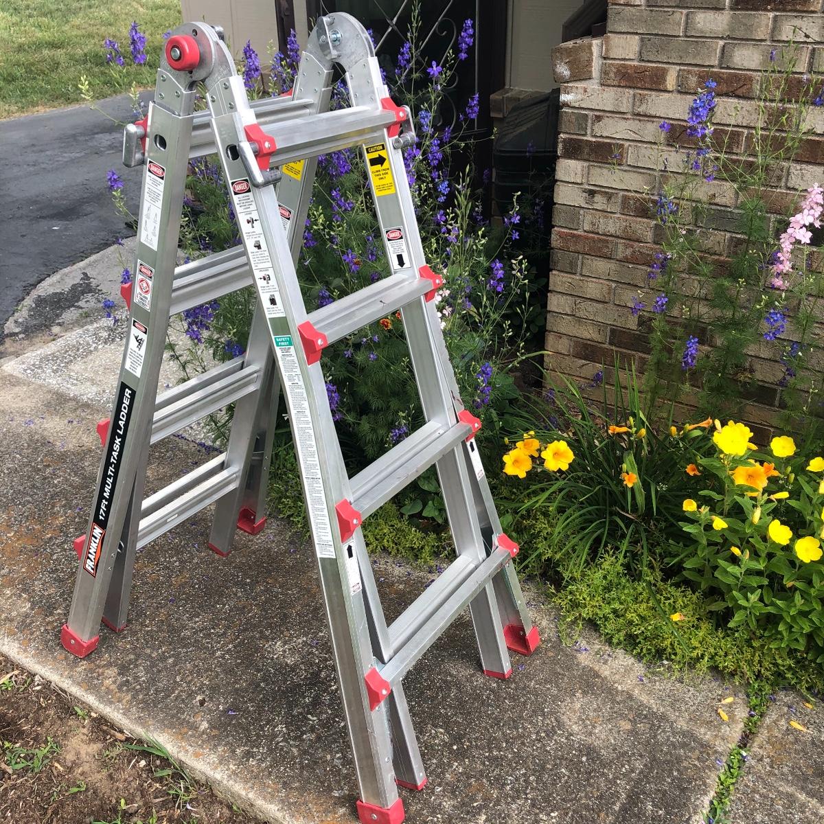 Franklin 17ft multi-task ladder. This ladder can stay in the double sided setting or extend to be a leaning ladder. From there, it can also be extended further on both ends.