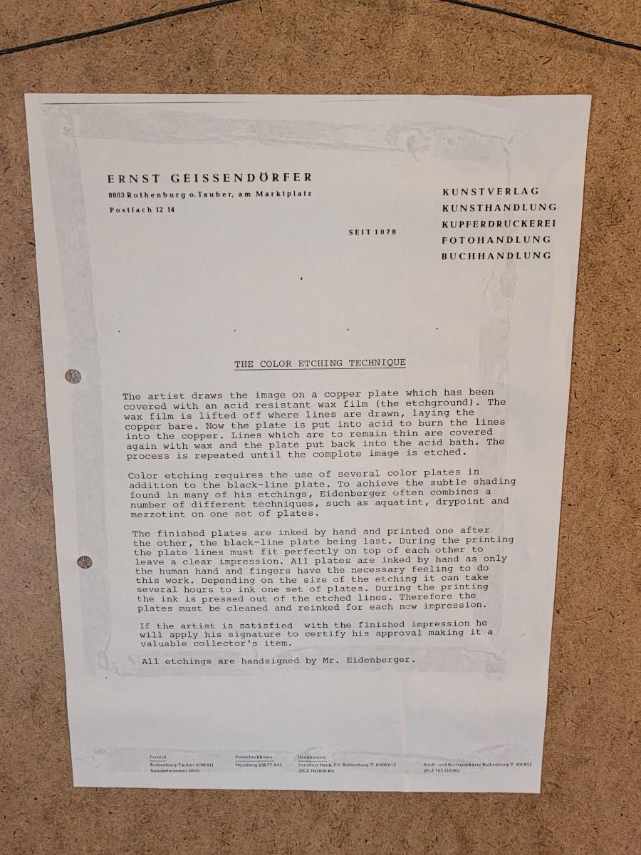 Lot 55: Josef Eidenberger Original Handsigned Etching