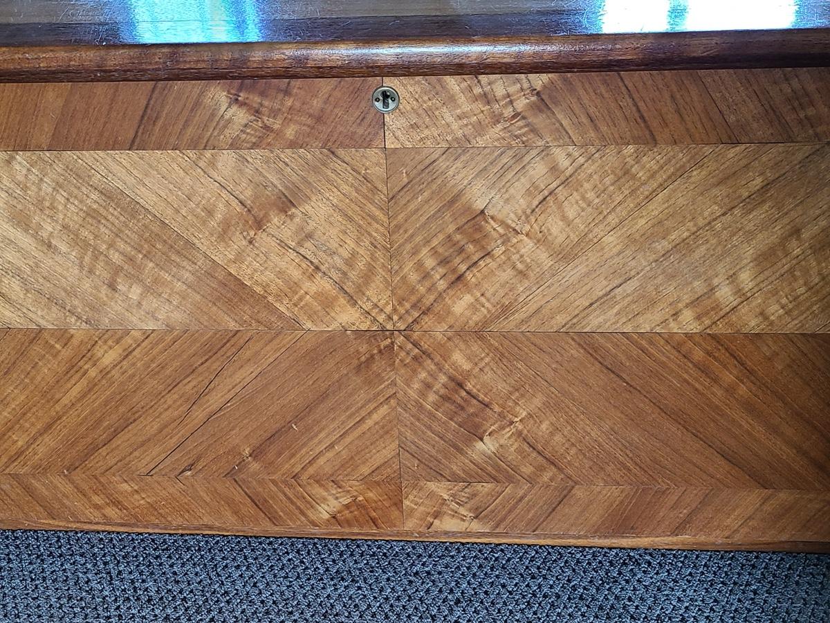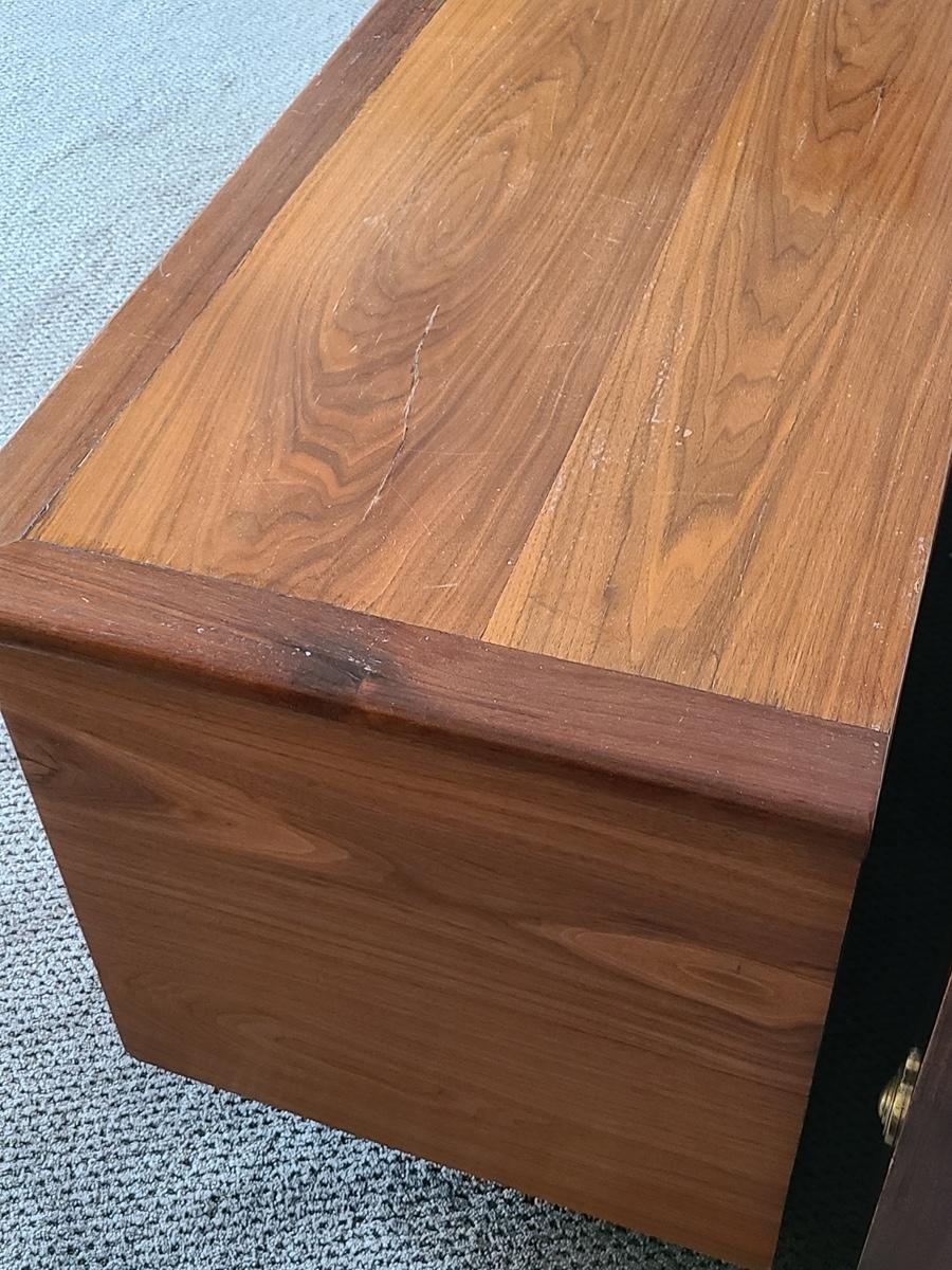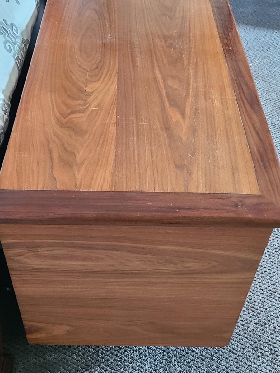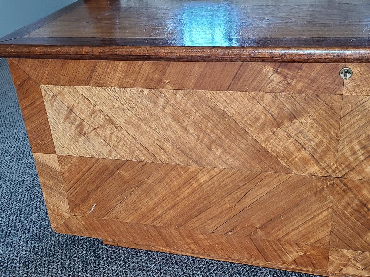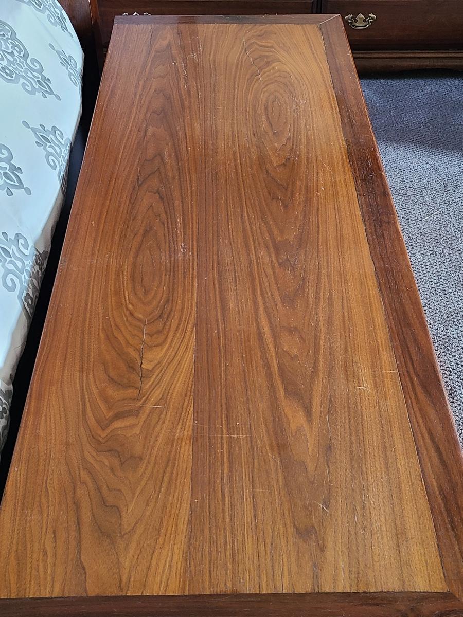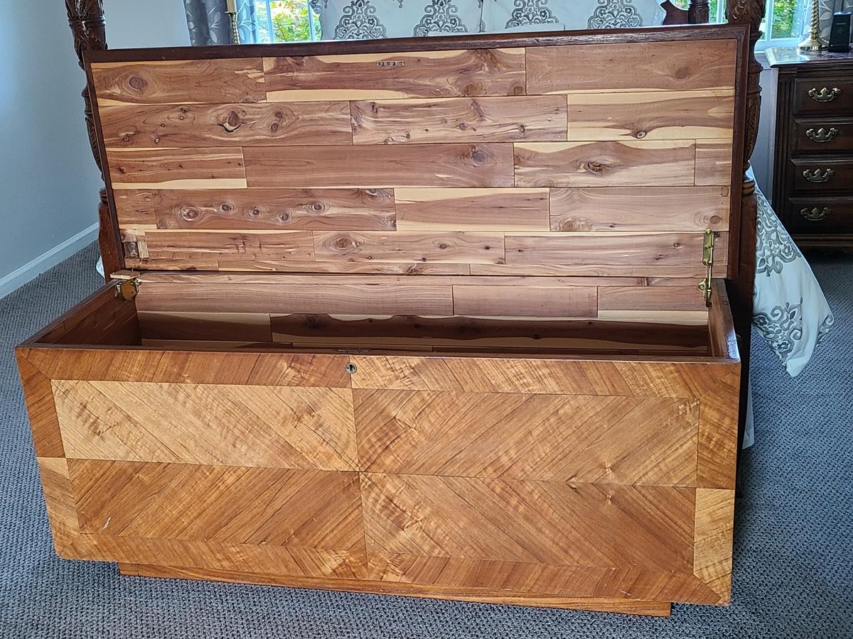 This is large and very sturdy, even enough to be full bench or coffee table! The color and wood grain is gorgeous and even though this is vintage or possibly antique it still looks new. It does need a hinge repaired. This is 58 inches long, 21 wide, and 24.5 inches high. Please bring help to move and this is located on the second floor and will need to be brought downstairs! Please see all pictures as they are the best representation of the items in the lot, the condition of the lot, and will show measurements if taken. If purchasing furniture you must be able to move yourself with your own help, and truck. .
