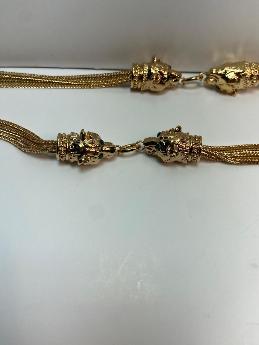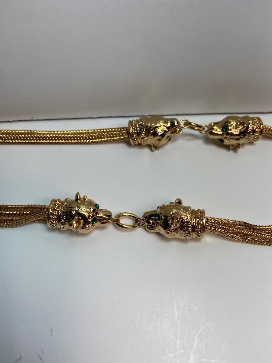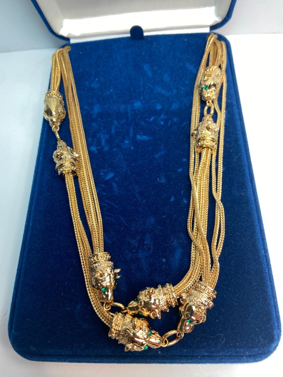 Stunning gold tone panther necklace reproduction of jewelry worn by Jacqueline Bouvier Kennedy with original box and certificate of authenticity.