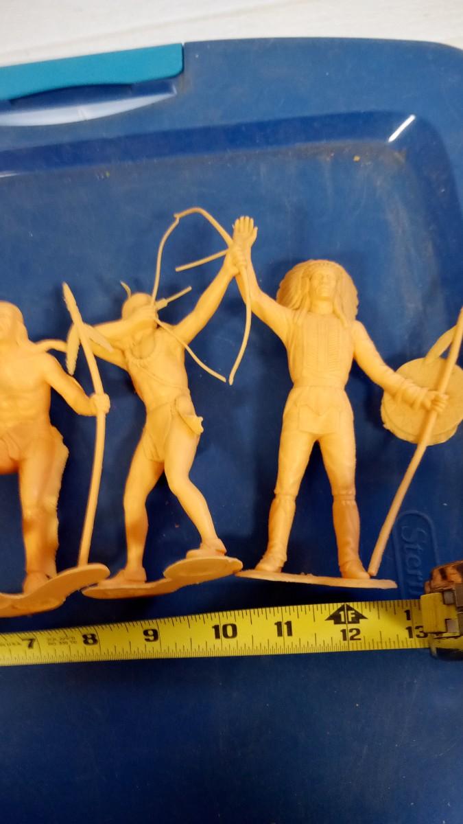 FIVE INDIANS MARKED MARX INDIAN WITH BOW HAS SOME BREAKS REST IN GOOD SHAPE