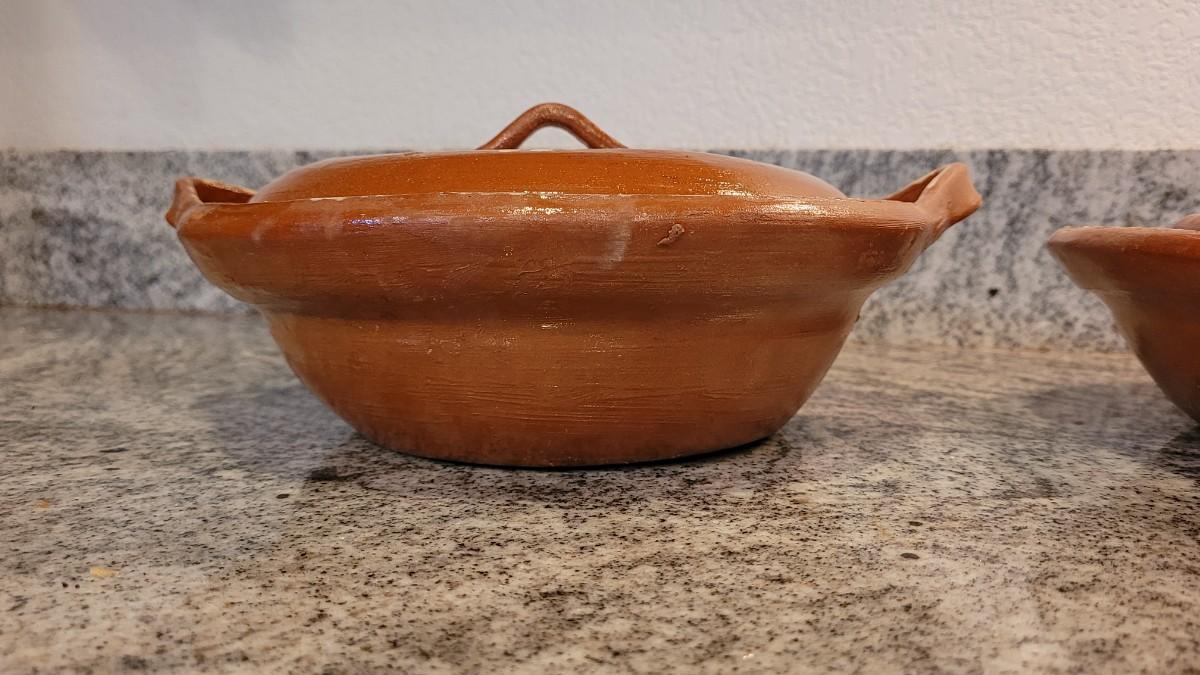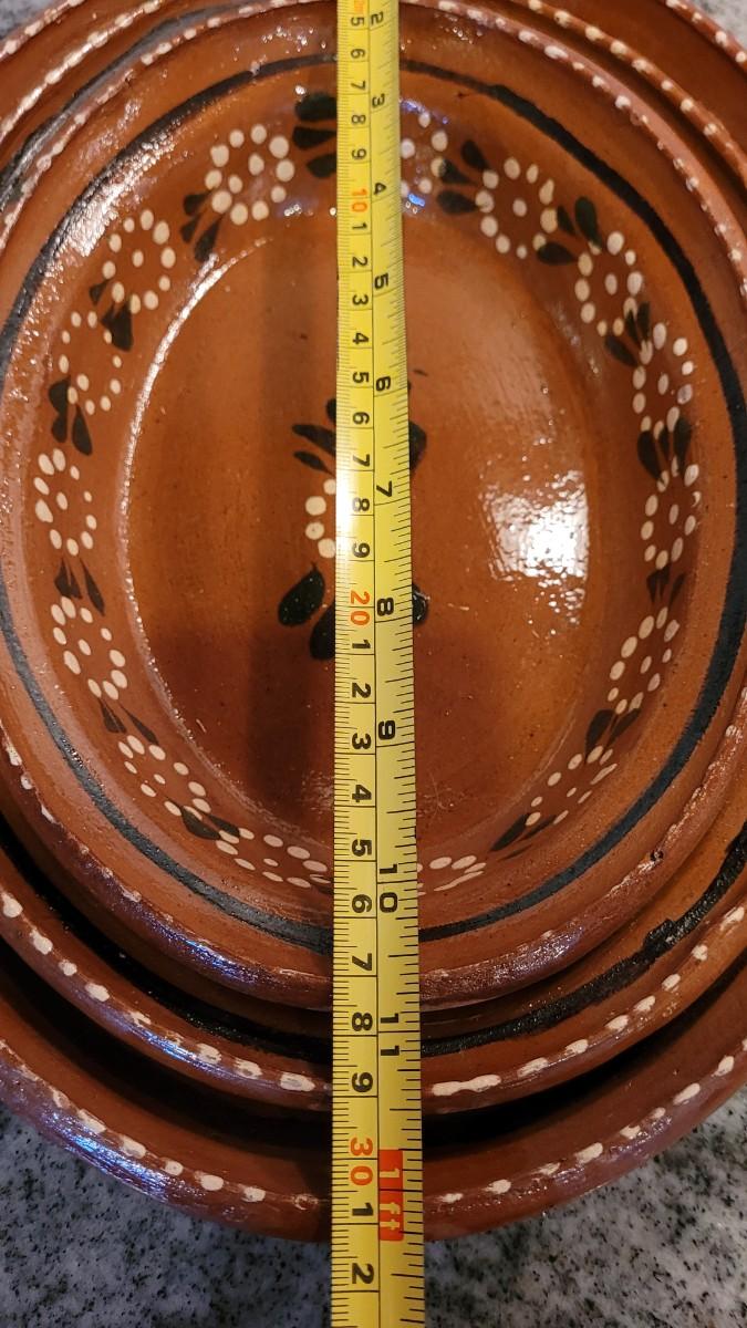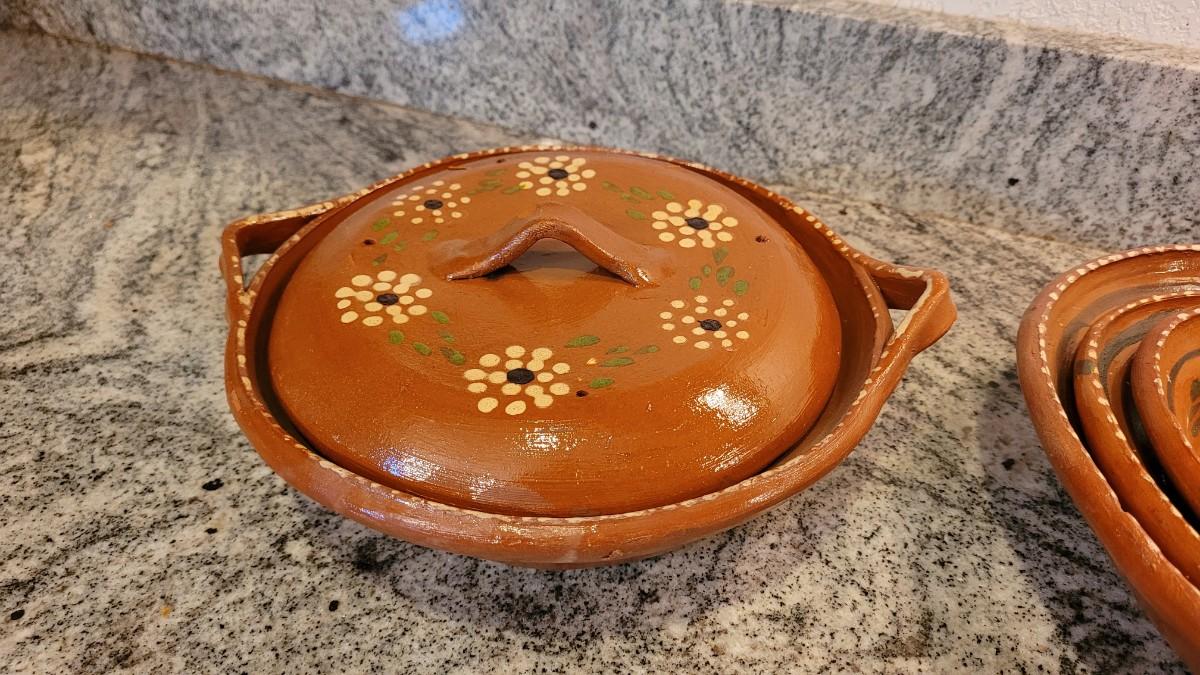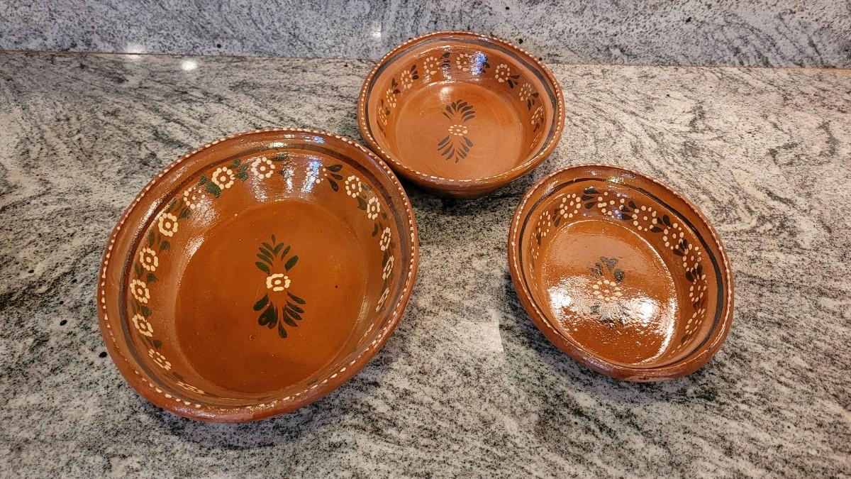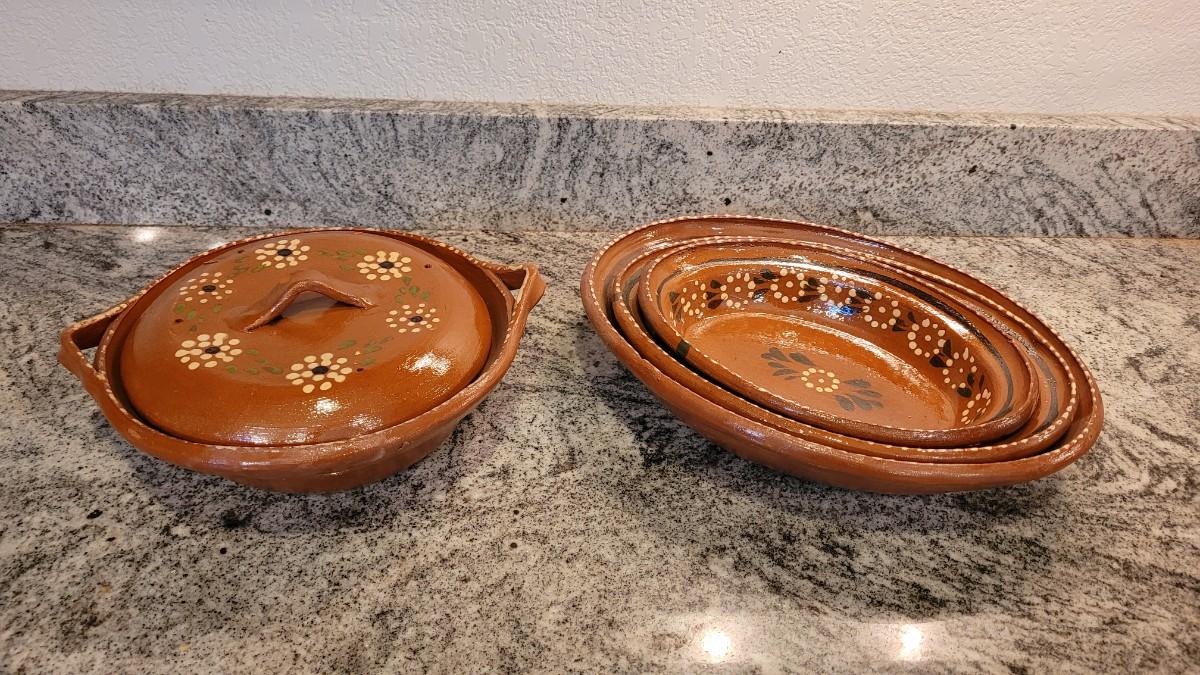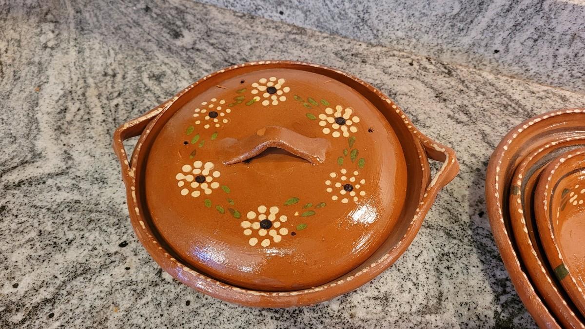 Lot 55: Vintage Mexican Folk Art Ceramic Nesting Casserole Dishes & Covered Dish