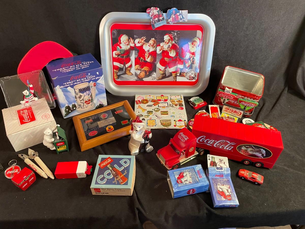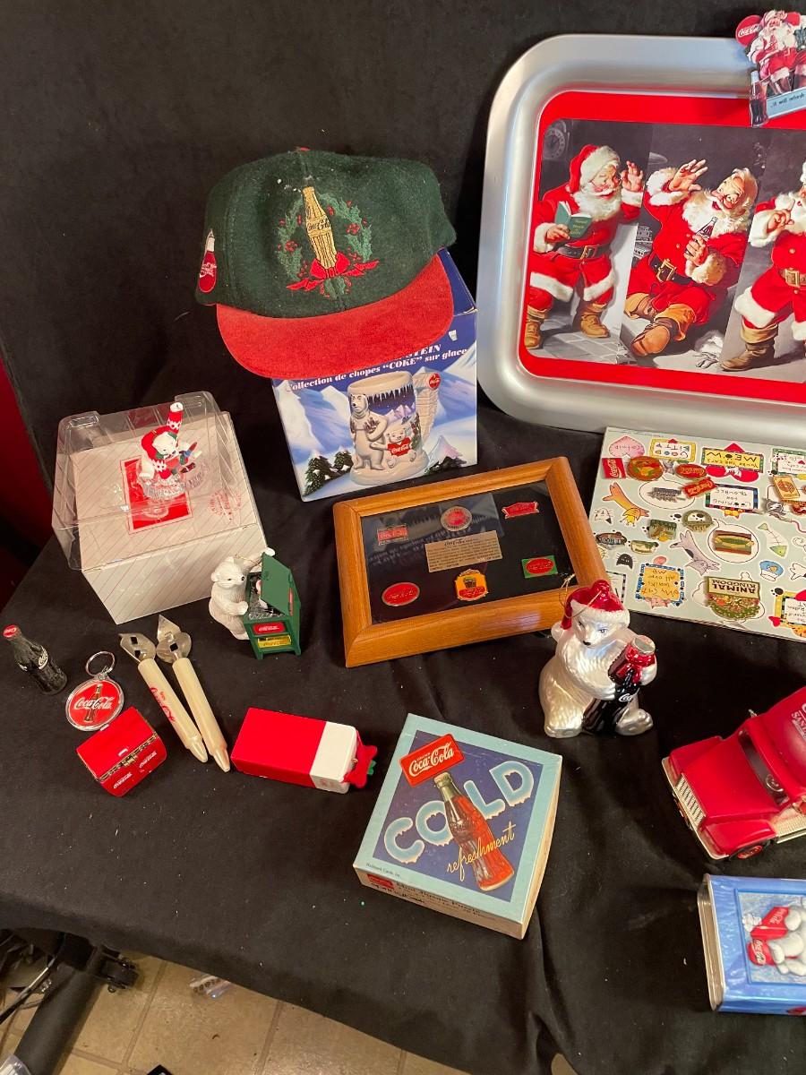 Large assortment of Coca-Cola Christmas Items.