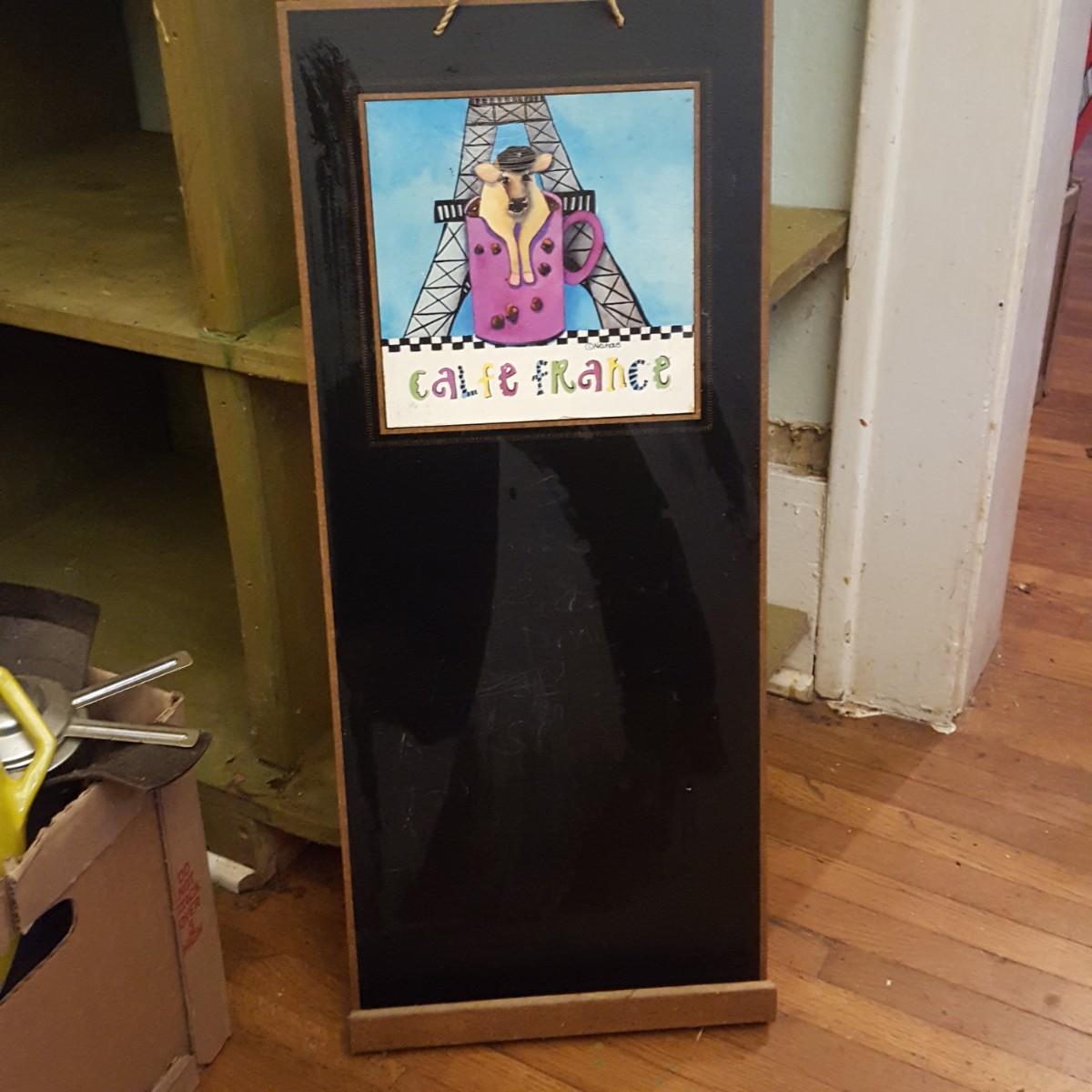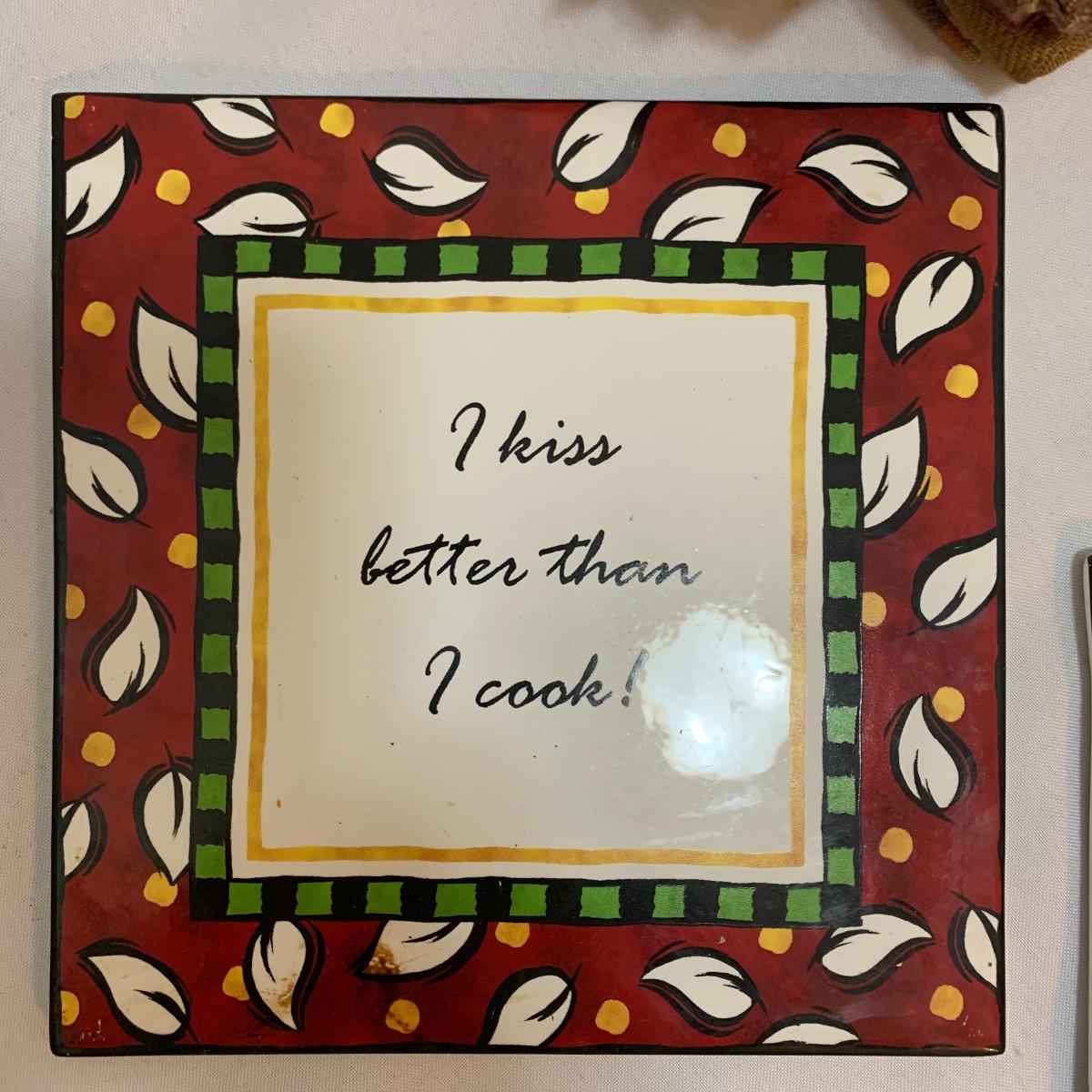 Lot 55 is all about the kitchen. This group features assorted table linen, cute tiles, cookbooks, and a French themed message board (10"X24"). It appears that the napkins are brand new! See pics for book titles and info. Local pickup only.
