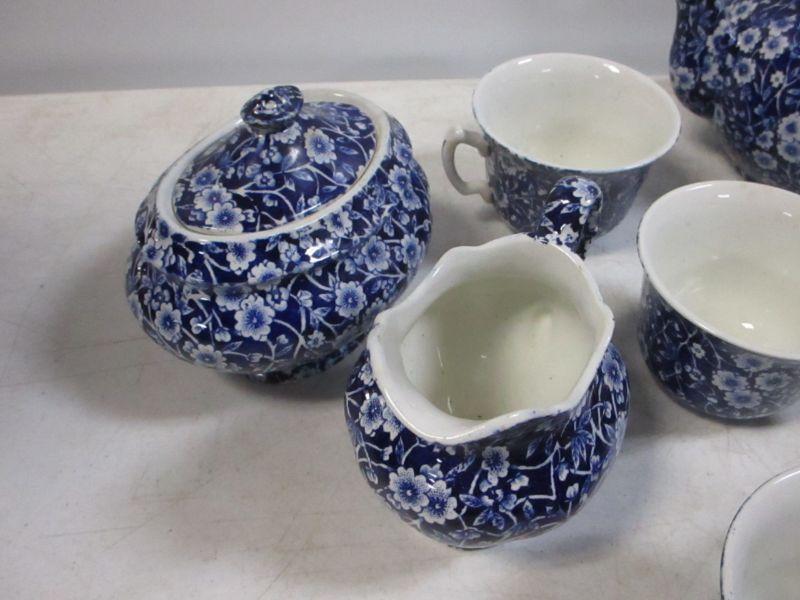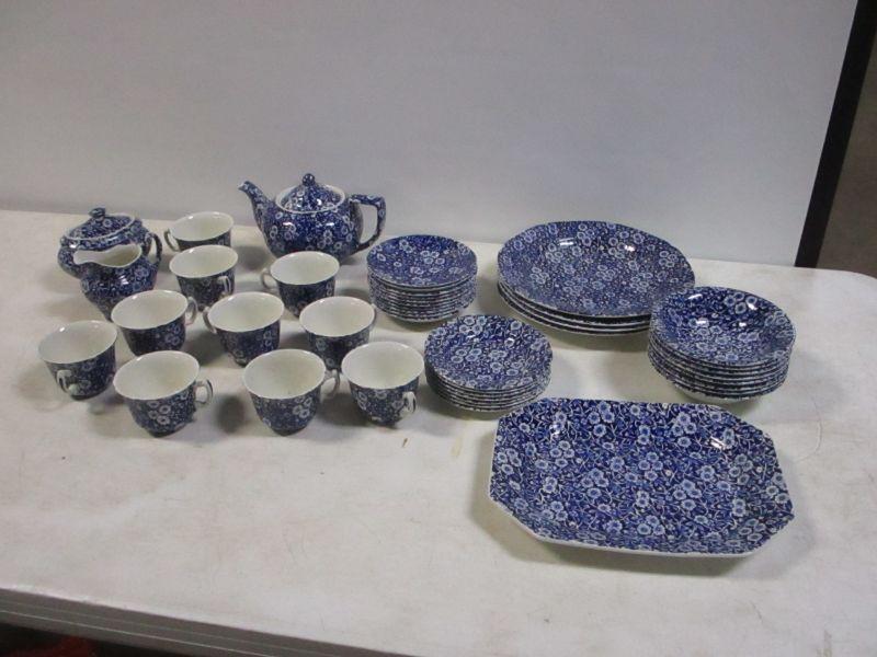 Lot 55 - Crownford  China England Blue "Calico" Pattern Dishware