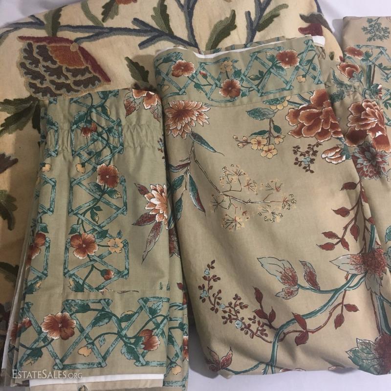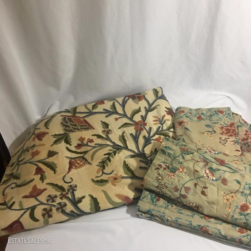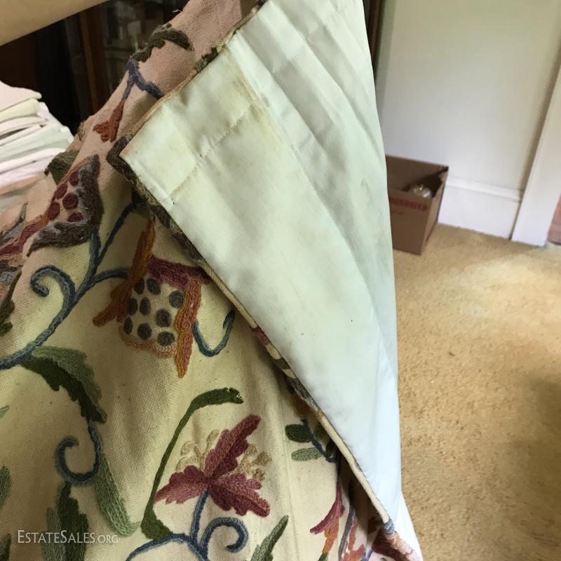 Curtains. Various sizes. Includes one large panel of lined fabric.