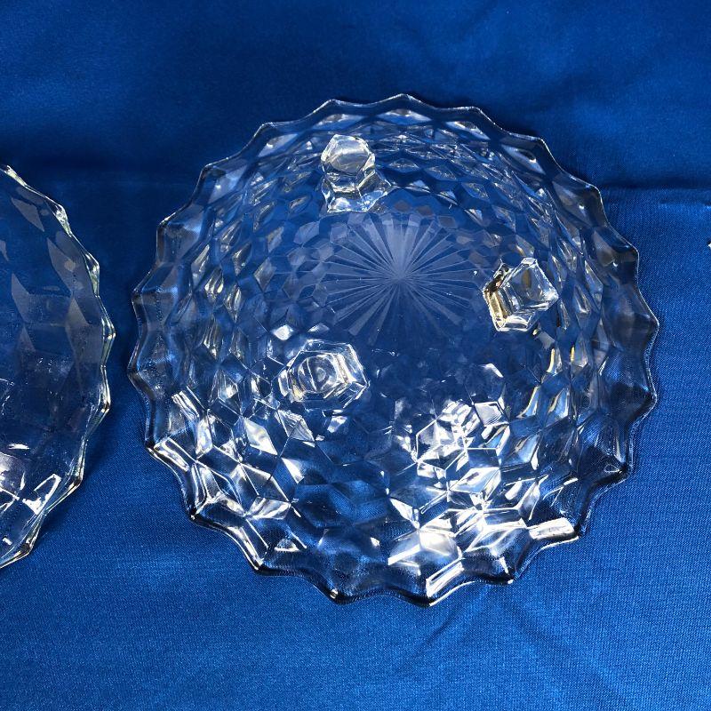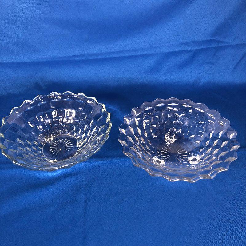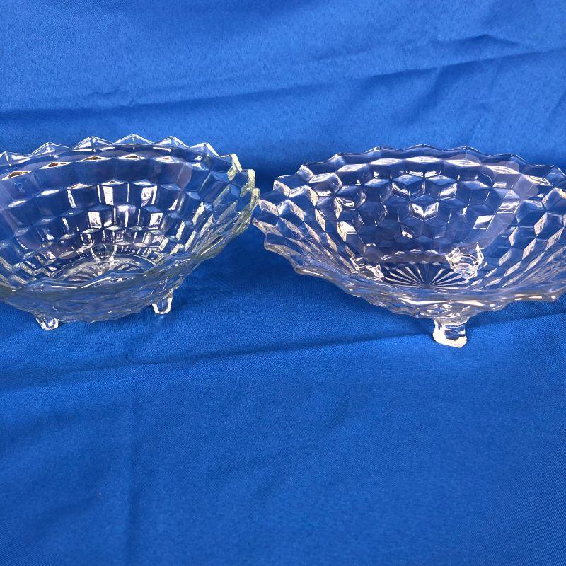 Fostoria American Pattern Hand Blown Glass serving bowls ~ set of 2 ~ both footed.One 10" diameter the other 10.5" diameter.