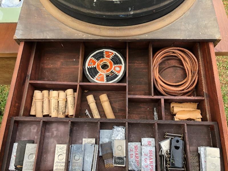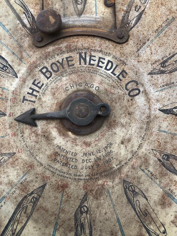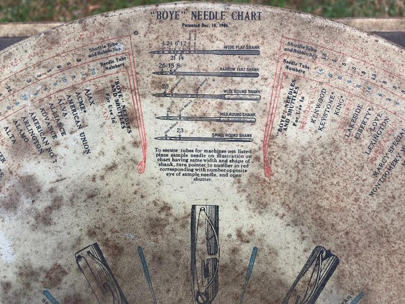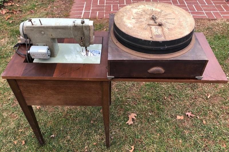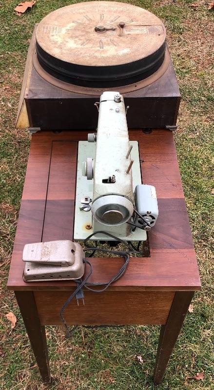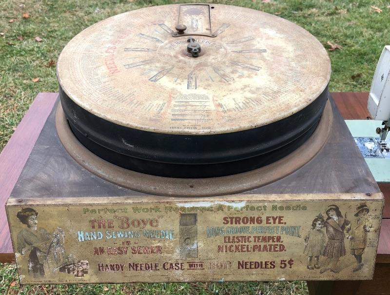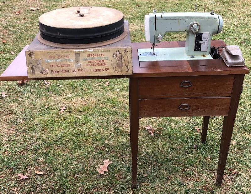 Lot 55 G: Antique Boyle Needle Co. Case & Sears Sewing Machine Table