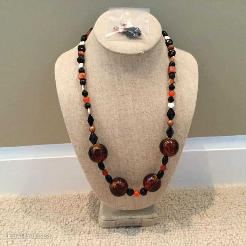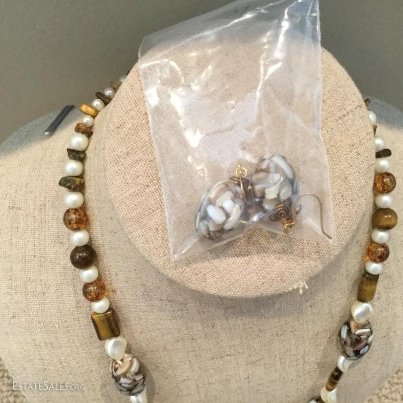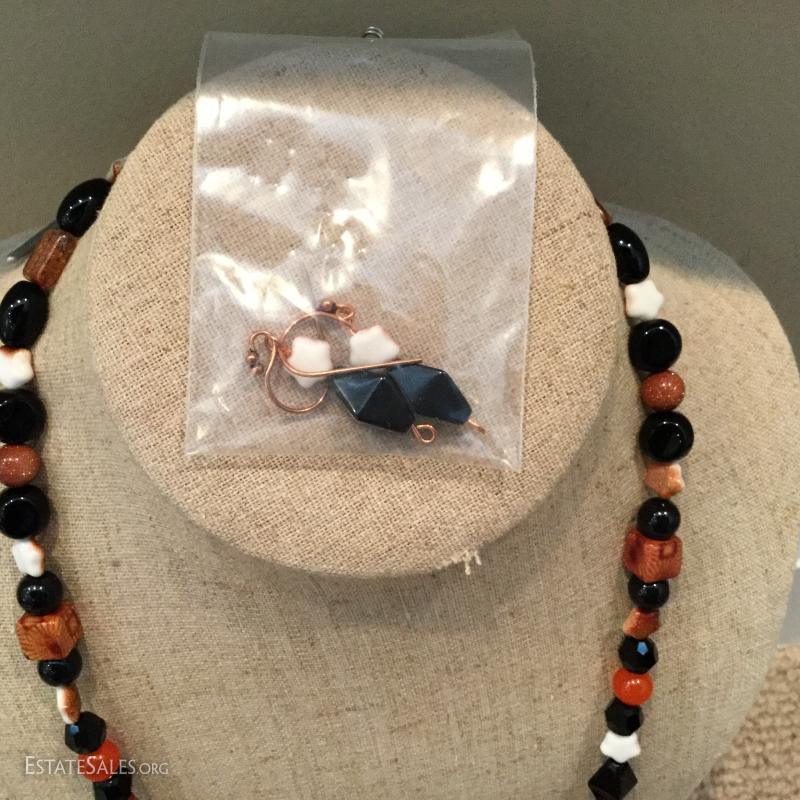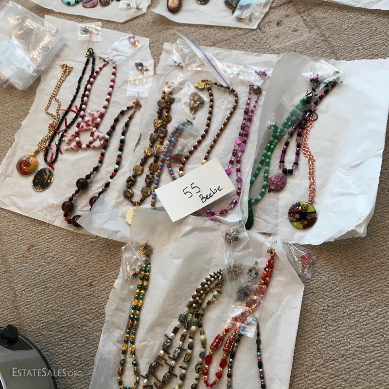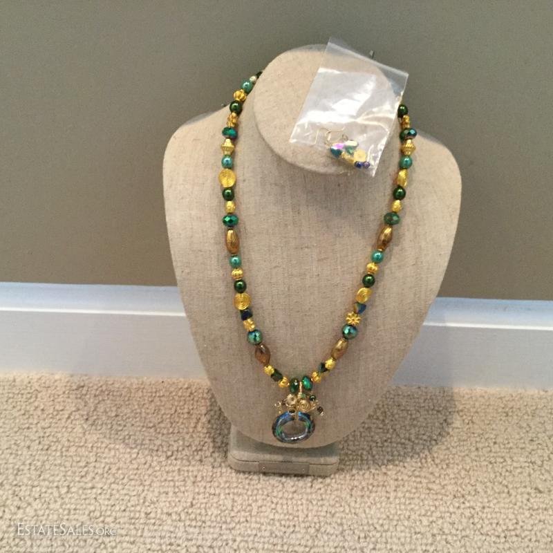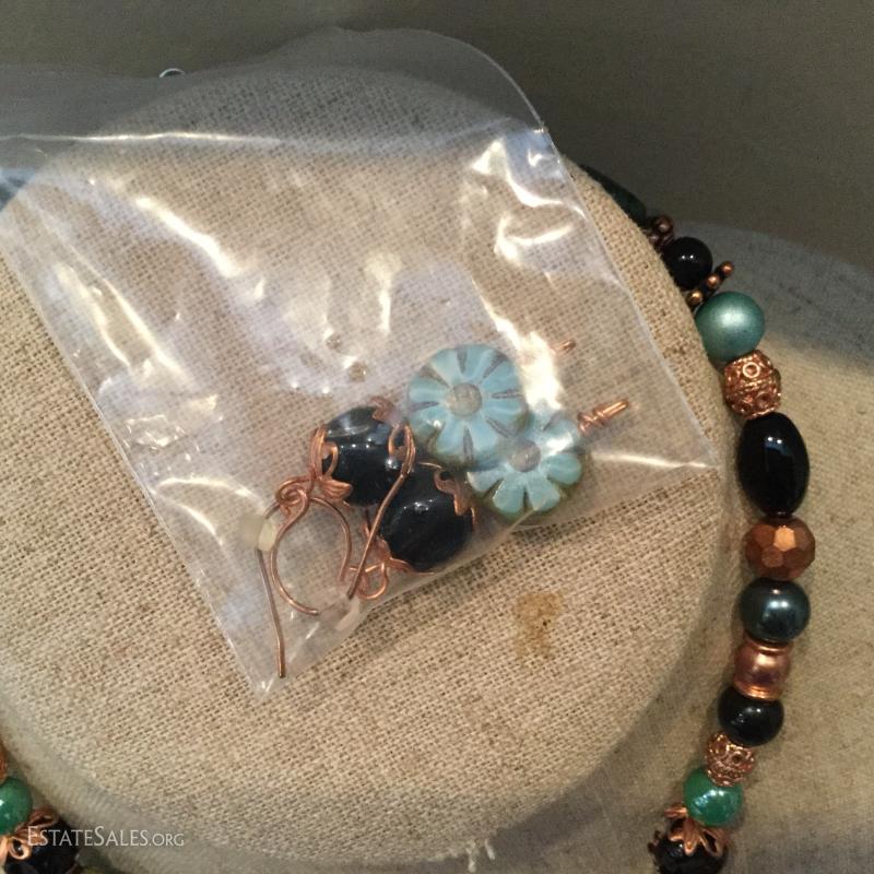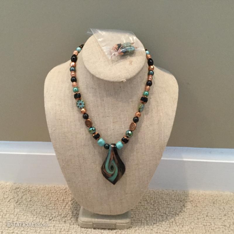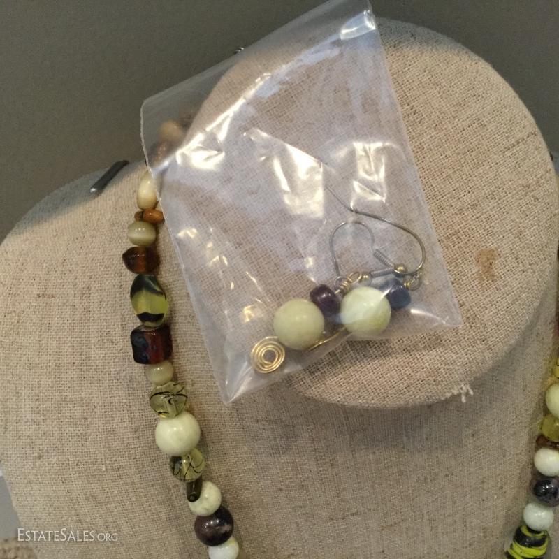 Talented local North Carolina artisan created these beauties in her jewelry workshop. Most necklaces have matching earrings. Nice quality one-of-a-kind pieces. Use as is or use beads to create a jewelry of your own.