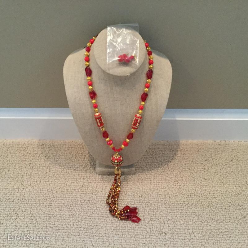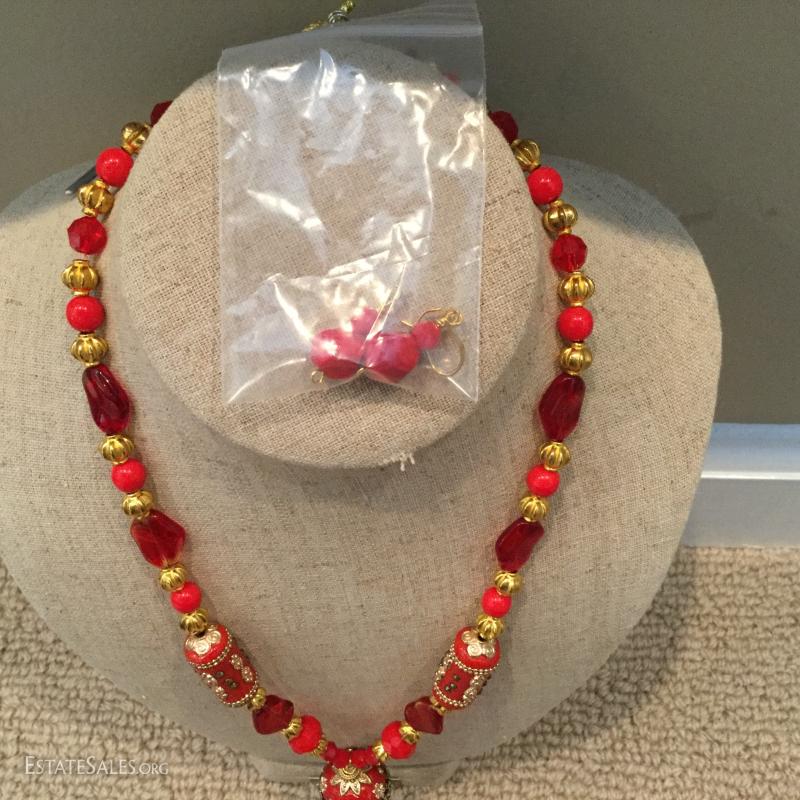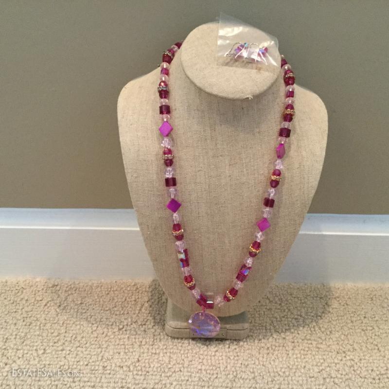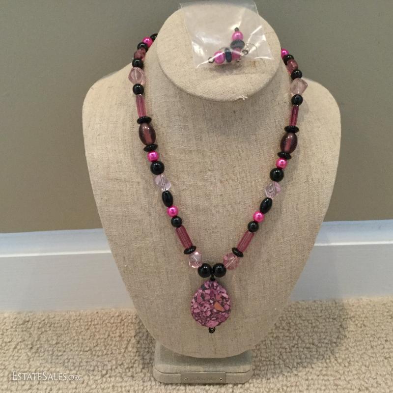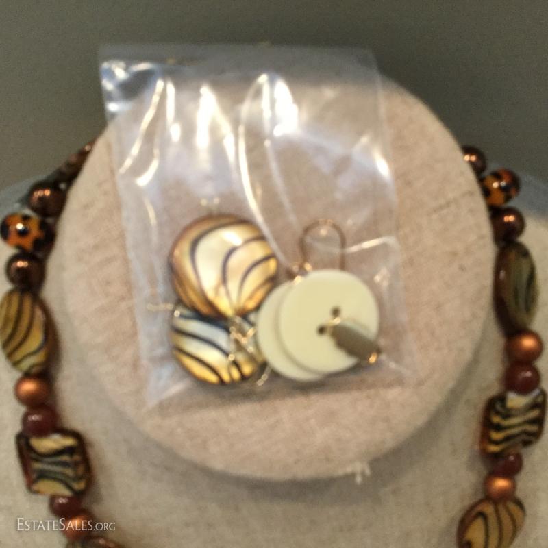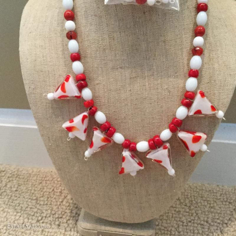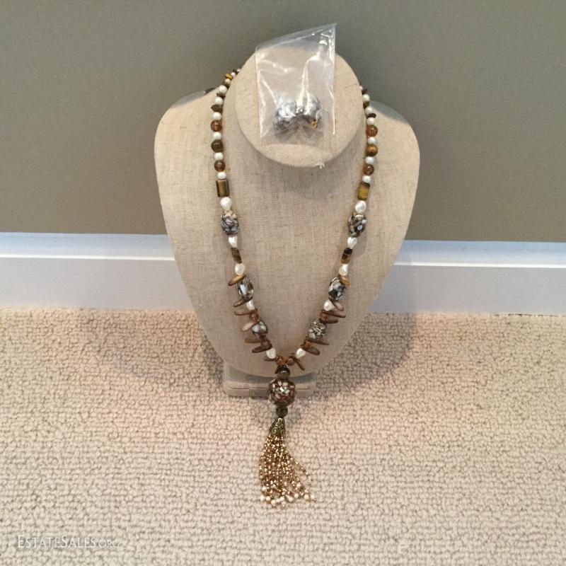 Talented local North Carolina artisan created these beauties in her jewelry workshop. Most necklaces have matching earrings. Nice quality one-of-a-kind pieces. Use as is or use beads to create a jewelry of your own.
