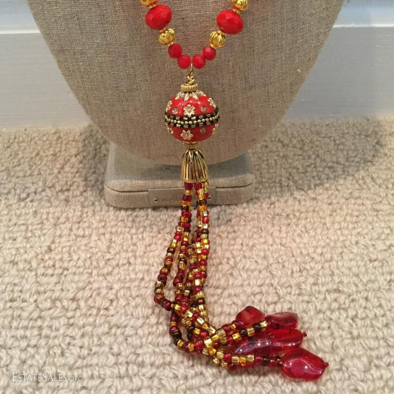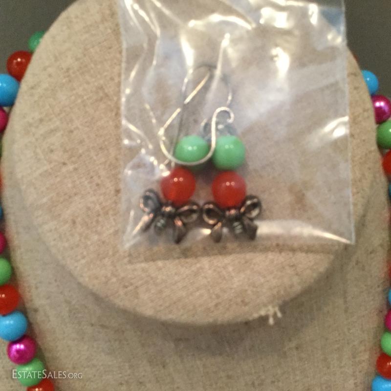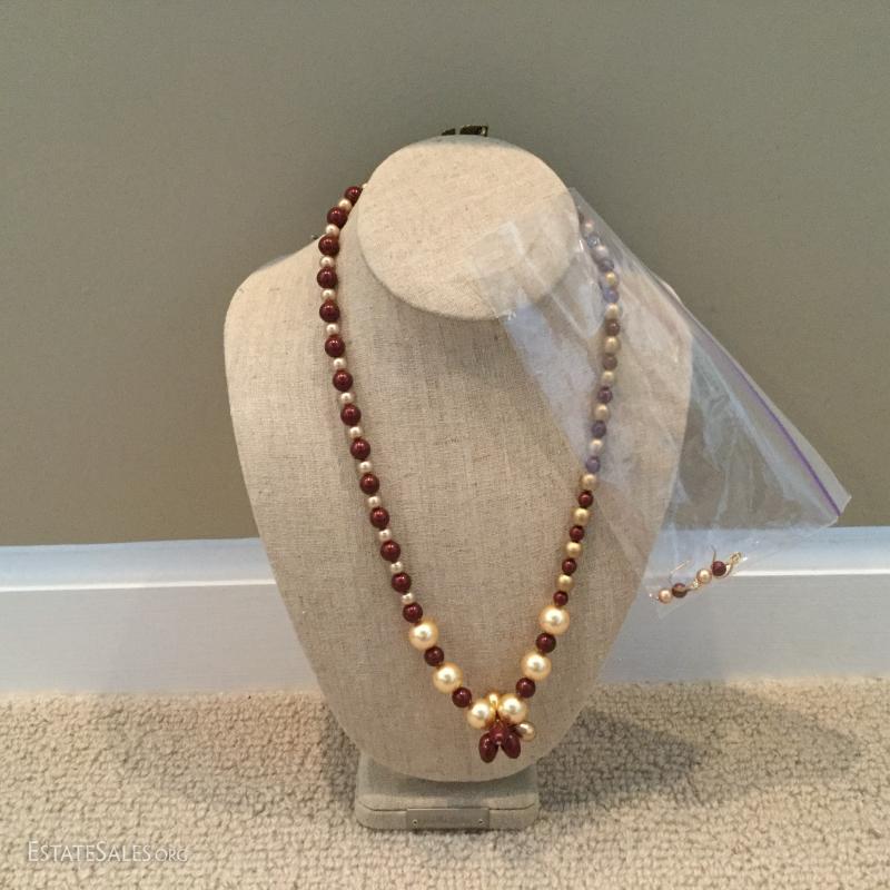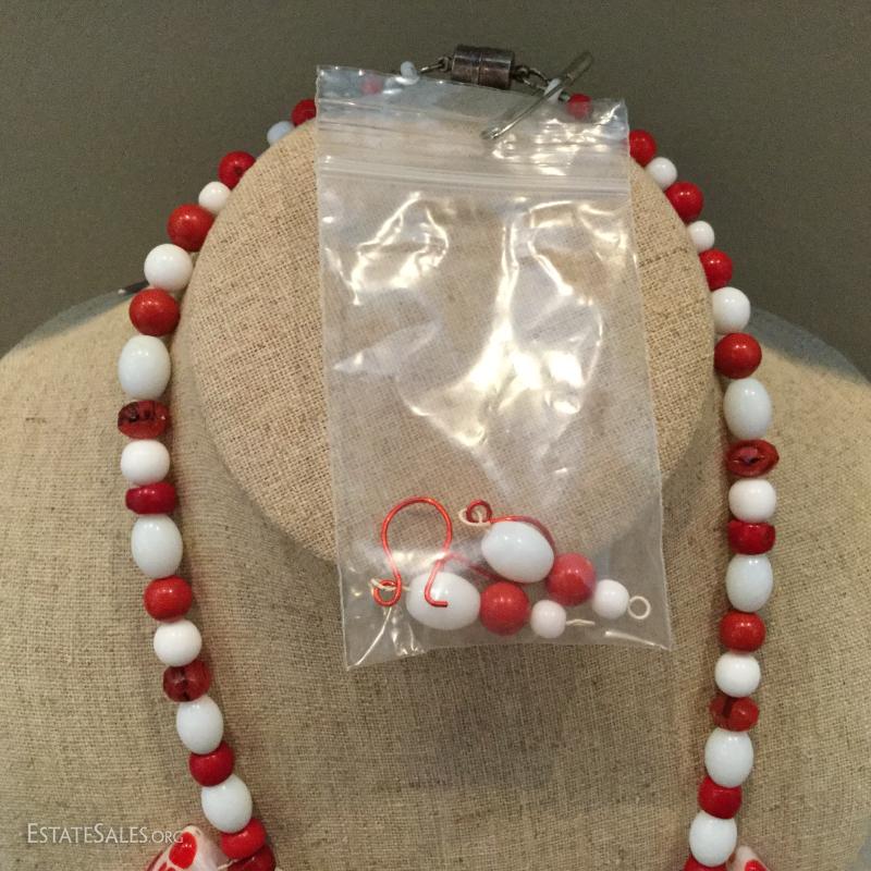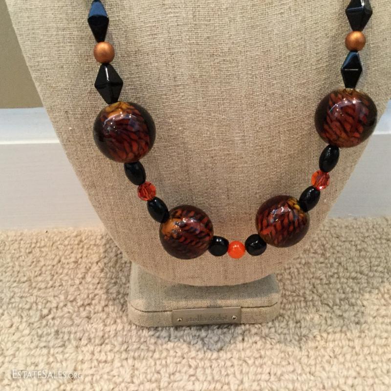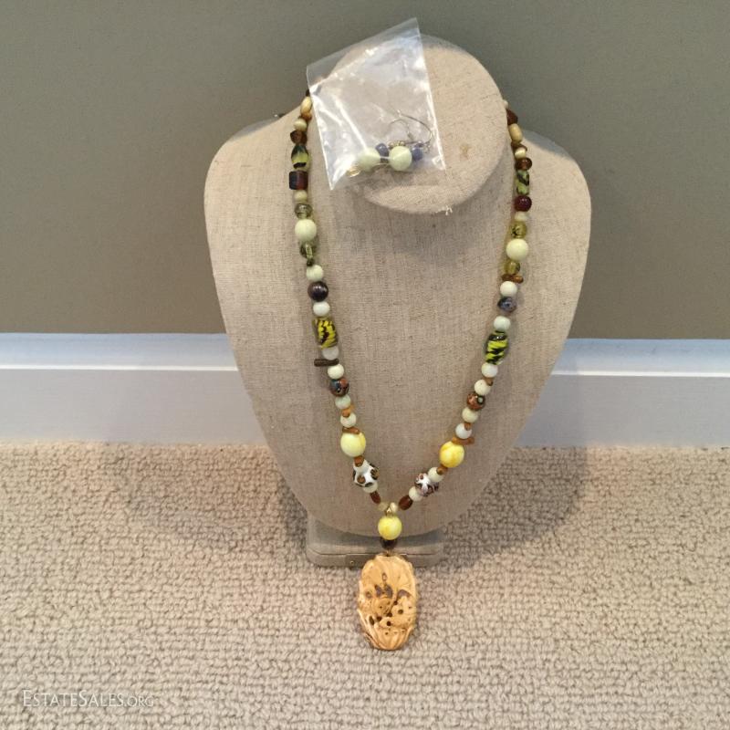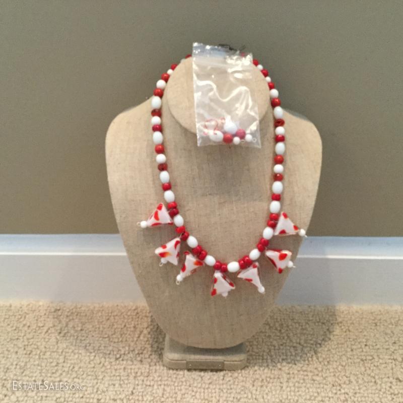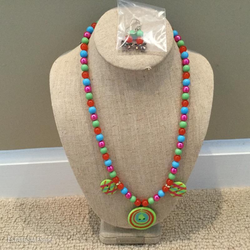Talented local North Carolina artisan created these beauties in her jewelry workshop. Most necklaces have matching earrings. Nice quality one-of-a-kind pieces. Use as is or use beads to create a jewelry of your own.