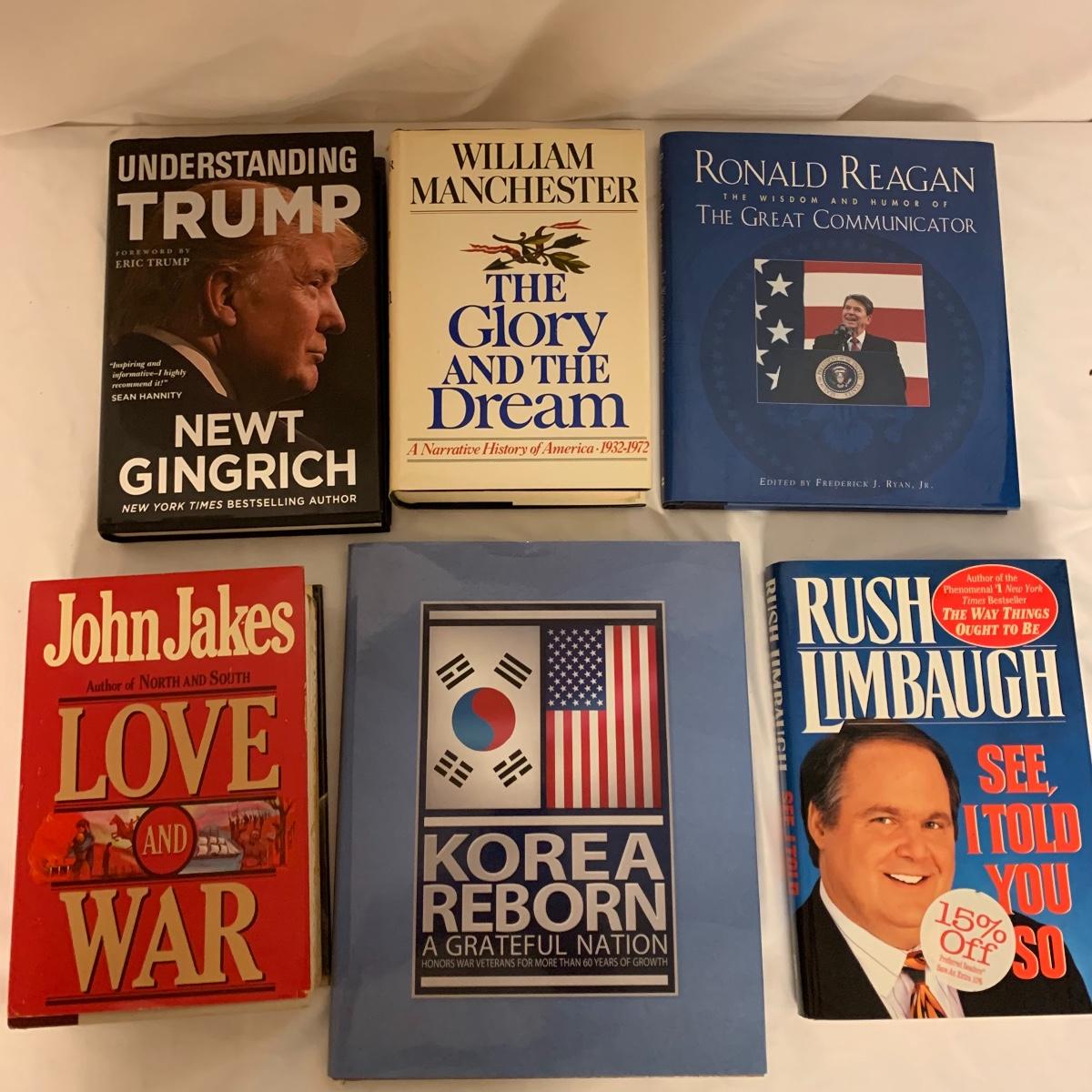 History buffs will love this assorted lot full of biography’s and political books. Included are several vintage books such as Harpo Speaks, Love & War, & America Indians. Also featured are several contemporary hard backs including See I Told You by Rush Limbaugh, Speaking My Mind by Ronald Reagan, and Do The Right Thing, by Mike Huckabee. Most conditions are fine, some hardback covers are a little worn, but bindings seem in fine shape. See images. Local pick up only.