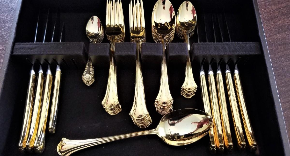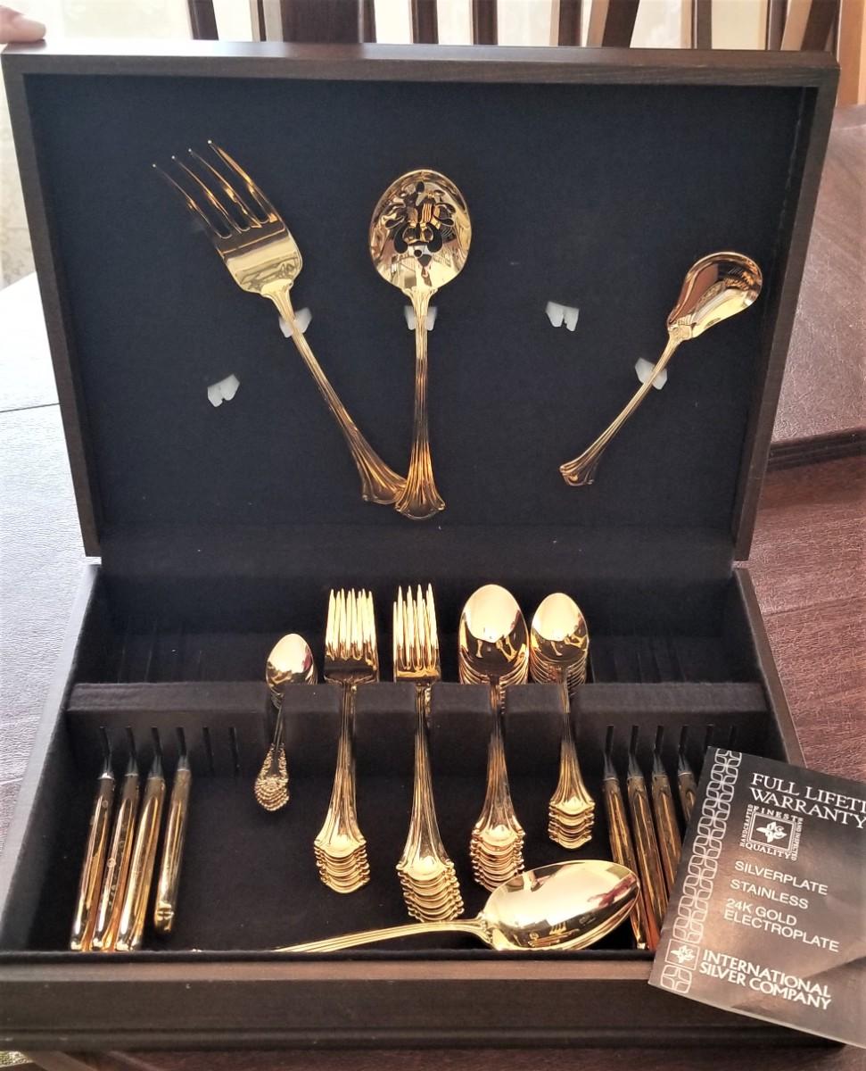 Lot #55 International Silver Co Gold Electroplated Flatware Set in Box - MidCentury