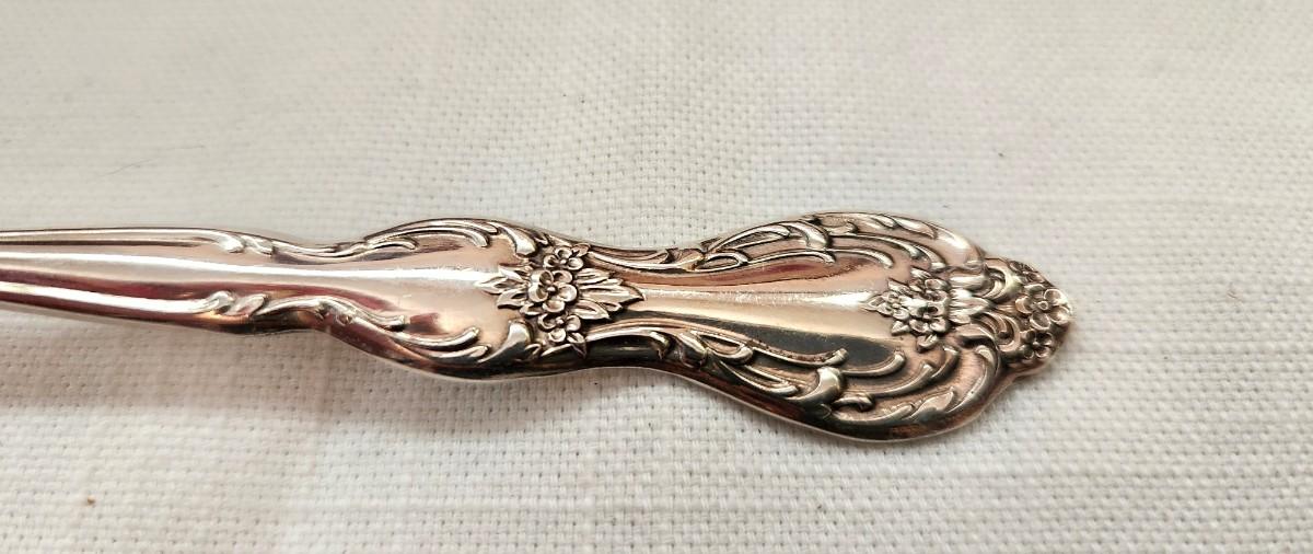 Large Set of William Rogers Silverplate flatware in box. You get everything you see here: 12 knives, 12 dinner forks, 11 salad forks, 9 seafood forks, 12 tablespoons, 24 teaspoons, 12 Iced tea spoons, 1 serving spoon, 1 meat fork, 1 sugar spoon, 1 ladle, 2 demitasse spoons. Good gently used condition. We were not able to identify the pattern, but a regular customer told me she thought the pattern was "Beverly Manor."