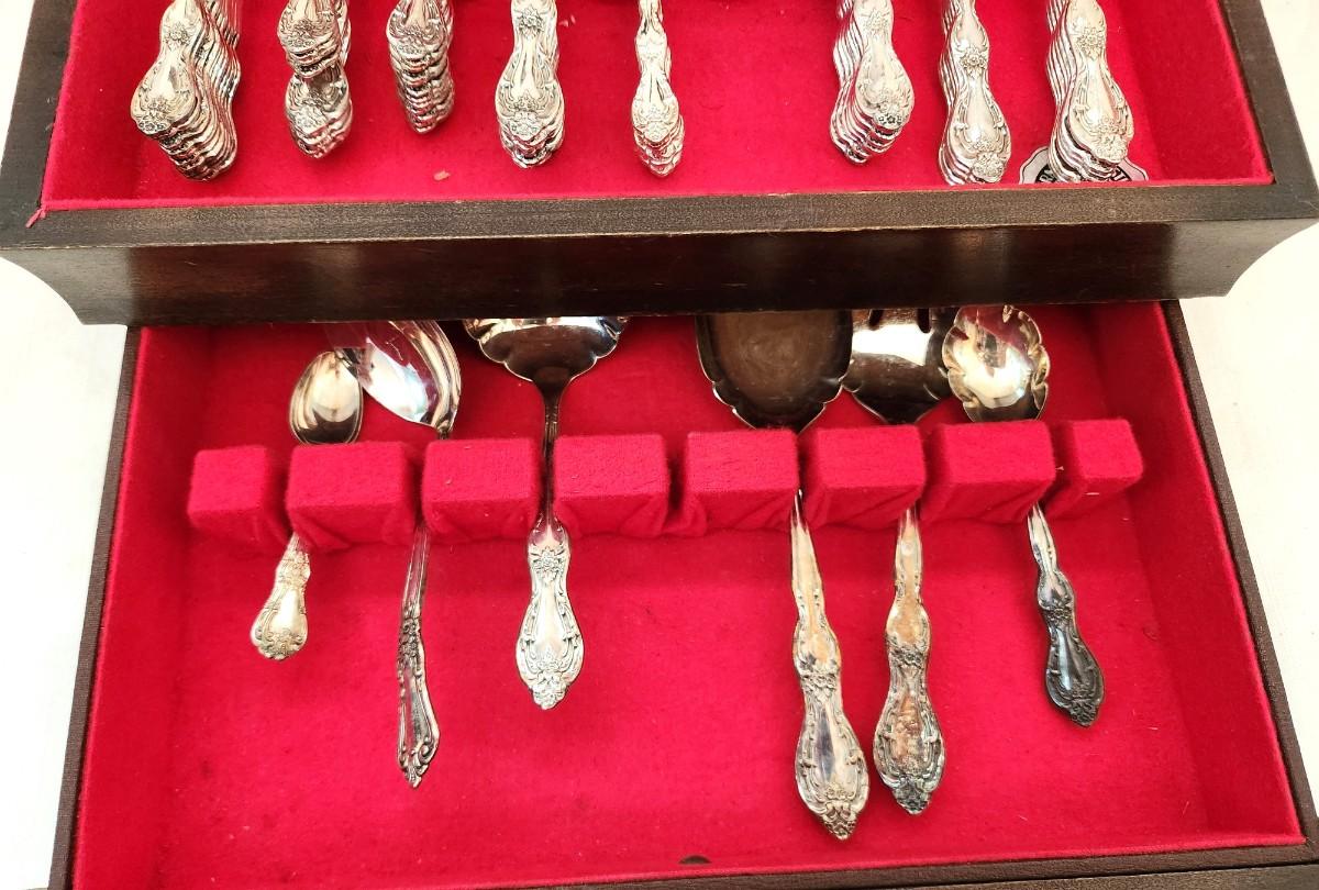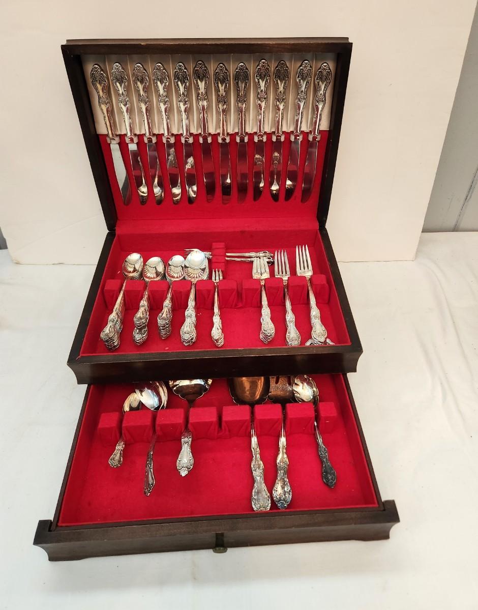 Lot #55  Large Set of Silverplate Flatware in Case - possibly "Beverly Manor" pattern