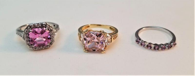 Lot # 55   Lot of Three Sterling Silver Fashion Rings - Lavender/Pink hues