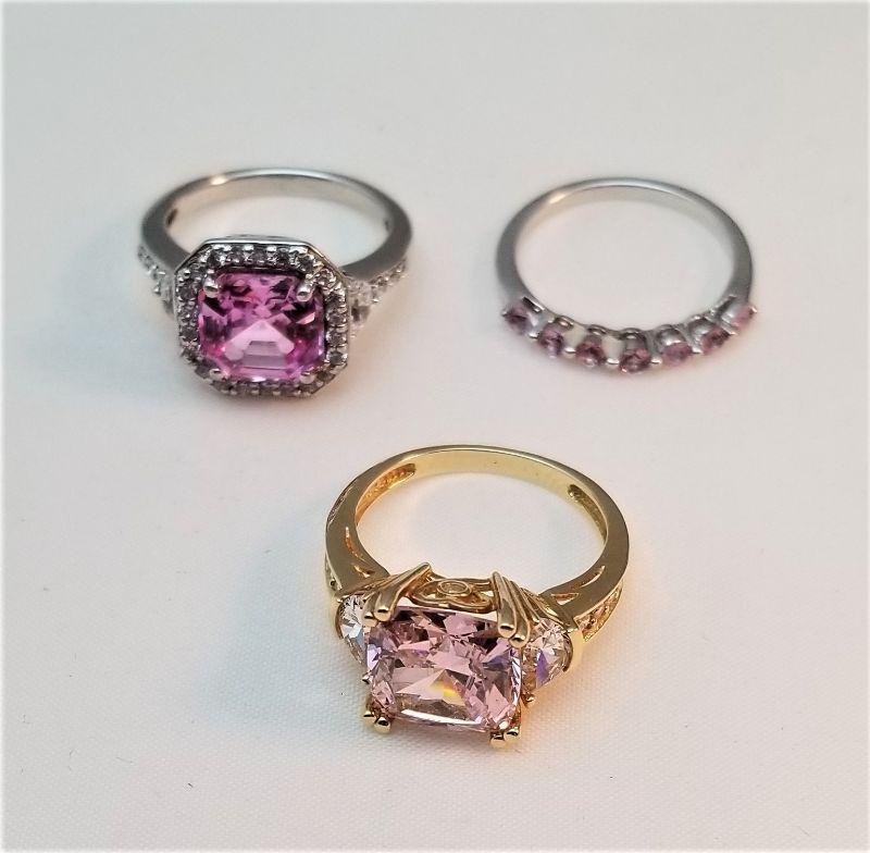 Lot # 55 Lot of Three Sterling Silver Fashion Rings - Lavender/Pink hues