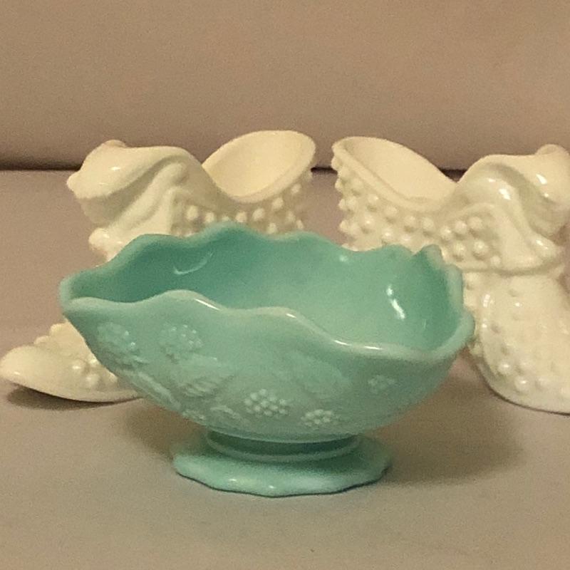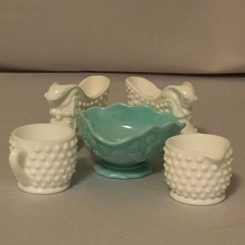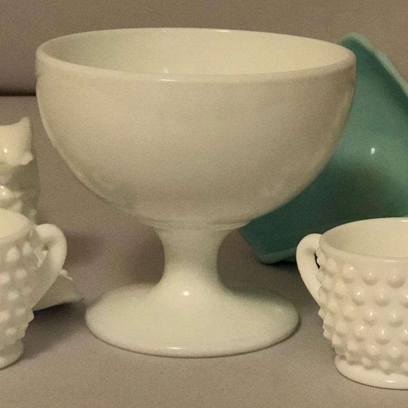 A bonanza here with this set that includes a milk glass decorative candy dish,
