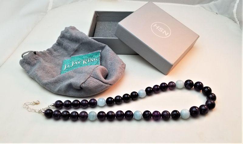 Home Shopping purchase - Mine Finds necklace by Jay King - Natural Amethysts and a pale stone of some type - sterling clasp - adjustable length to 18". New in box.