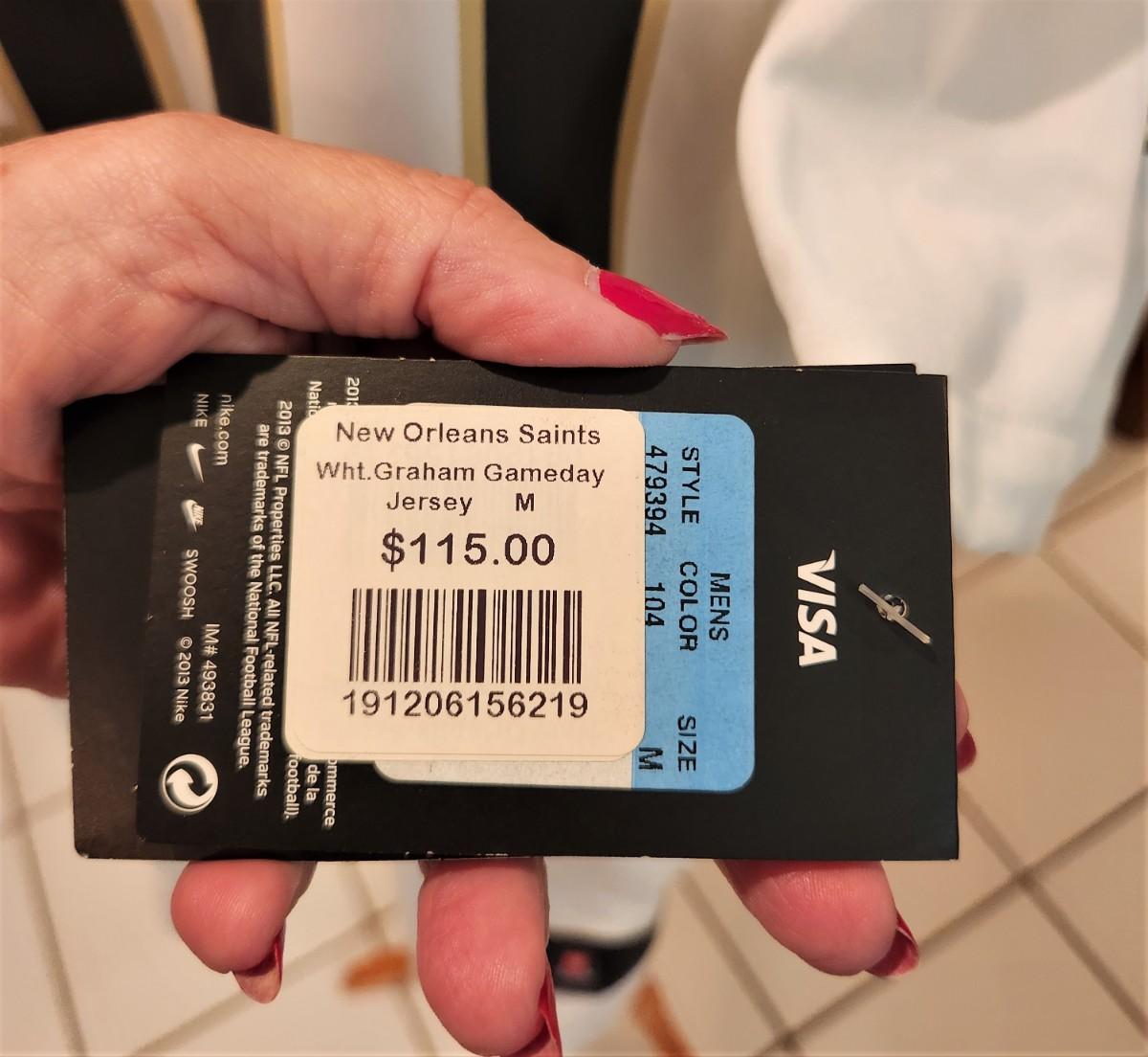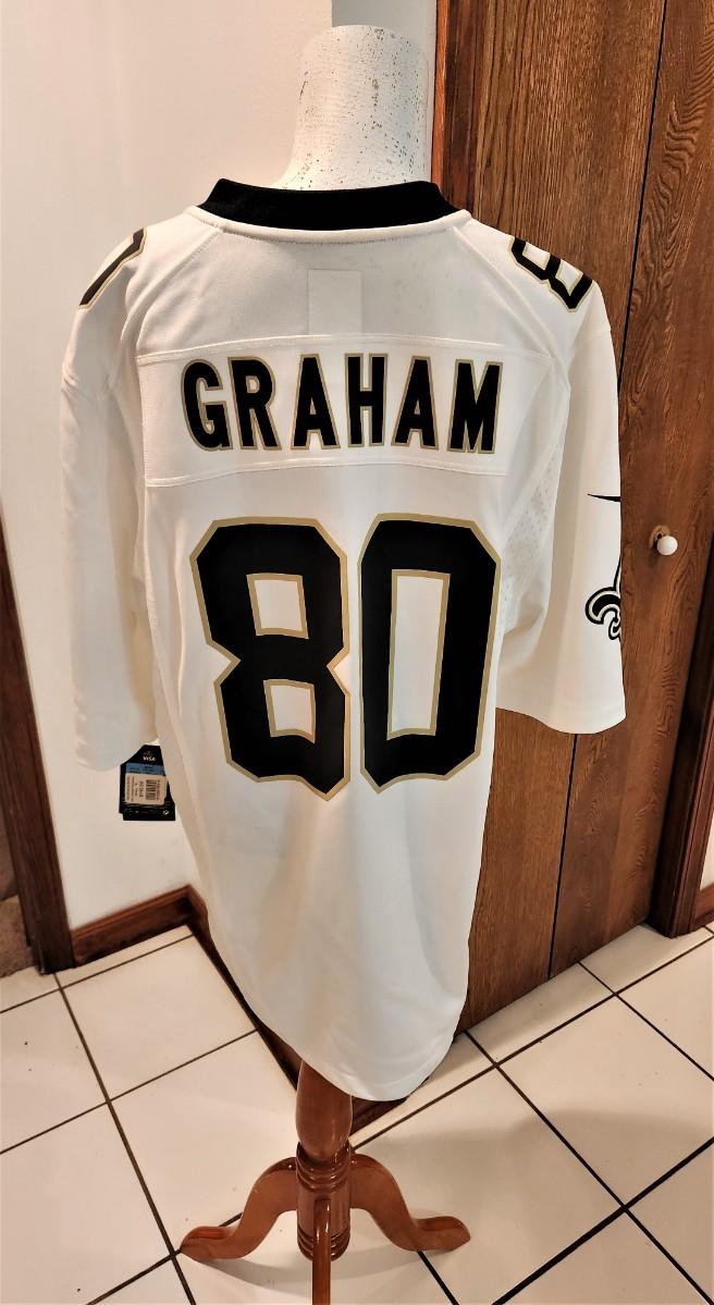 New with tags still attached, NFL licensed Saints Game Day Jersey - Graham - Style 479394, size medium. Retail price $115.00.