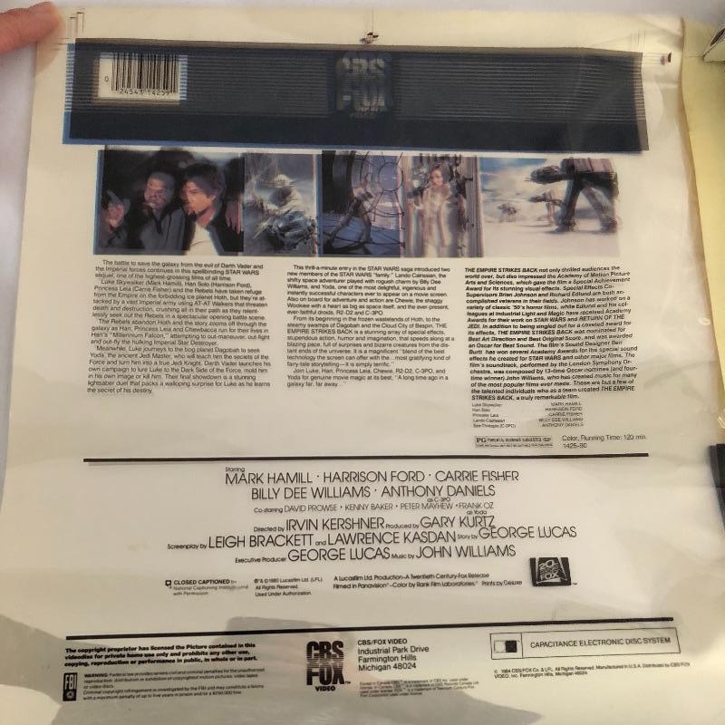 This original printing for laser discs is from the Star Wars sequel “˜The Empire Strikes Back’. Item appears to be in excellent condition, see images.
