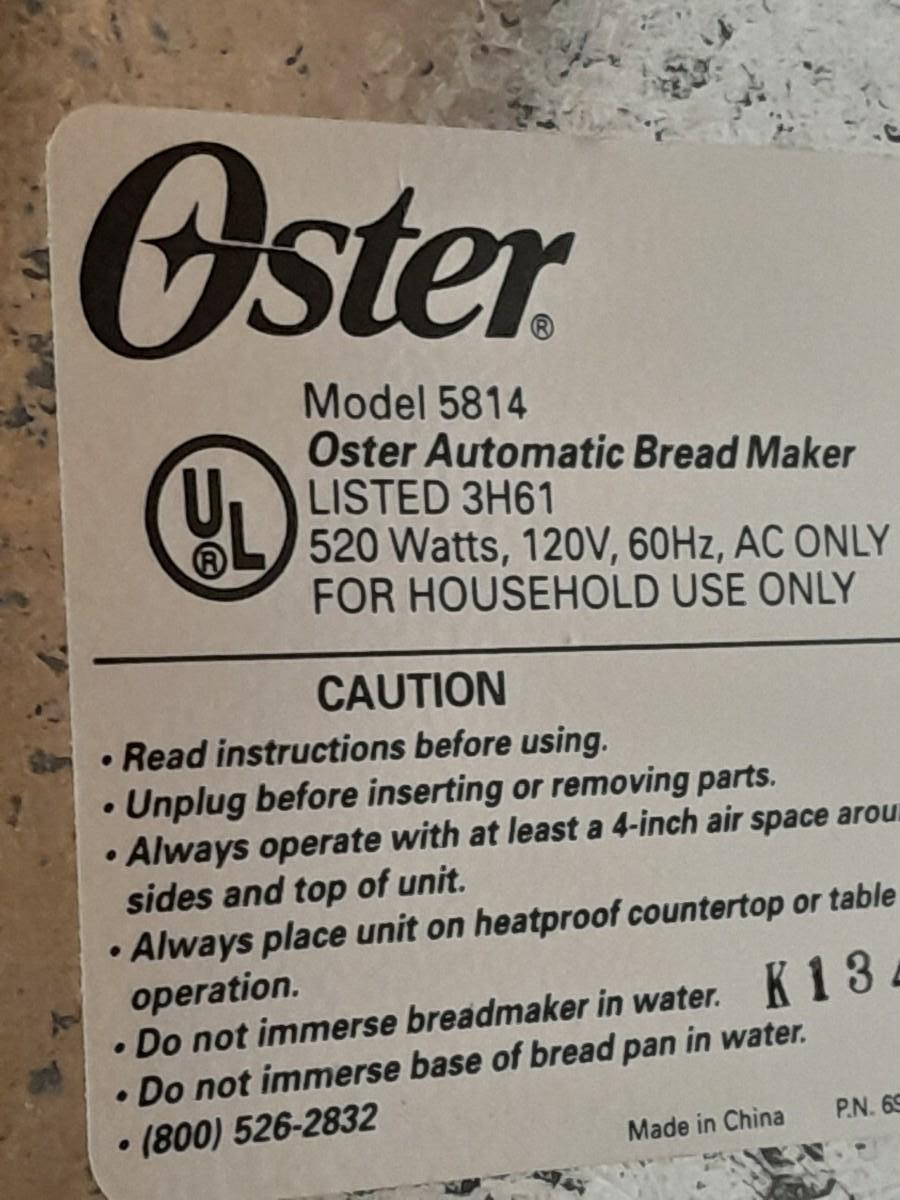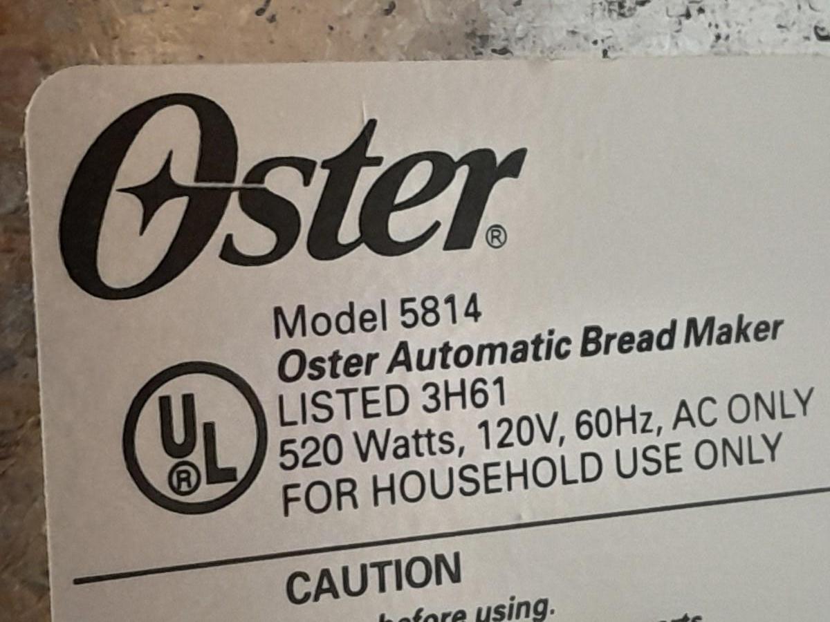 OSTER AUTOMATIC BREAD MAKER MODEL 5814