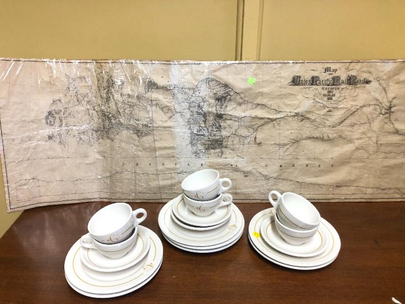 Grand central China made by Syracuse China - USA and map of the Union Pacific rail road survey 1864, 65, 66, 67, 1868: Vintage used condition