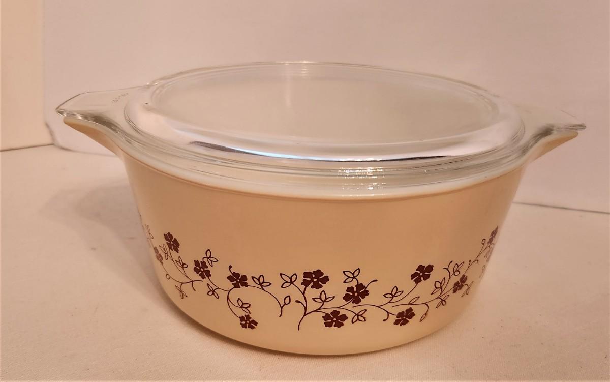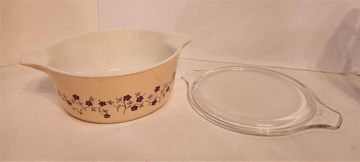 Lot #55 Scarce Promotional Pyrex 2.5 Quart Casserole with lid "Trailing Flowers"