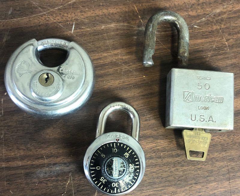 Lot #55 Set of locks; 1 with key, lock com and no key