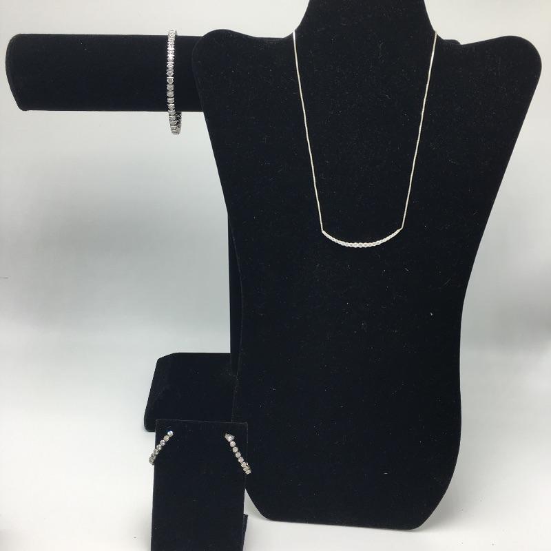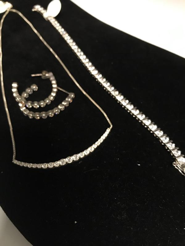 All items in this lot include Silpada sterling silver with Cubic Zirconia. You'll find earrings, a bracelet and a necklace called the Alive Necklace.