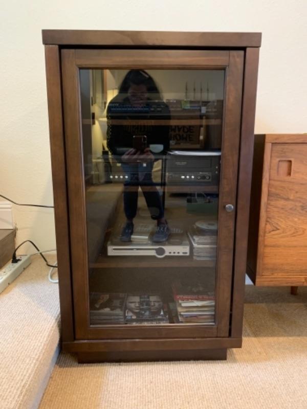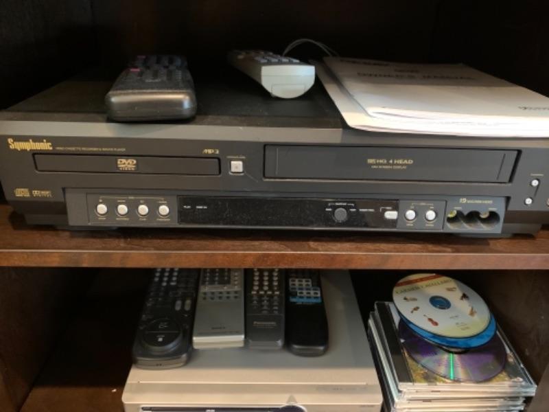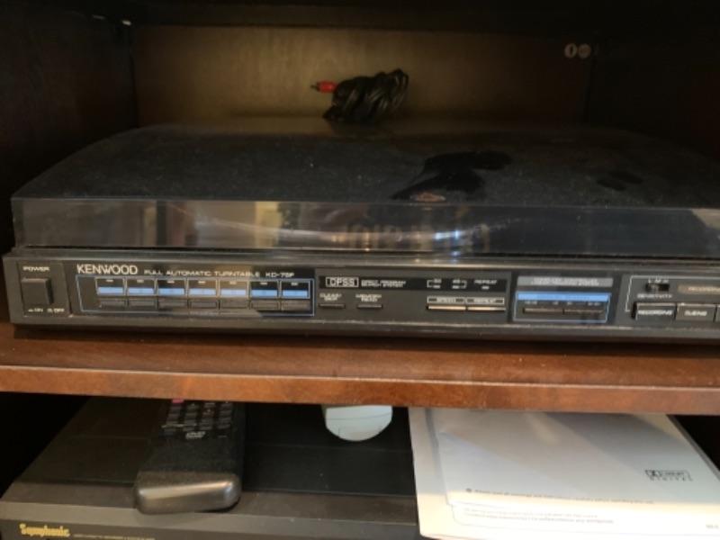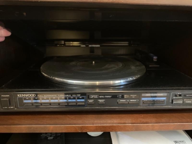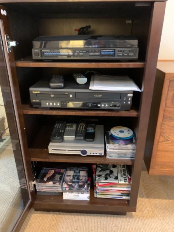 Lot 55. Stereo cabinet with Kenwood record player, DVD/VHS player by Symphonic--$95