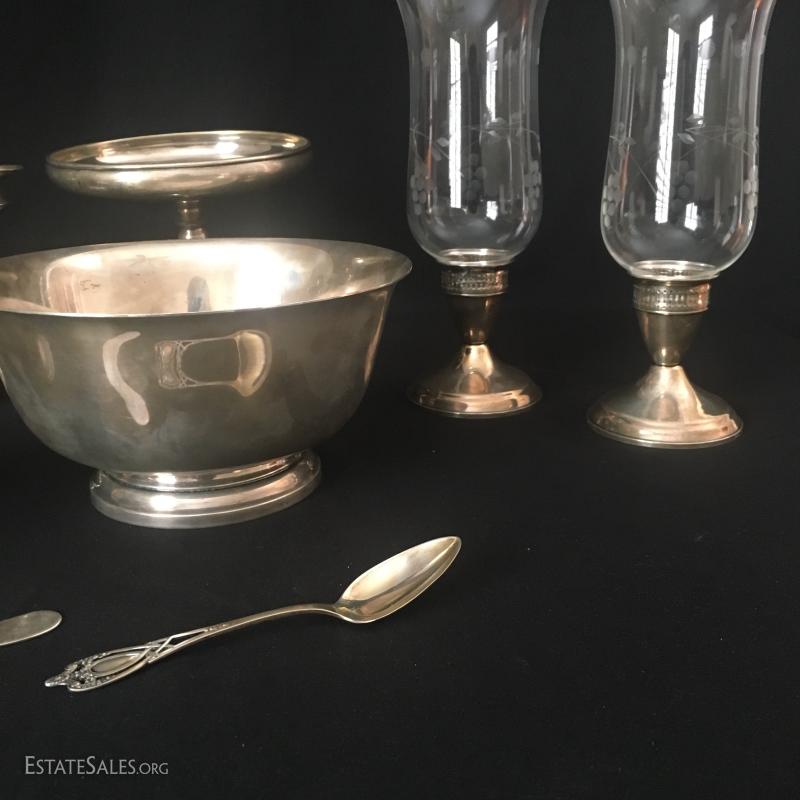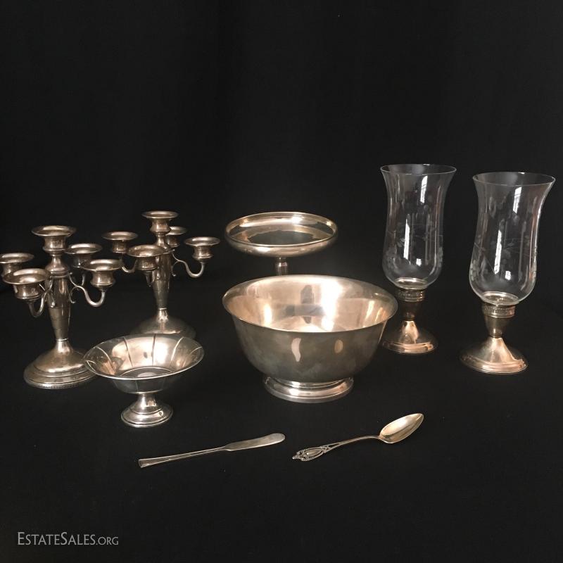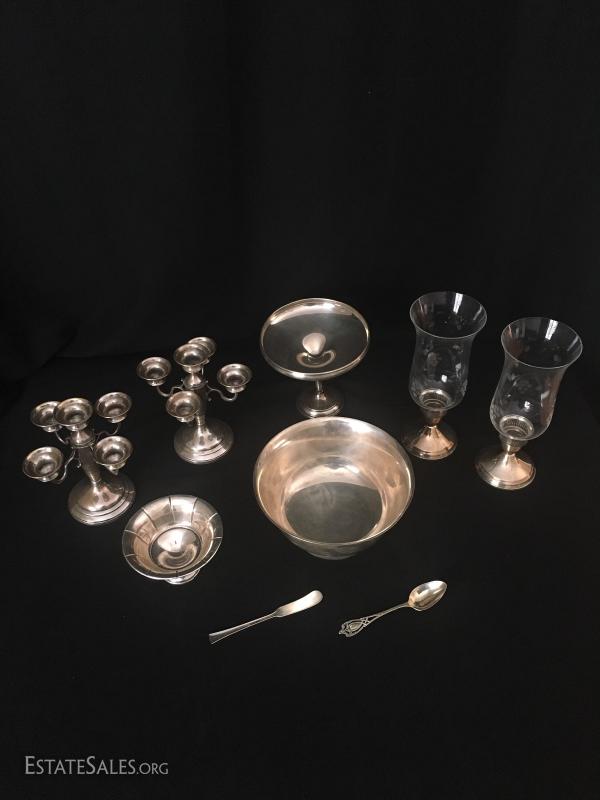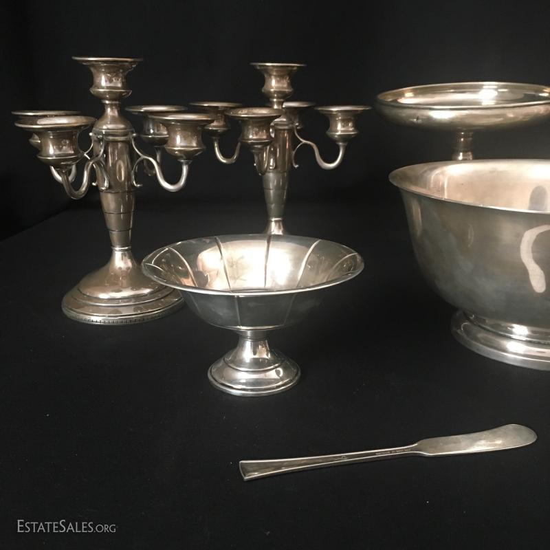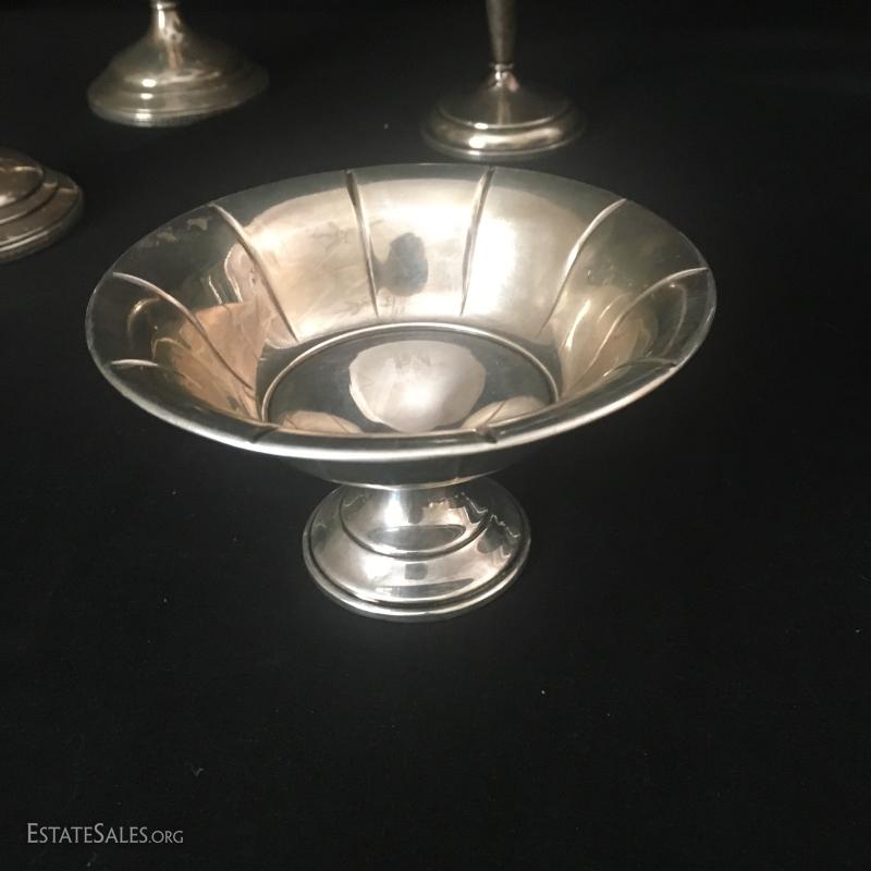 Candle holders are weighted as well as pedestal bowls. Candelabras measure 7" tall. Lot is avaiable for shipping or local pick up in Asheville, NC.