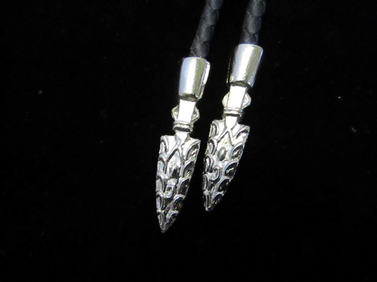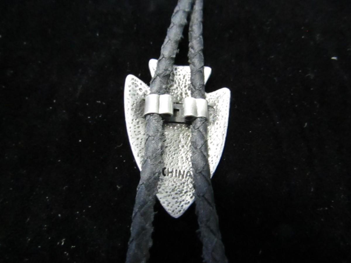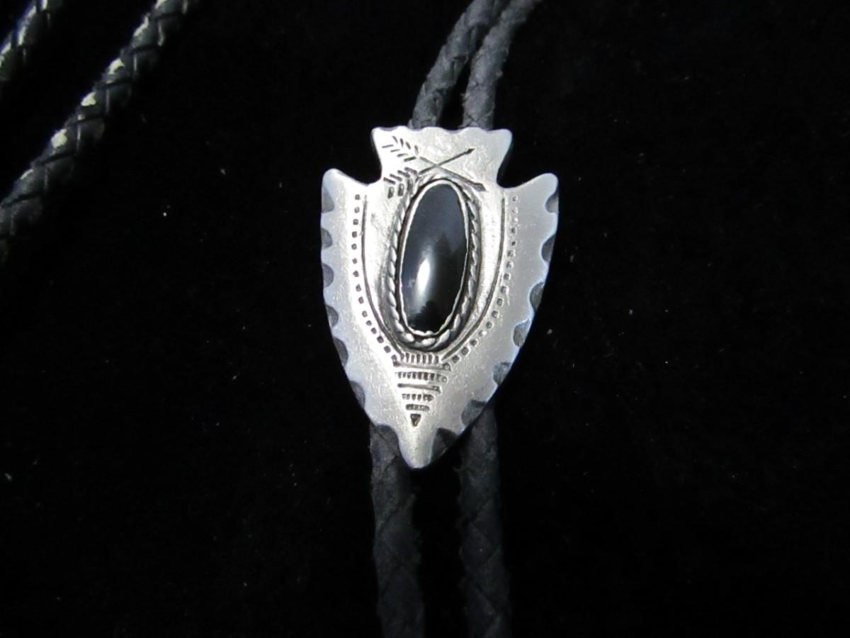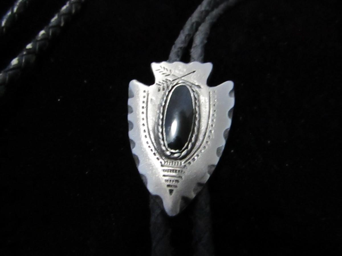 PEWTER LIKE ARROWHEAD WITH A BLACK STONE