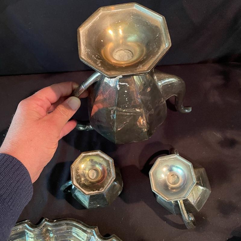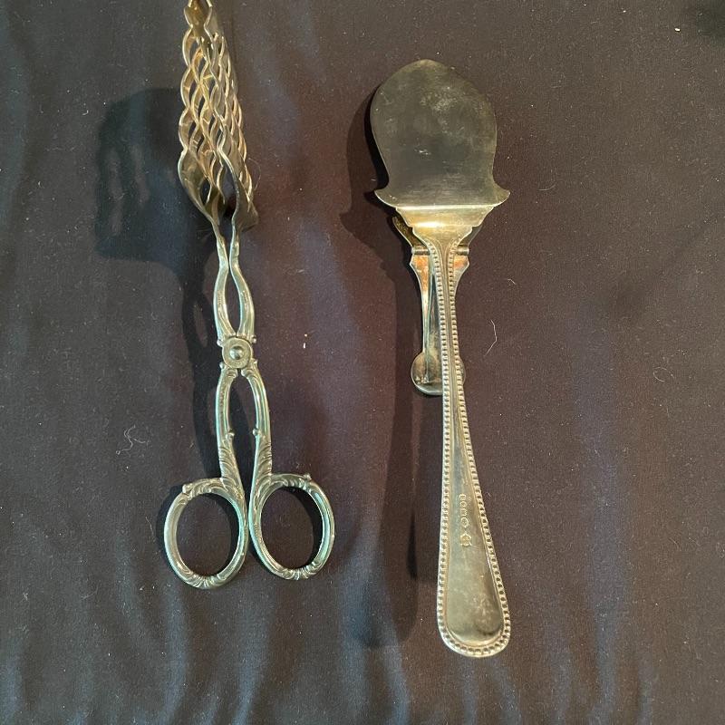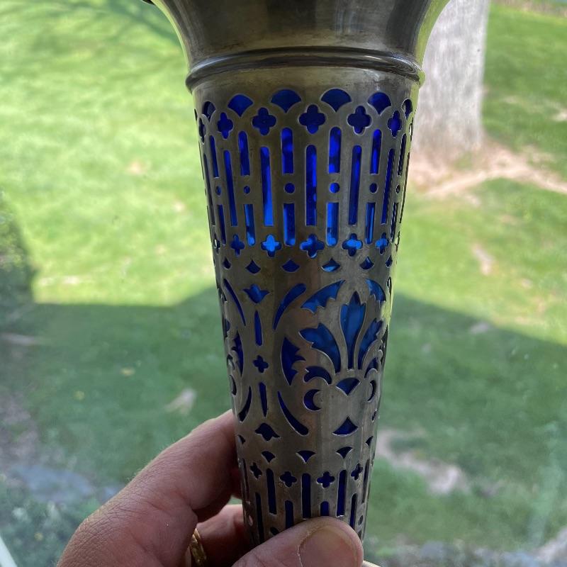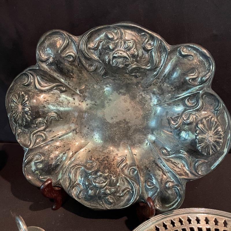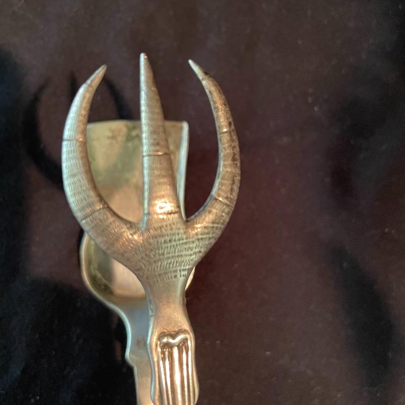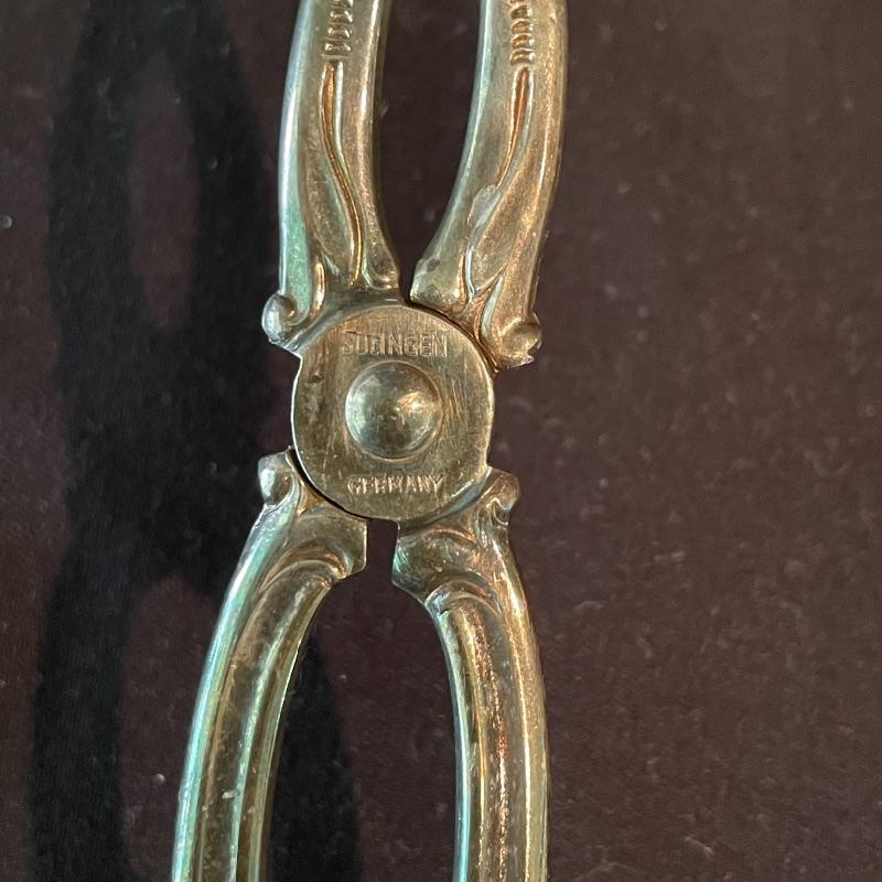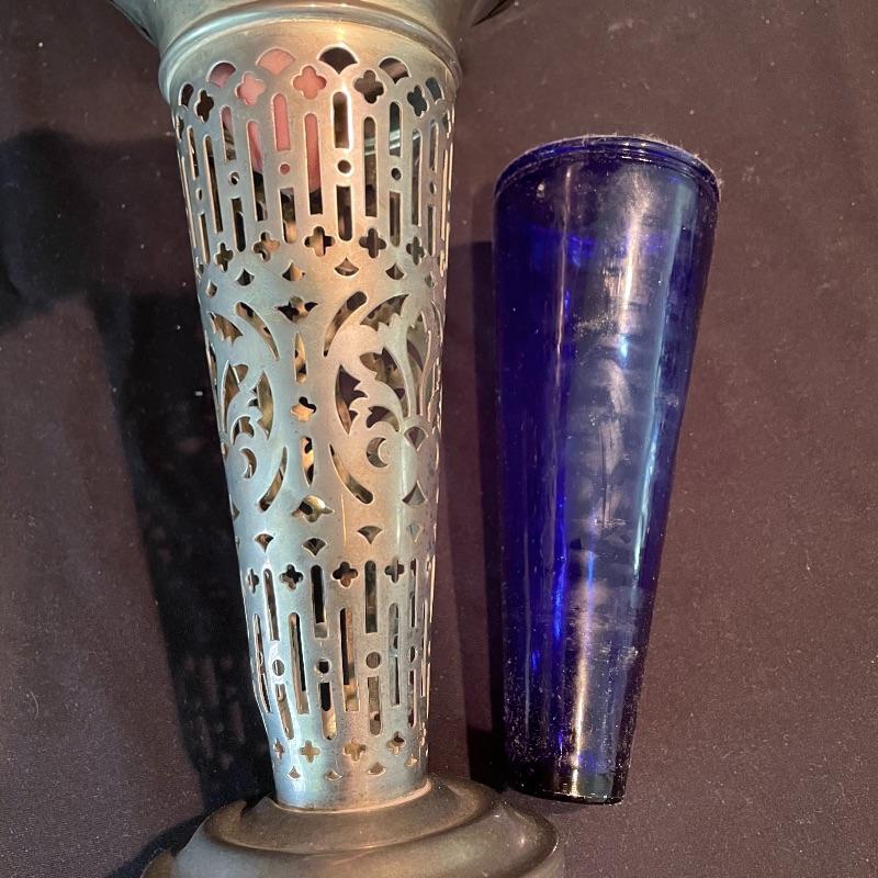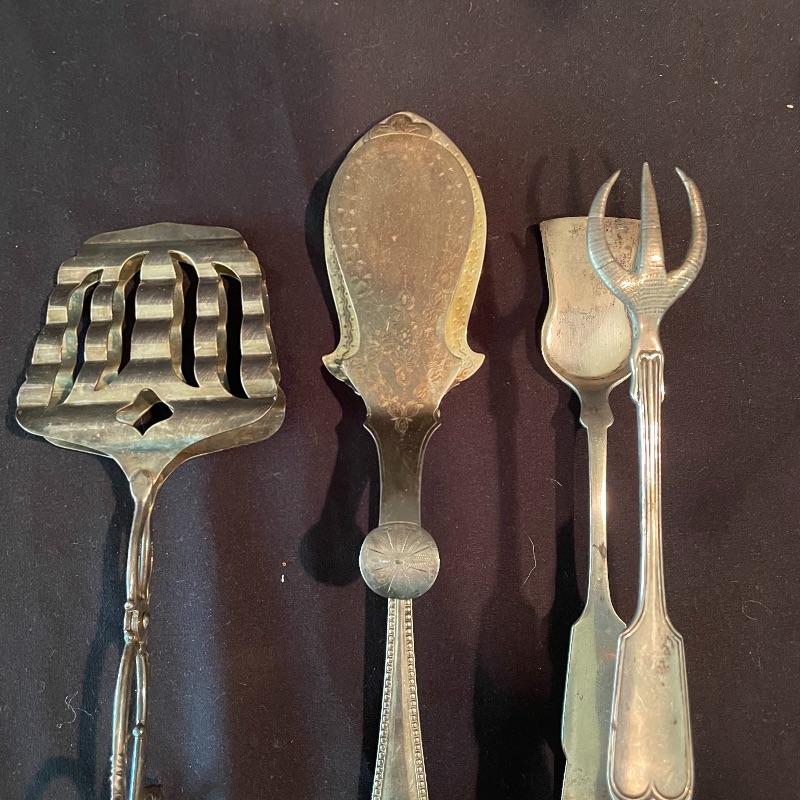 Here’s some items to have your guests chatting about at your next dinner party. Serve up asparagus with its “proper” utensil! Lot include neat citrus adorned spoons, a unique bird claw tong, three napkin holders with plates, trays, tea and more! The Godinger vase is about 8” tall with a deep blue glass insert. It matches perfectly with the other blue glass insert on the piece marked Germany. There is also a heavy weighted bell with knocker, it has a wonderful ring, although there appears to be some rusting on the bottom. Have fun with this shiny silver colored lot! Local pick up only.