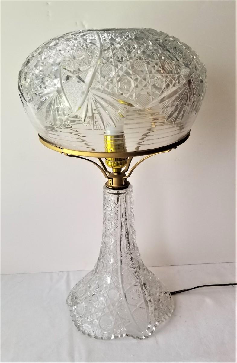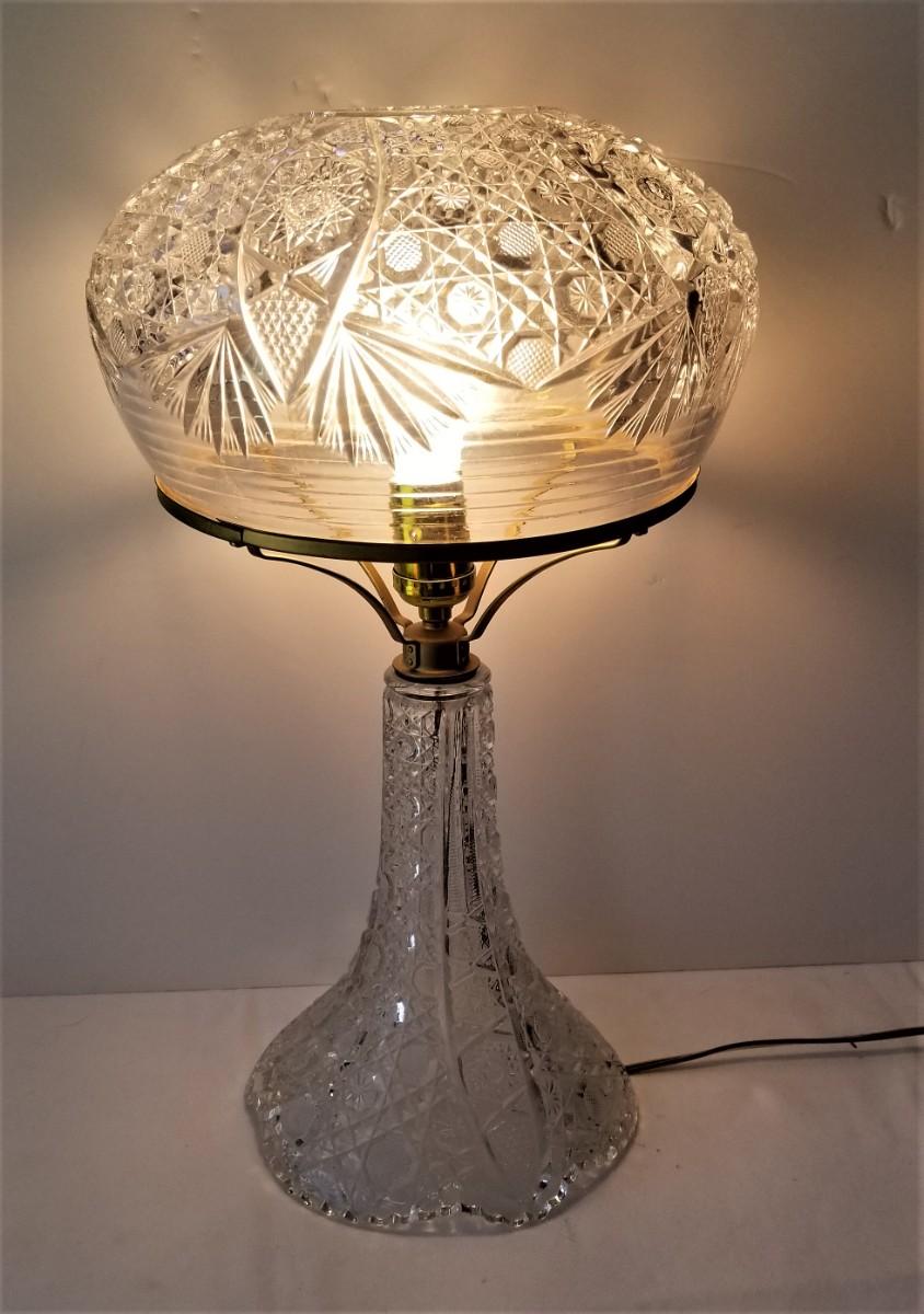 This is a beauty - pressed glass "mushroom" lamp in good working condition. Very attractive. Pull string, vintage cord.