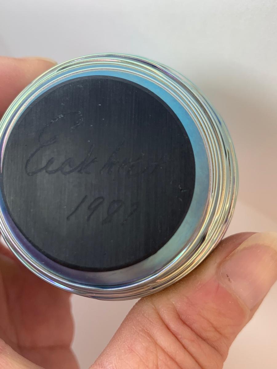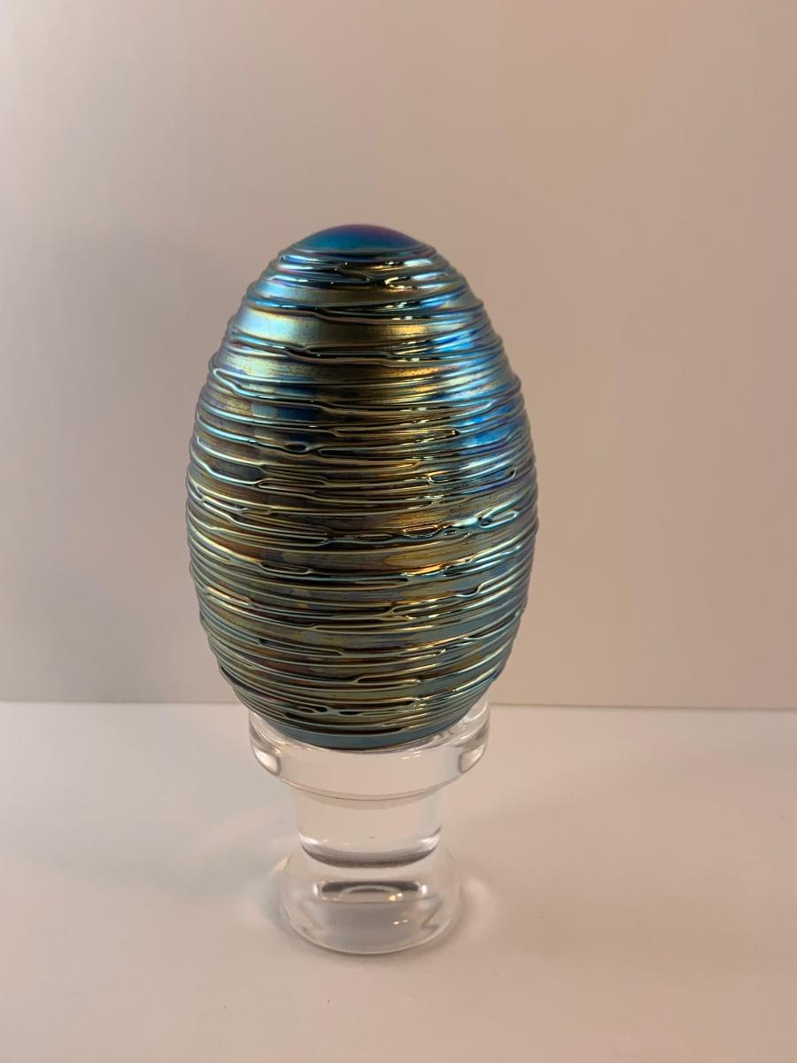 1987 Robert Eickholt blue toned egg shape paperweight. Signed on bottom "Eickholt 1987", 2" x 2 3/4"