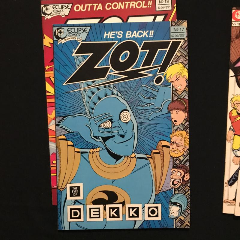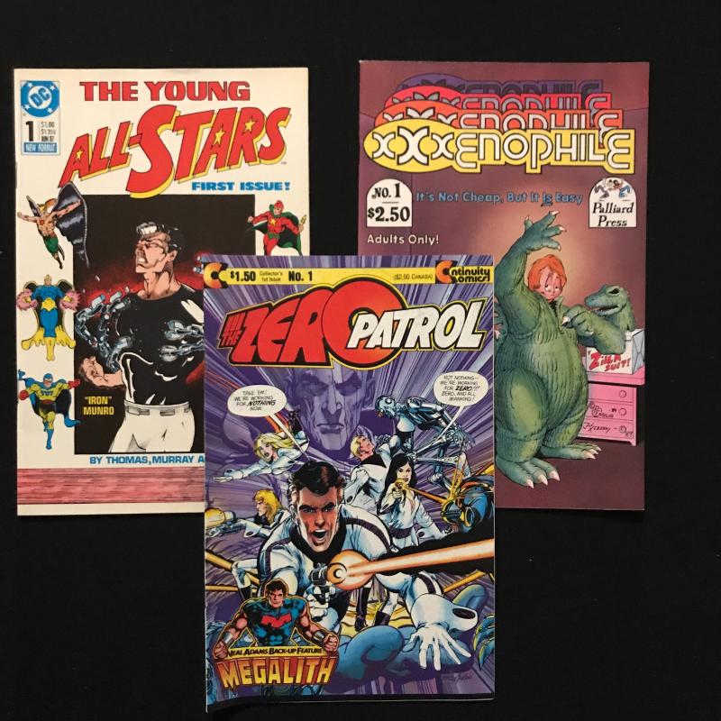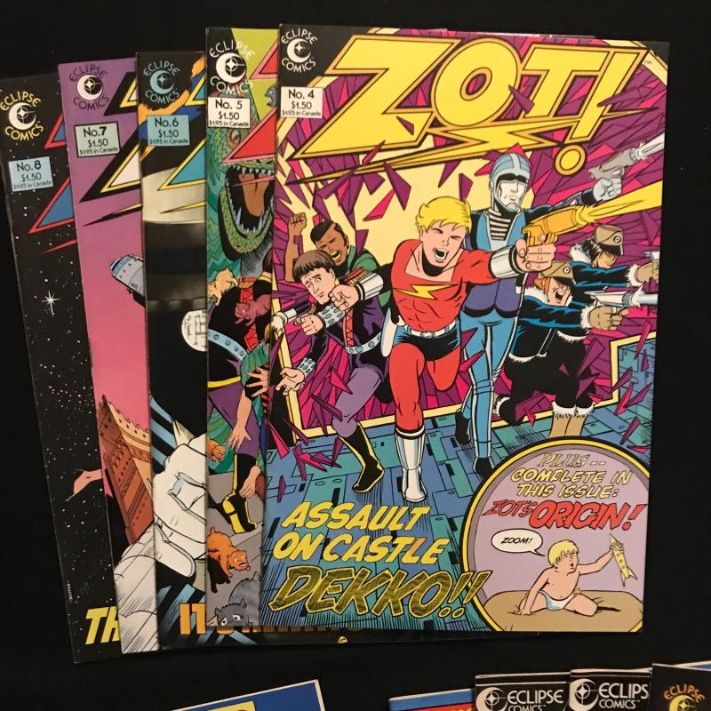 This lot includes "X-Factor" comics by Marvel. Starting with issue Vol 1, No 1 Feb 1986. Also includes an annual from 1986. This lot includes a 6 Issue series of "Zooniverse" by Eclipse Comics, 20 Issues of "Zot!" by Eclipse Comics (includes issue #14 1/2), 3 Issues of "Xenozoic Tales" by Kitchen Sink Comics and a couple single first issues. 56 total Issues in this lot. Fits in one Priority box for shipping or local pick up in Asheville, NC.
