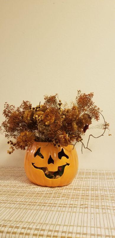 Lot #550: Fall Jack-O-Lantern Artificial Flower Arrangement