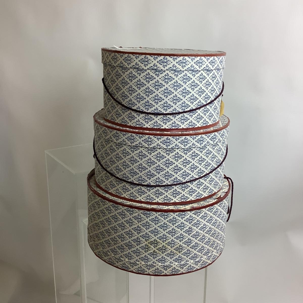 Lot 550 Lot of Vintage Blue & White Floral Hat Boxes