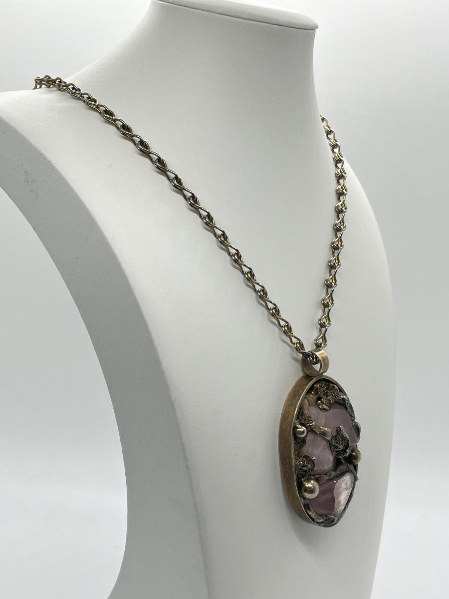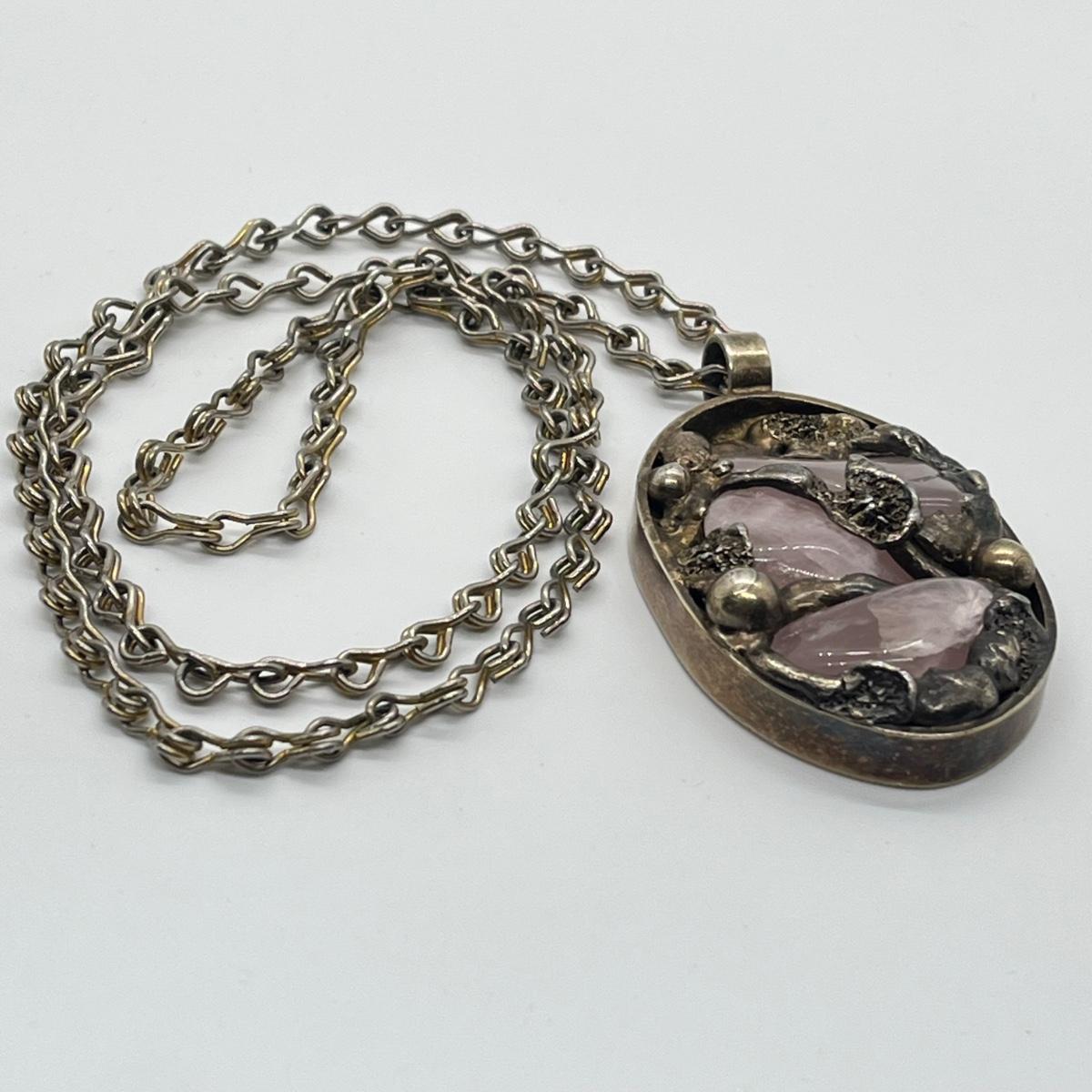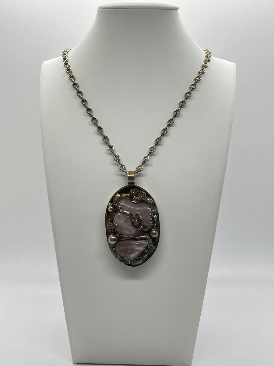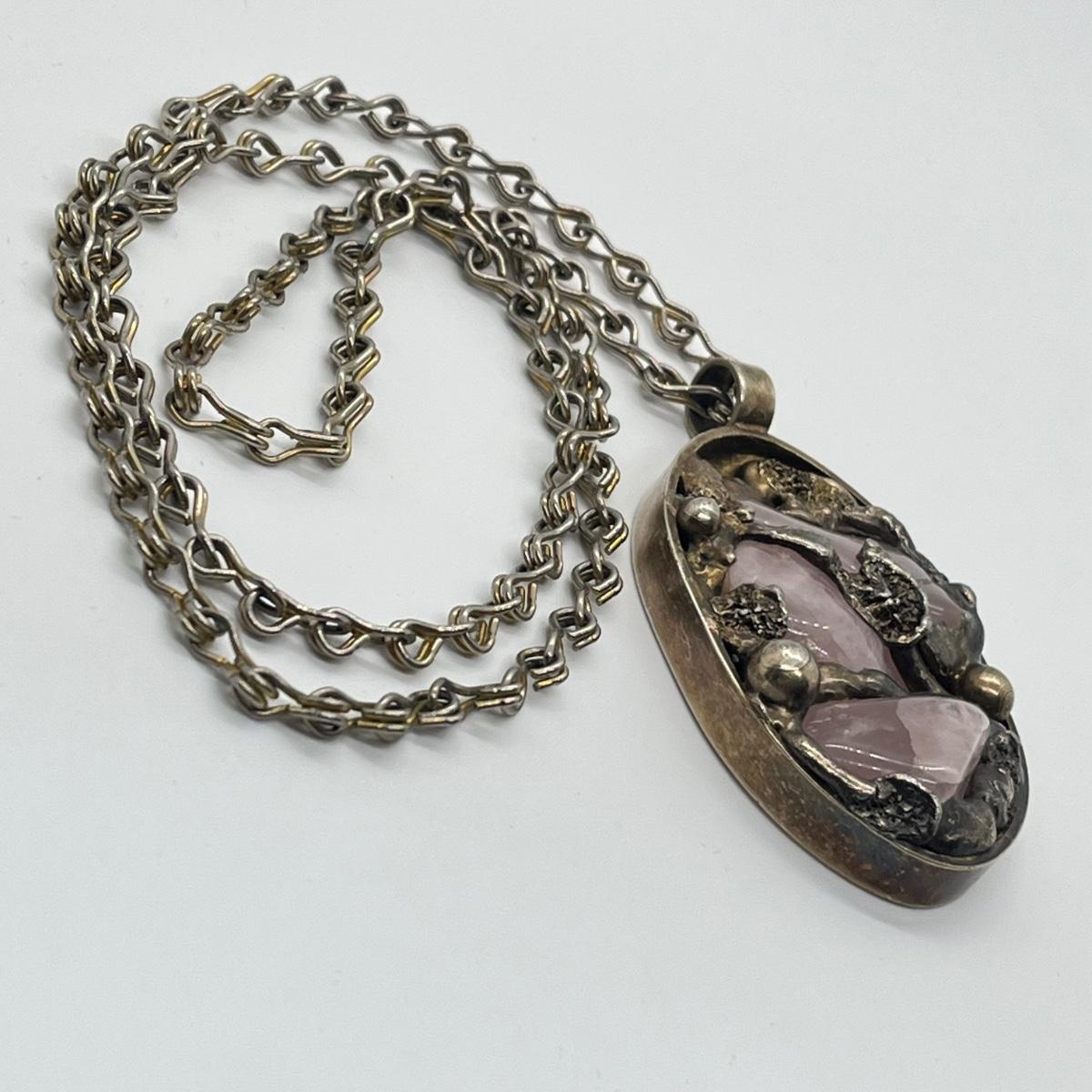 LOT 550F: Vintage Brutalist Stone Pendant on 27" Chain - Dansk Smykkekunst Handmade Denmark
