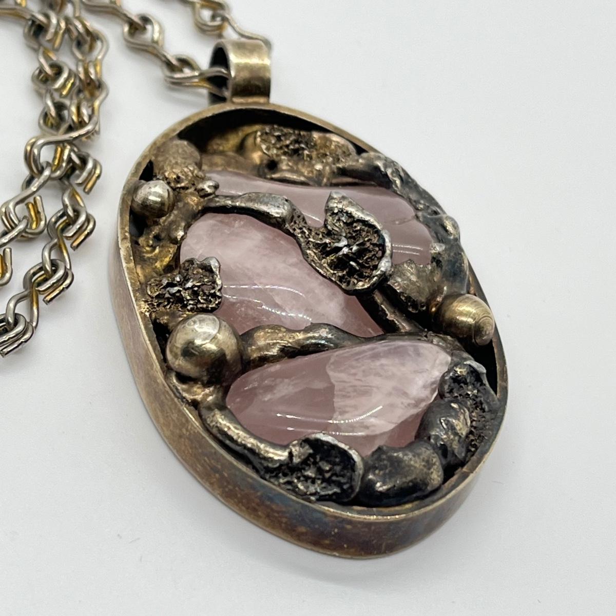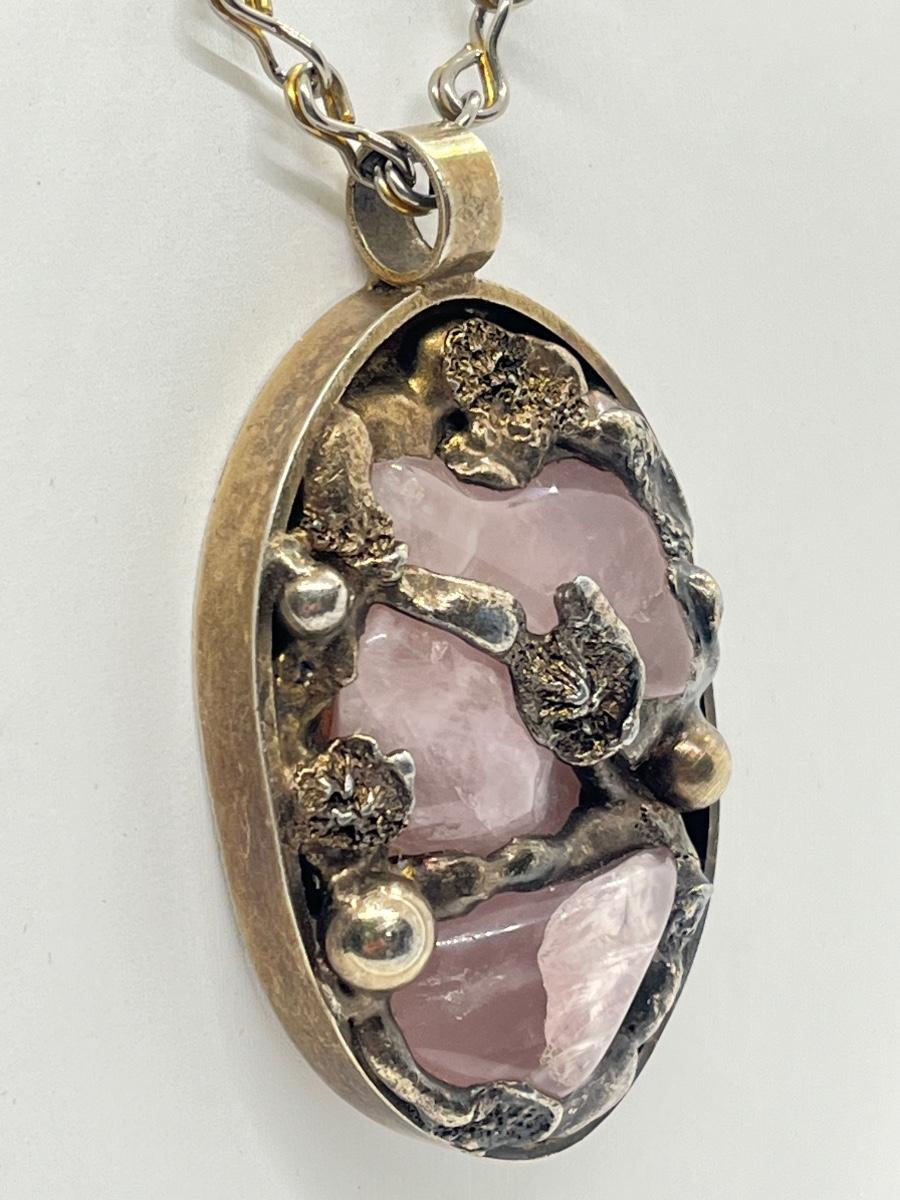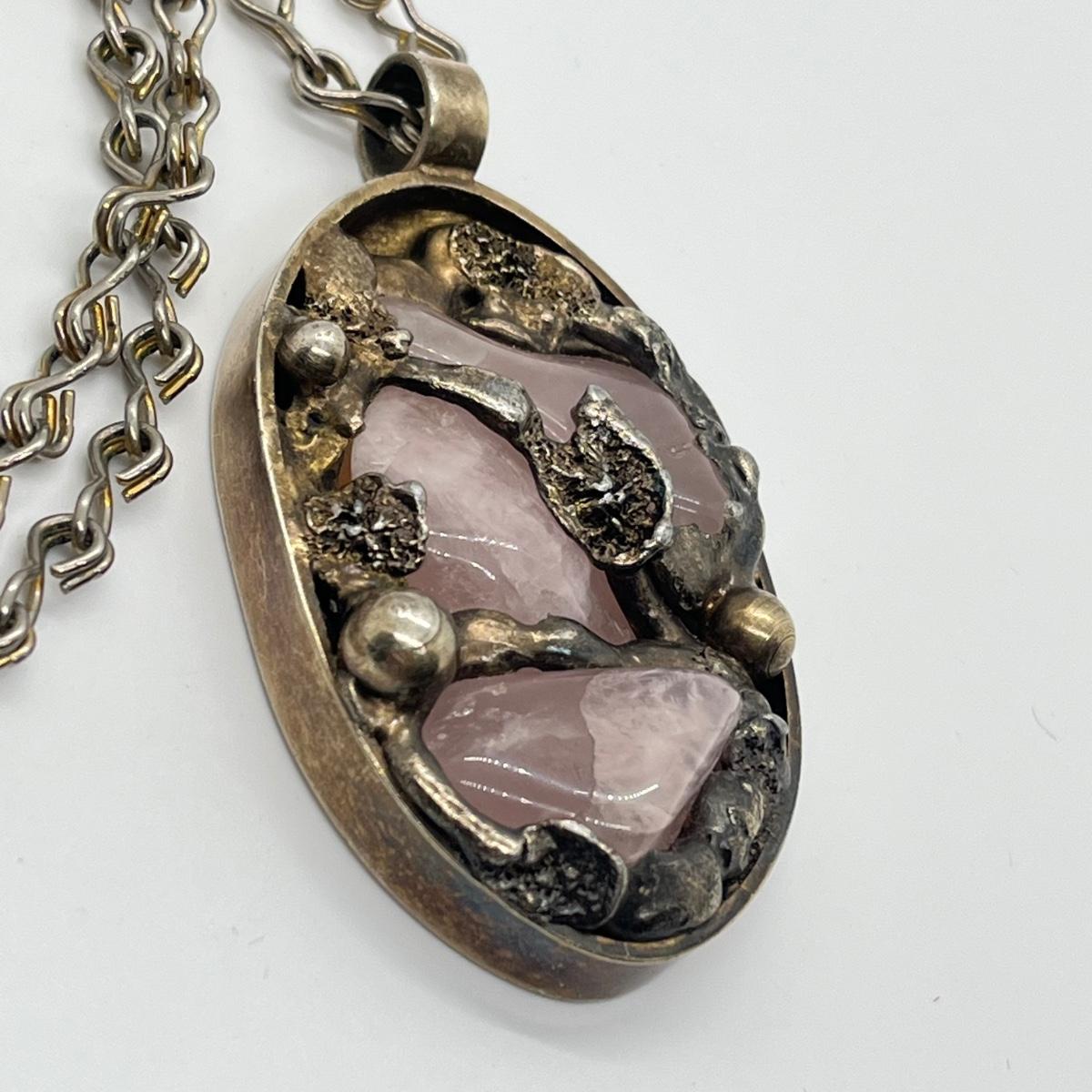 LOT 550F: Vintage Brutalist Stone Pendant on 27" Chain - Dansk Smykkekunst Handmade Denmark