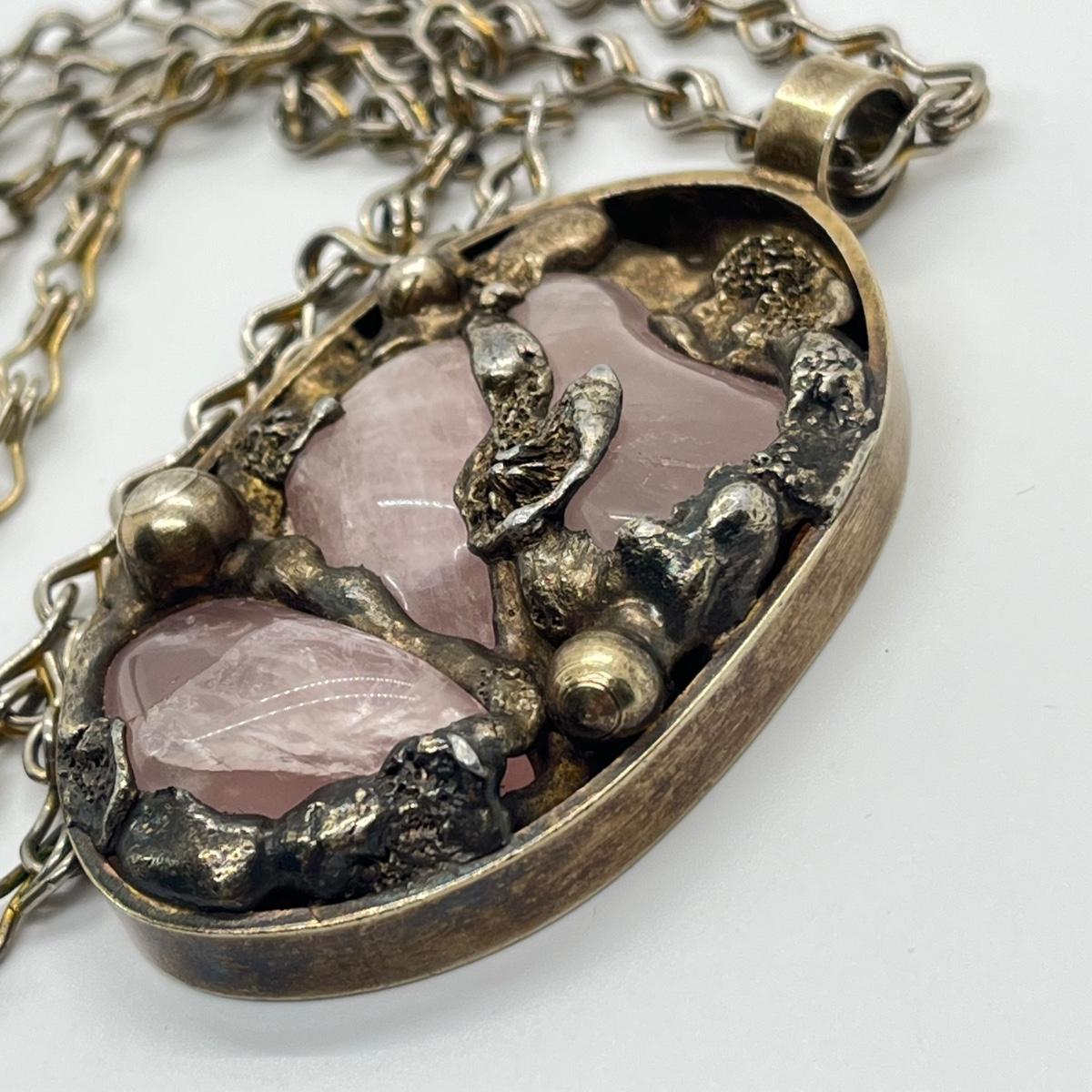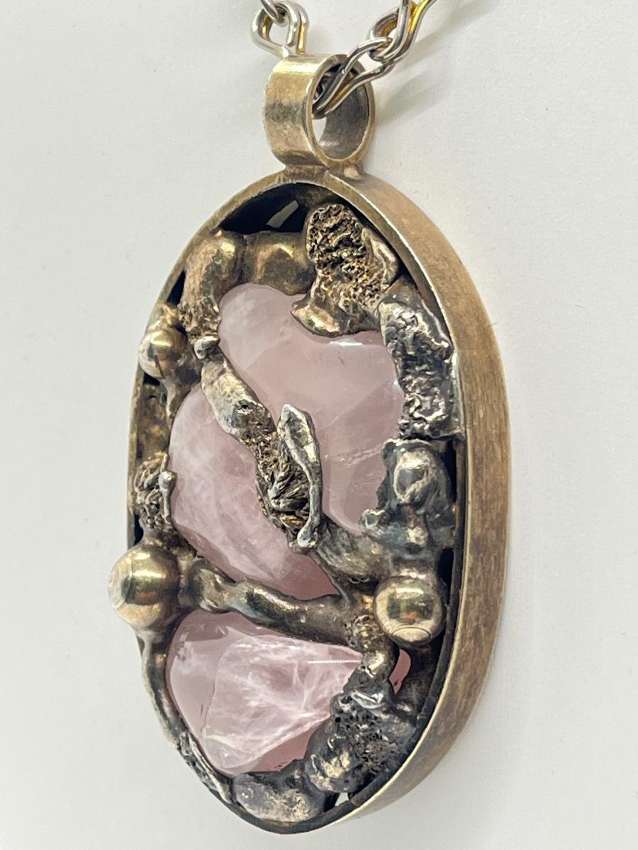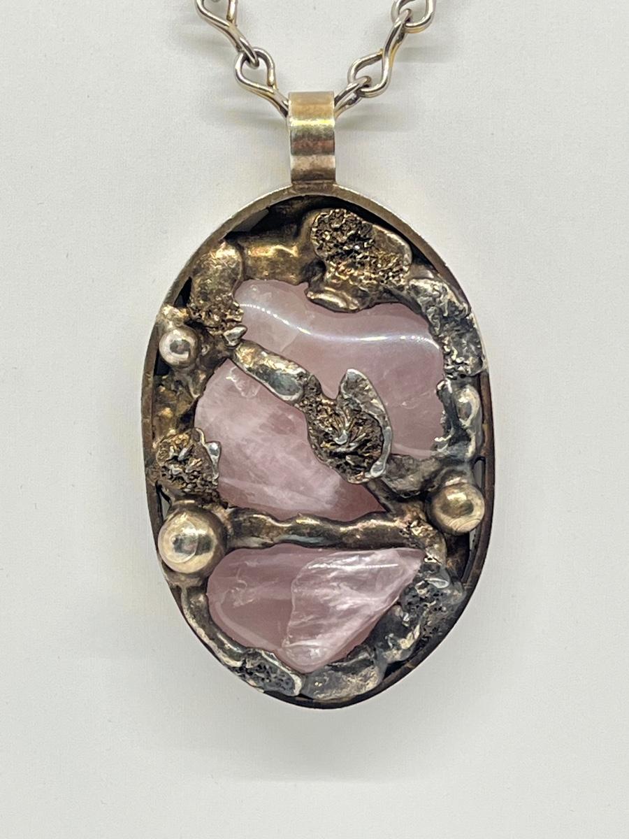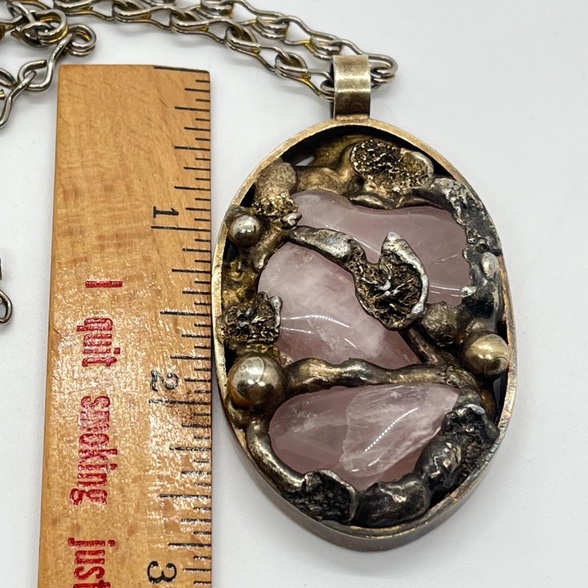 LOT 550F: Vintage Brutalist Stone Pendant on 27" Chain - Dansk Smykkekunst Handmade Denmark
