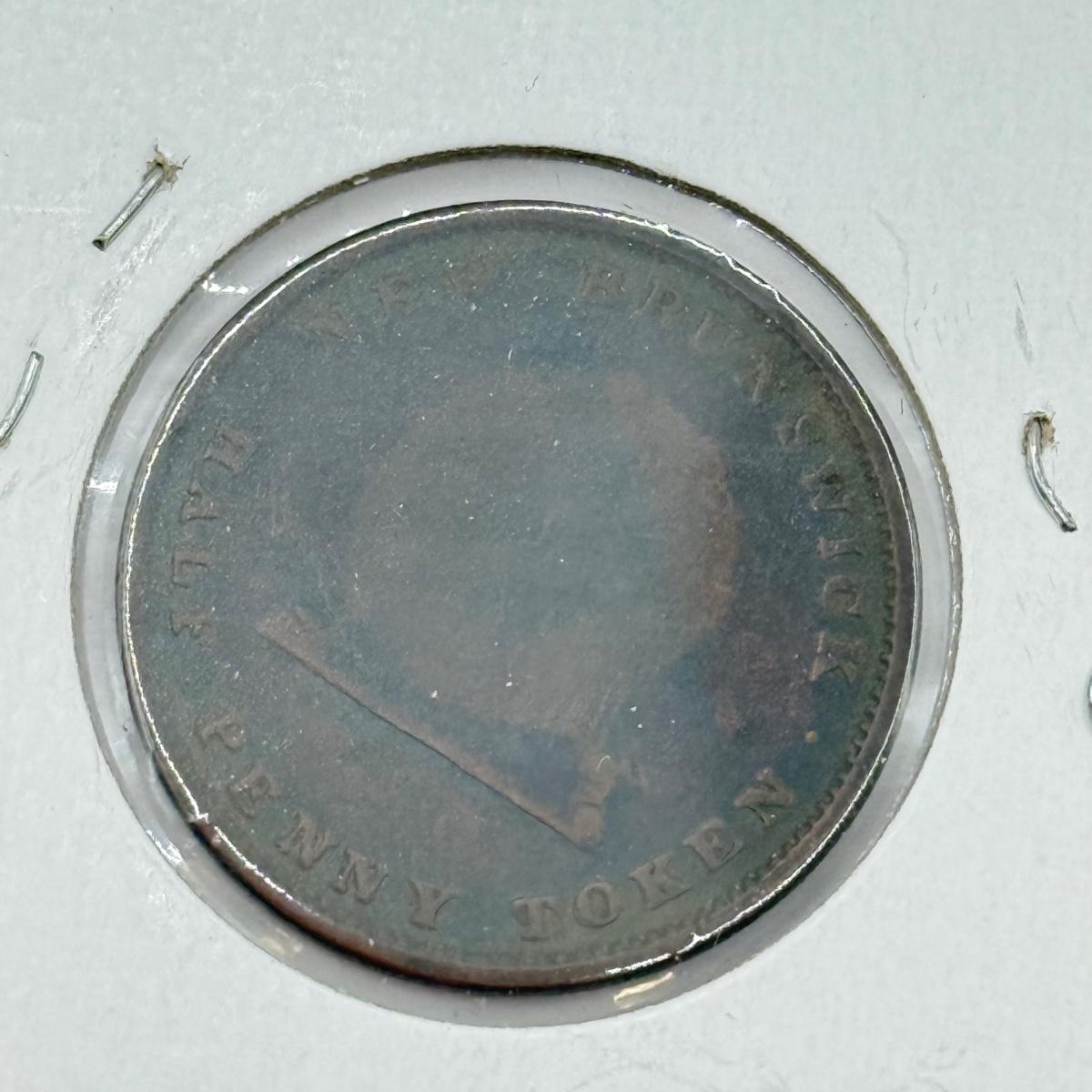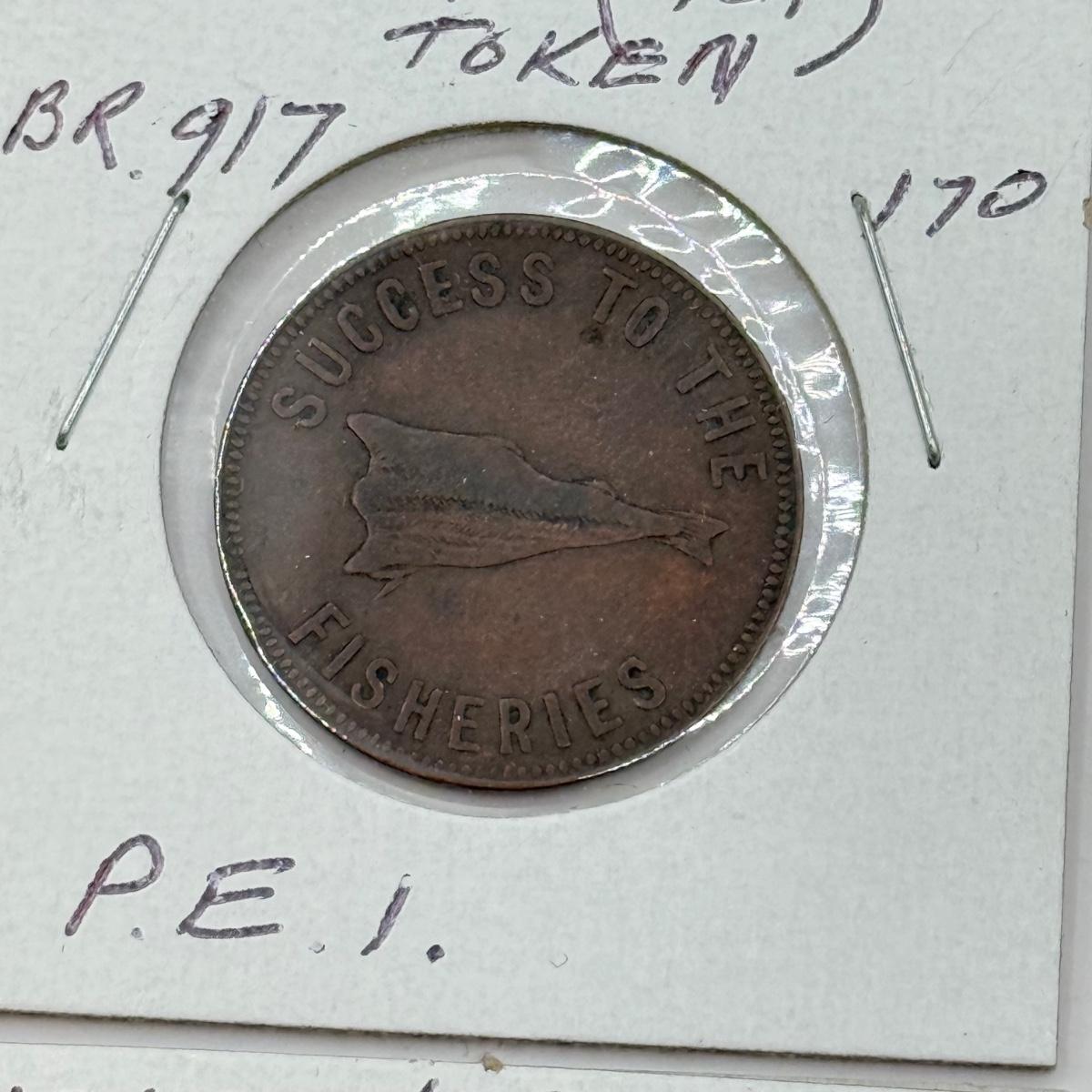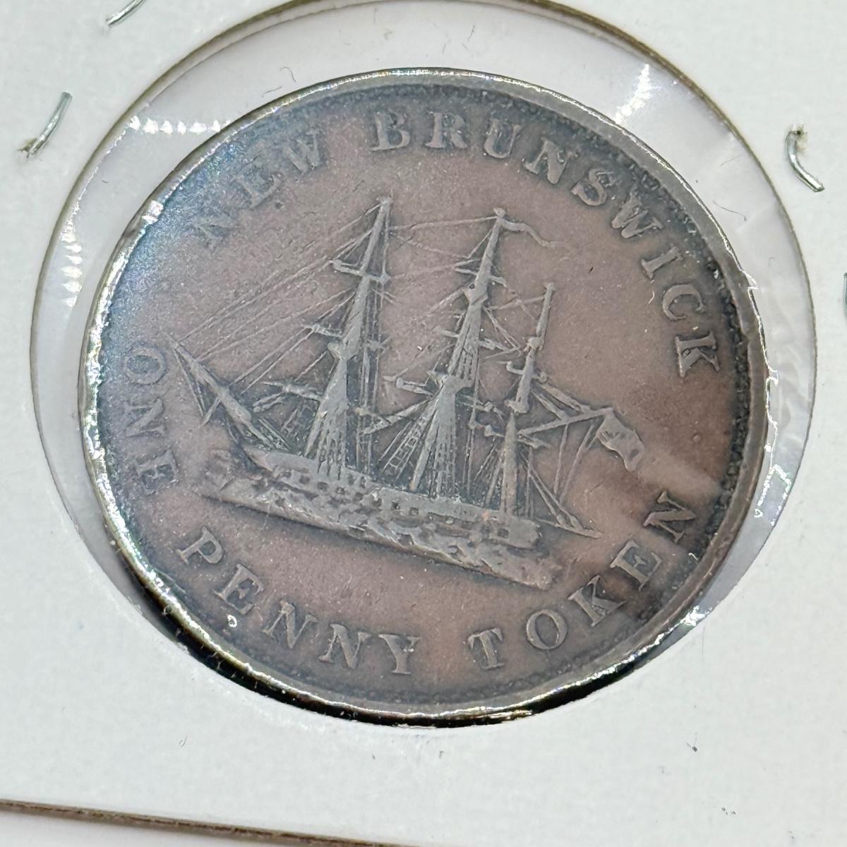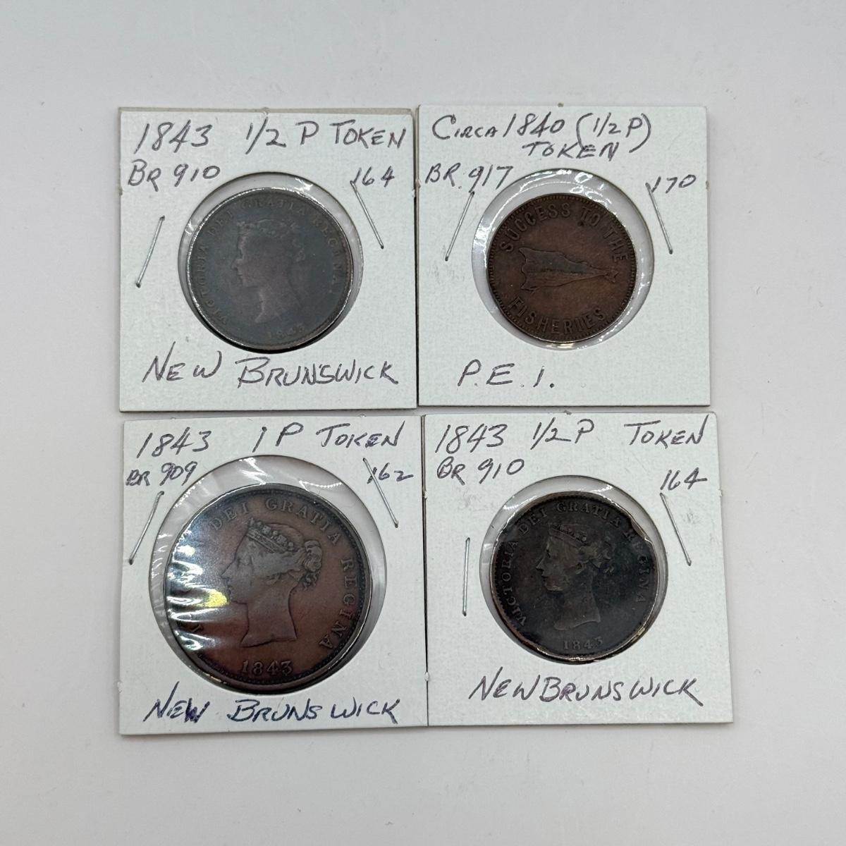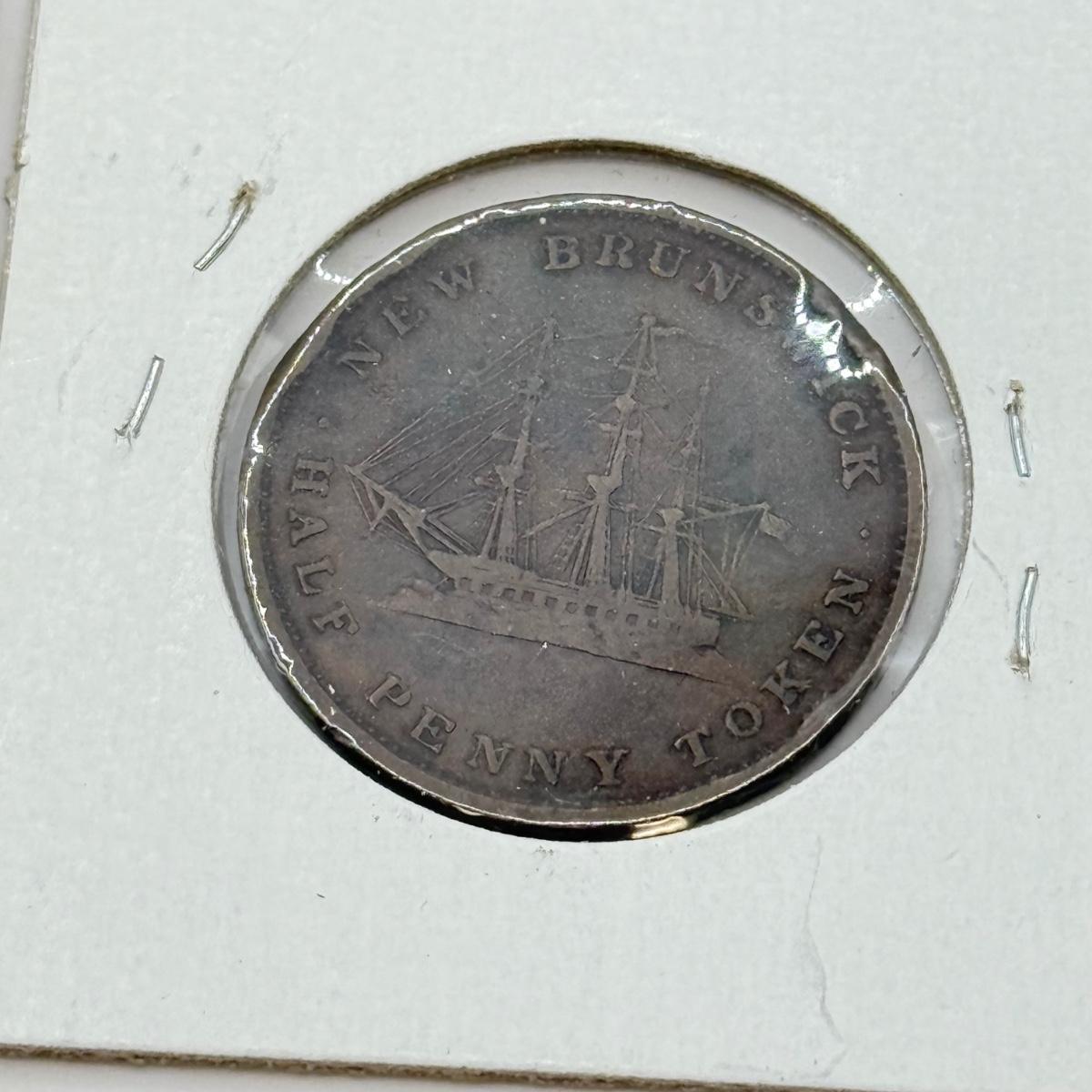 LOT 551J: 1800s Antique Canadian Coins & Tokens: New Brunswick Penny Token, Success to the Fisheries, Canadian 1/2 Penny & More