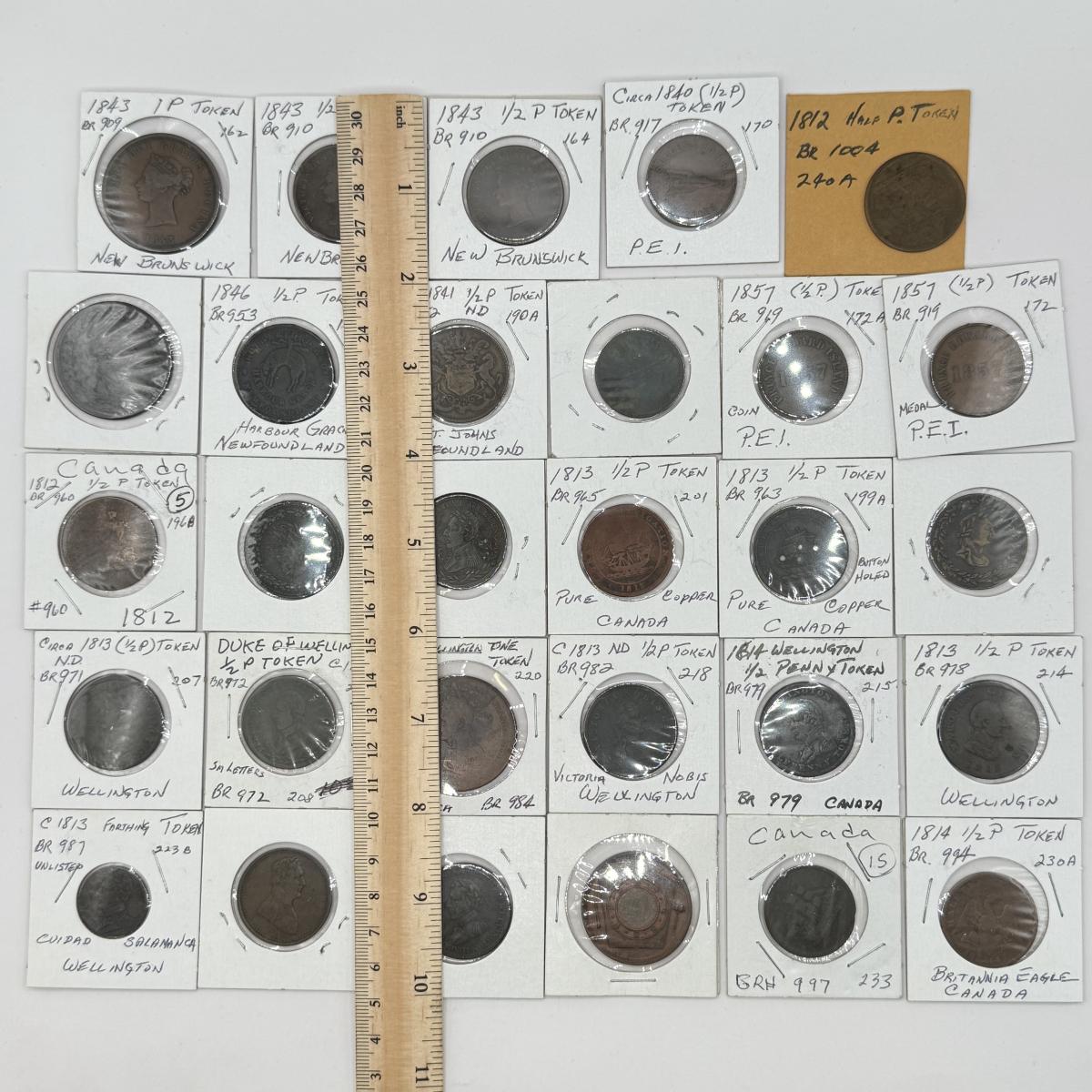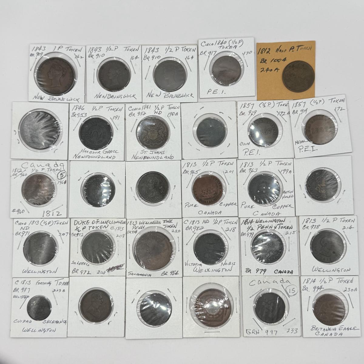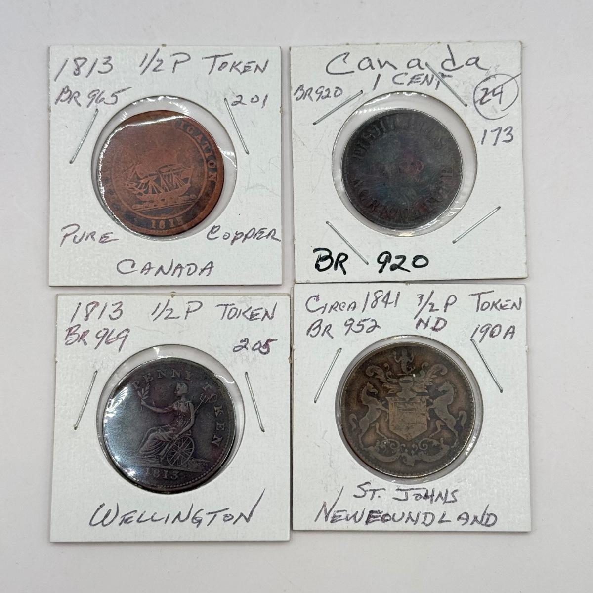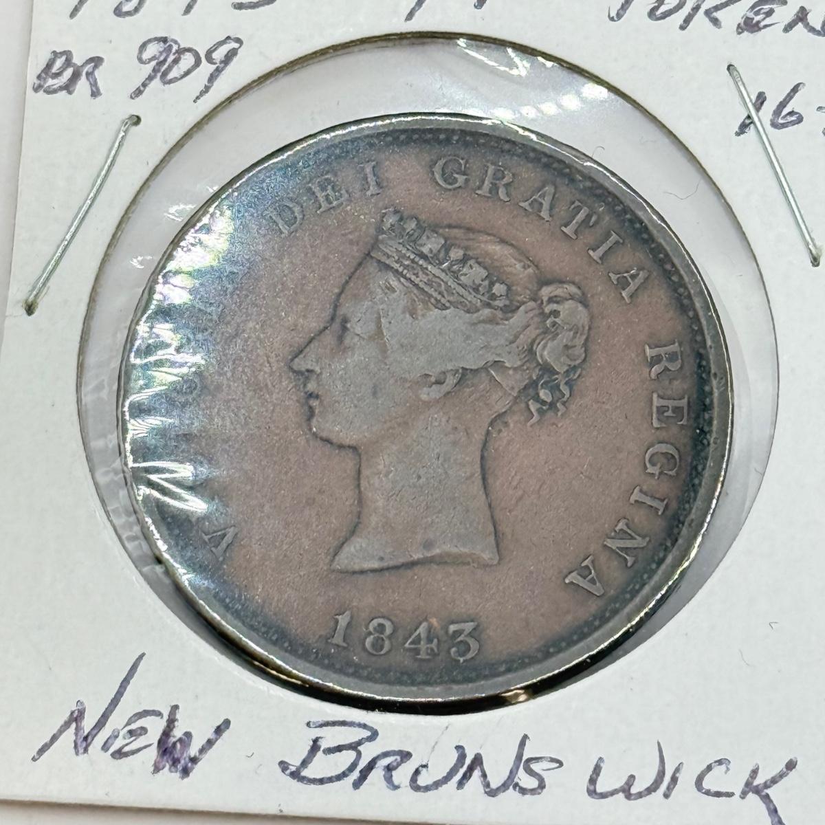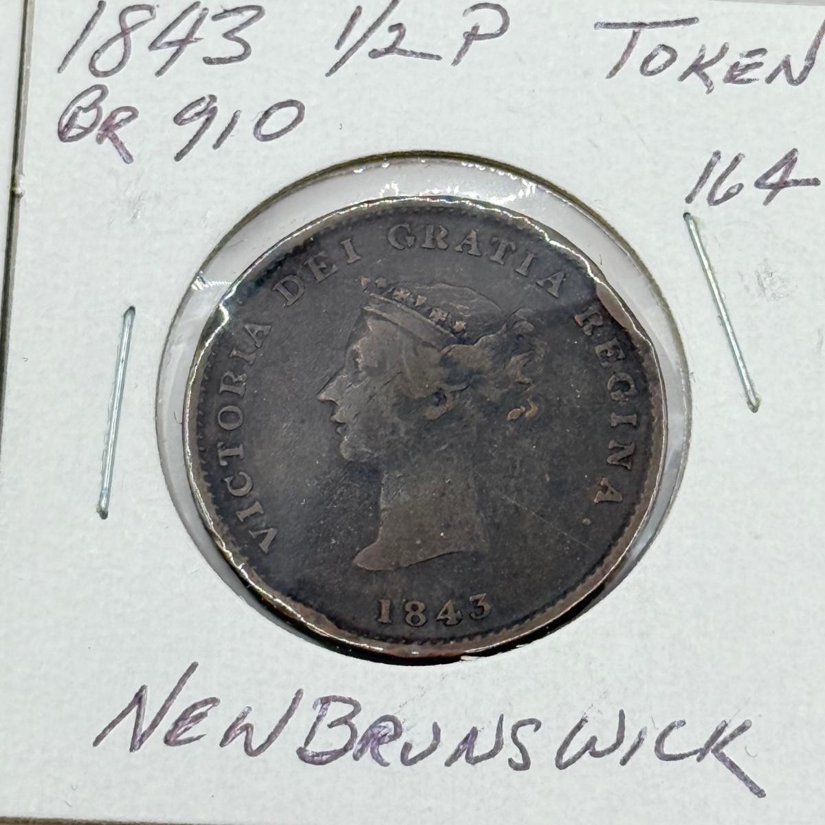 LOT 551J: 1800s Antique Canadian Coins & Tokens: New Brunswick Penny Token, Success to the Fisheries, Canadian 1/2 Penny & More