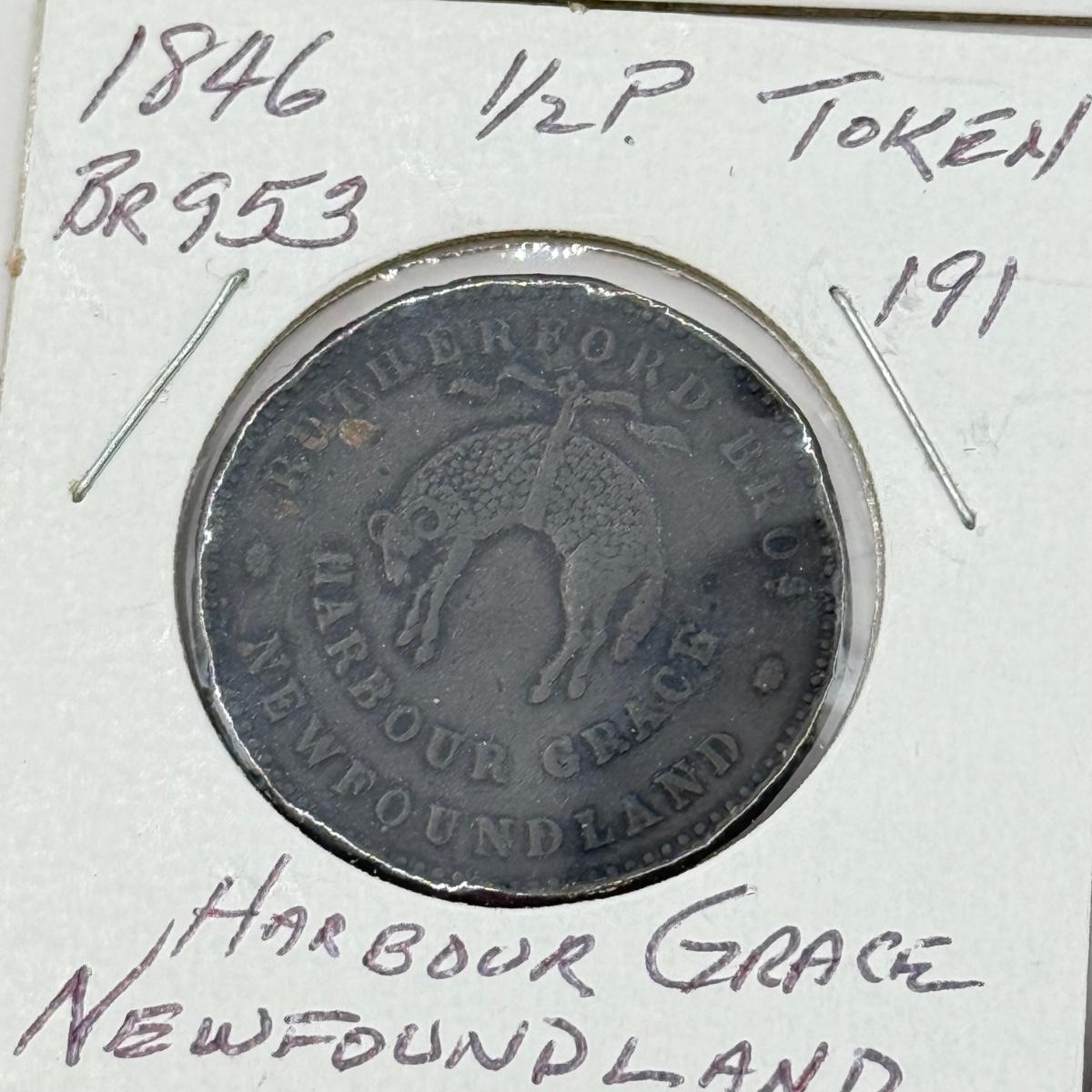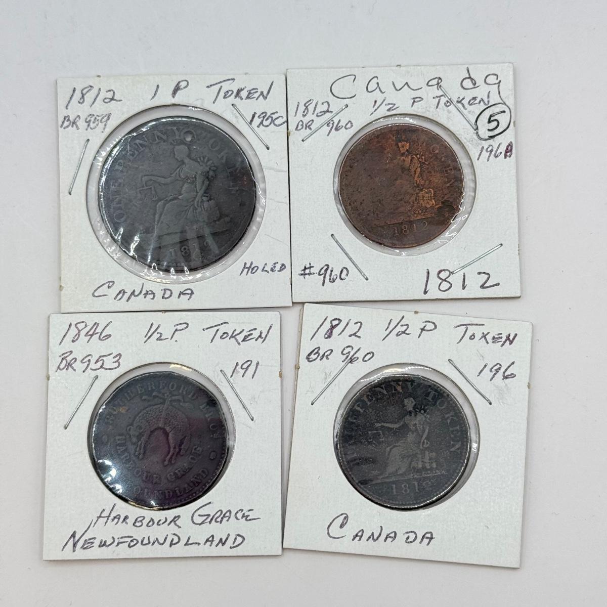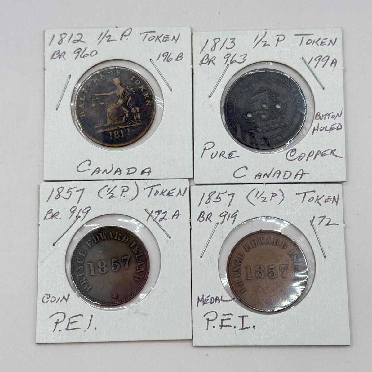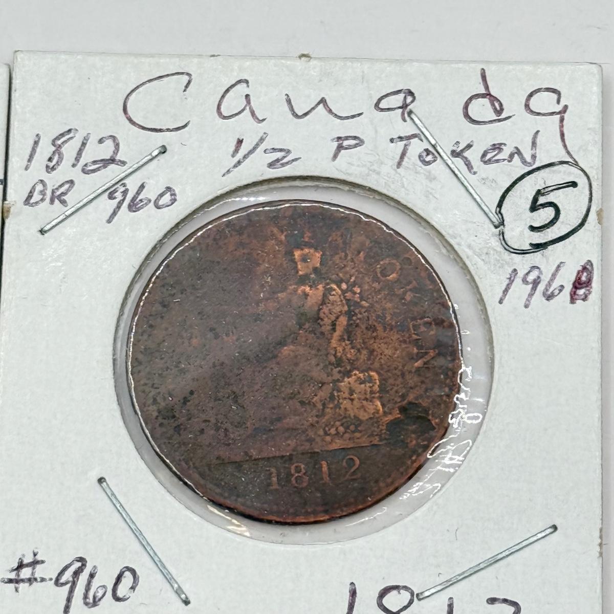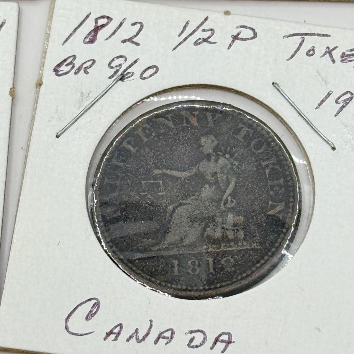 LOT 551J: 1800s Antique Canadian Coins & Tokens: New Brunswick Penny Token, Success to the Fisheries, Canadian 1/2 Penny & More