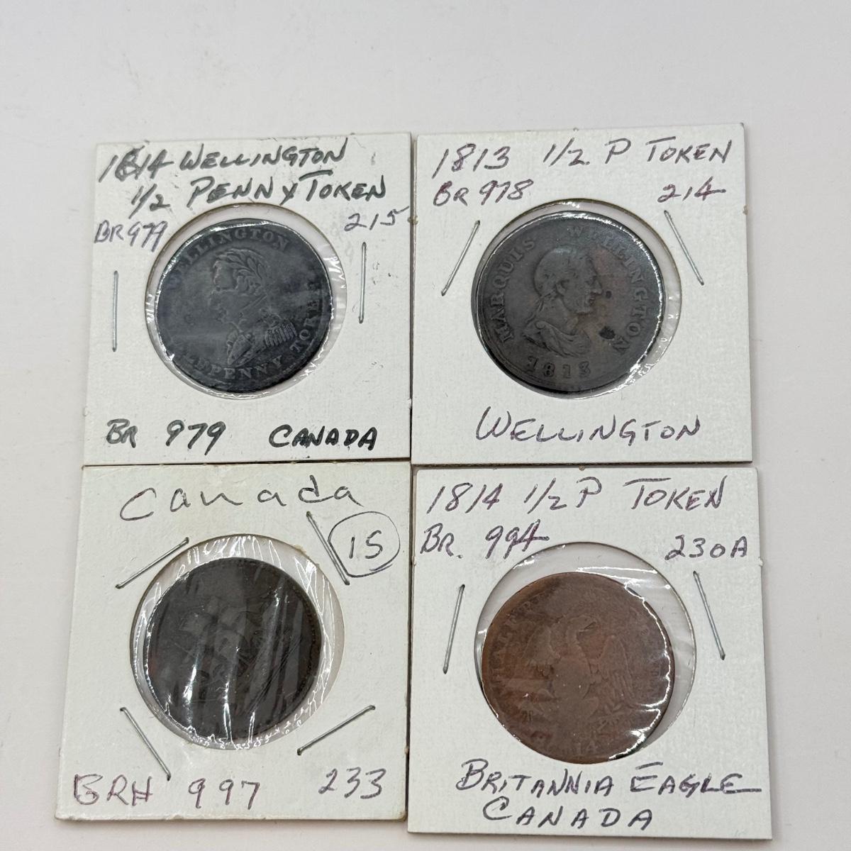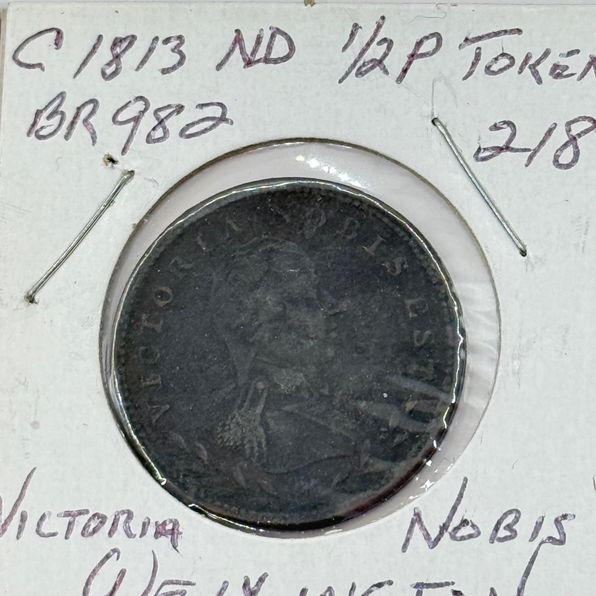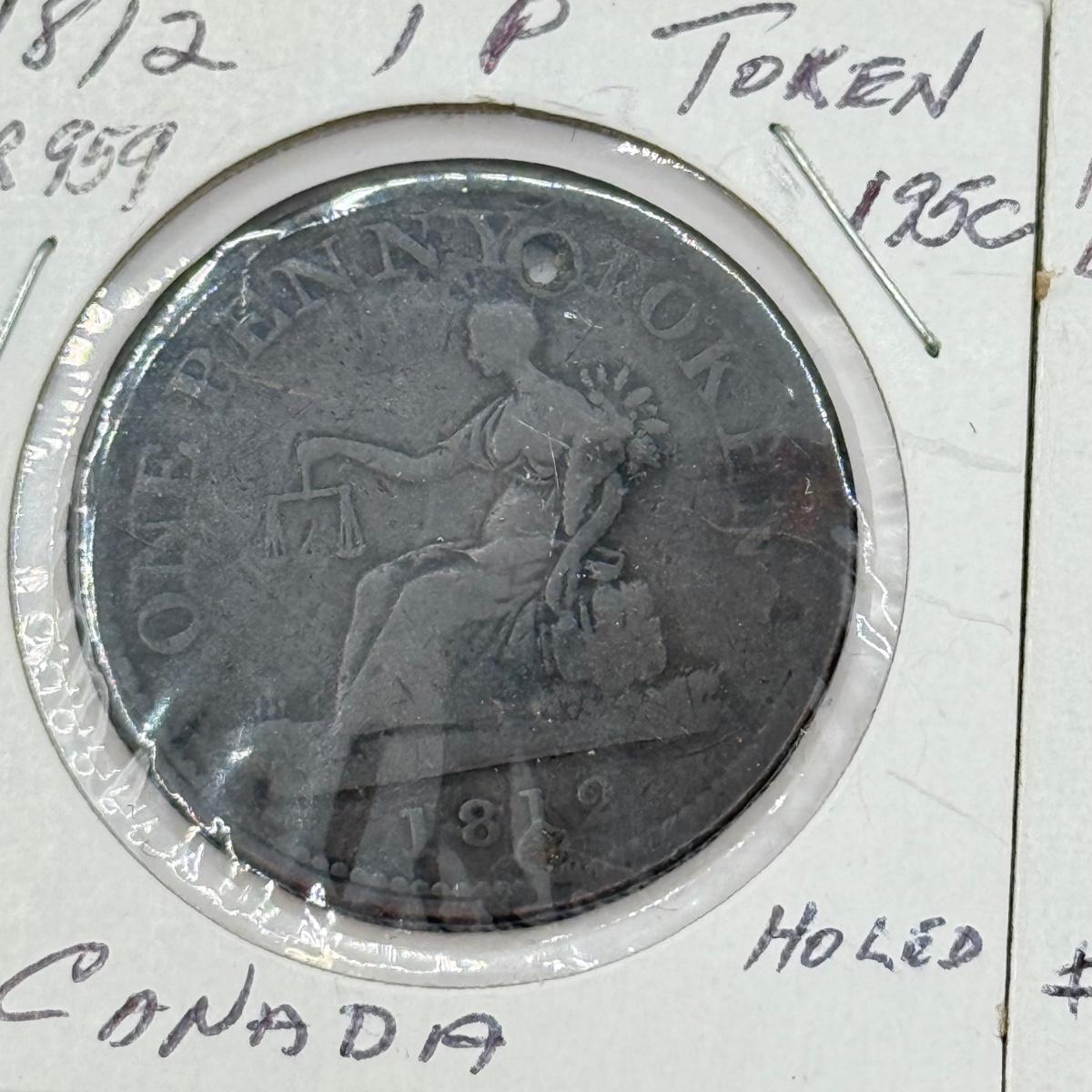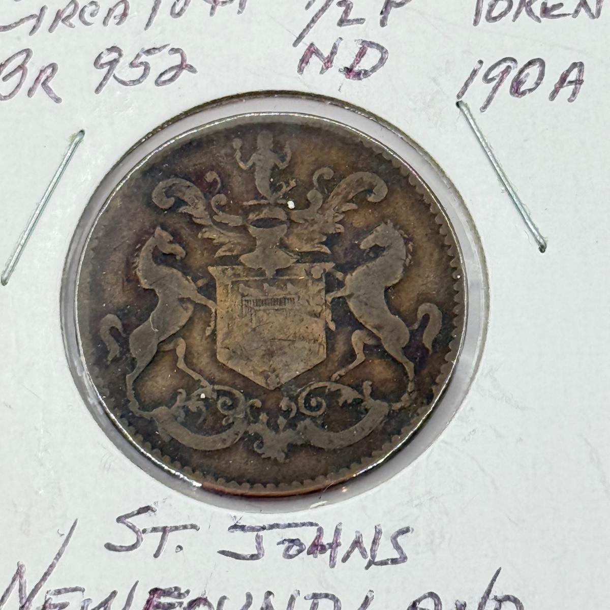 LOT 551J: 1800s Antique Canadian Coins & Tokens: New Brunswick Penny Token, Success to the Fisheries, Canadian 1/2 Penny & More
