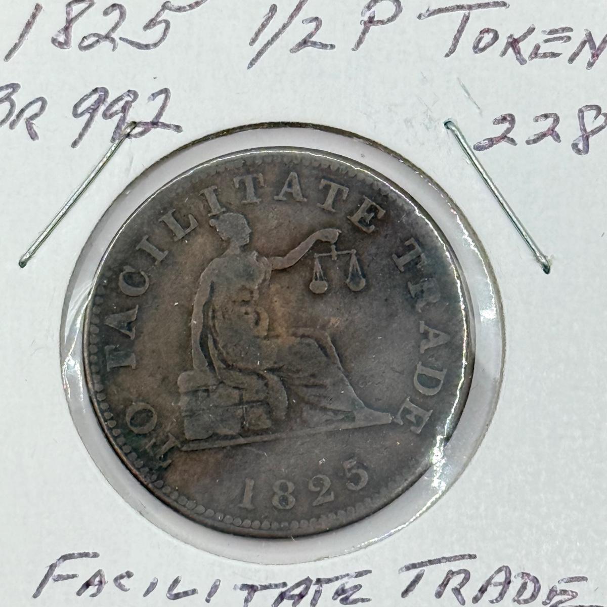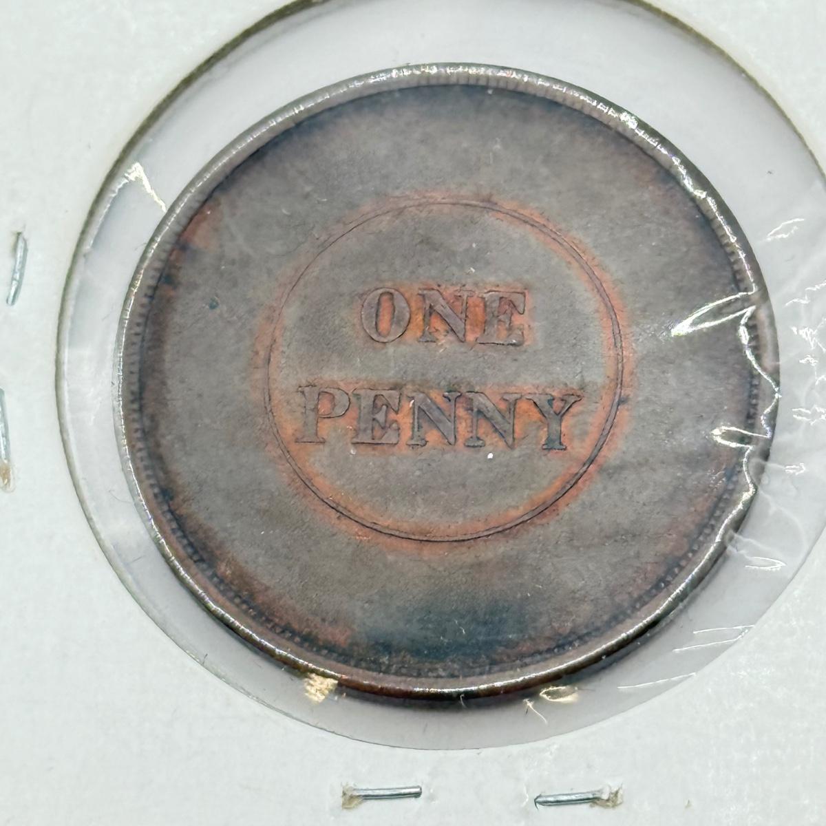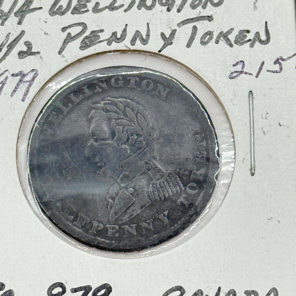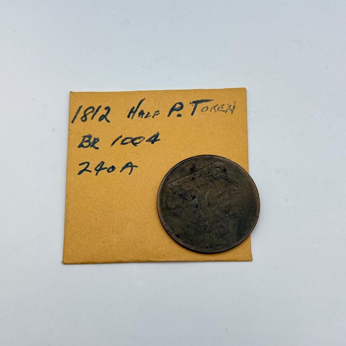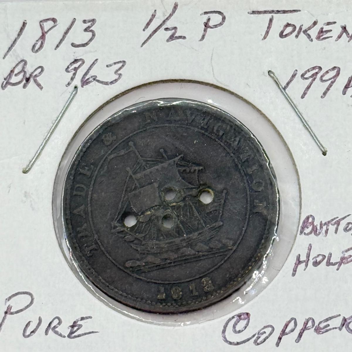 LOT 551J: 1800s Antique Canadian Coins & Tokens: New Brunswick Penny Token, Success to the Fisheries, Canadian 1/2 Penny & More
