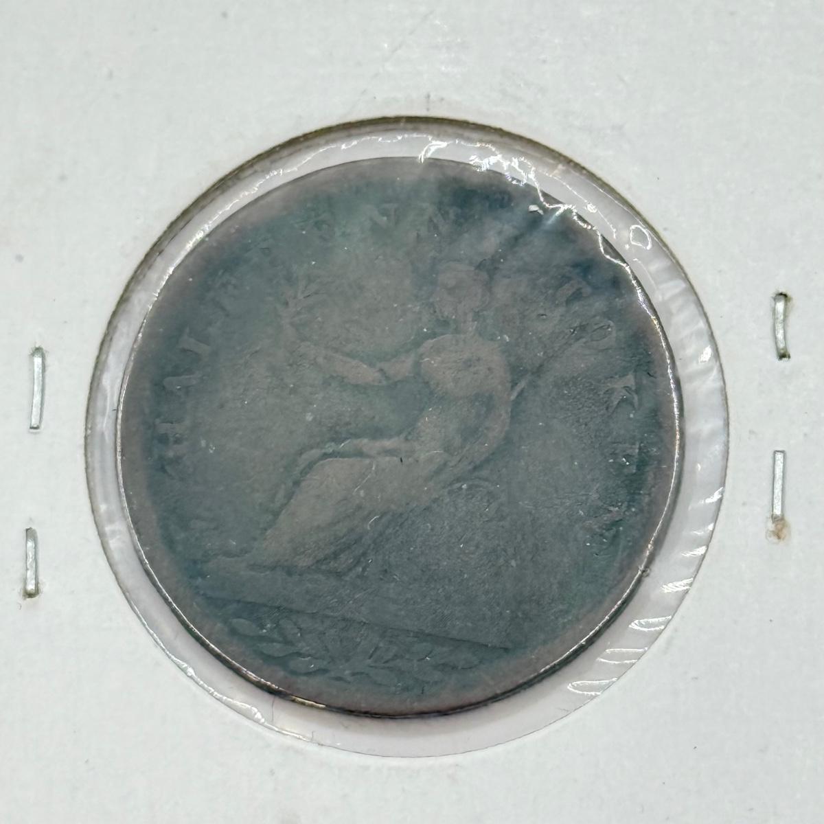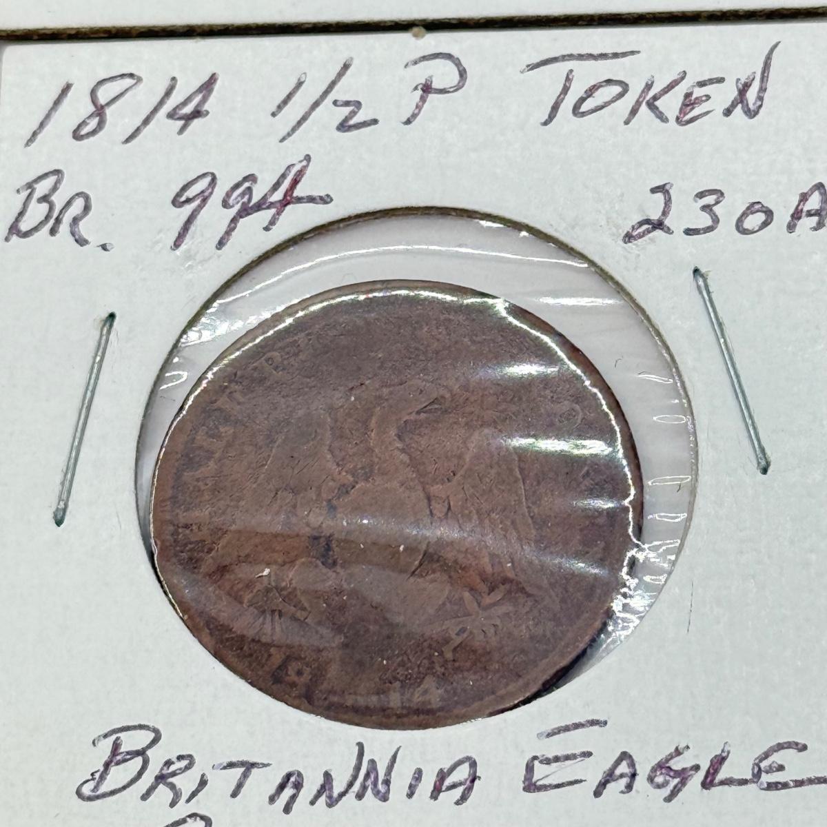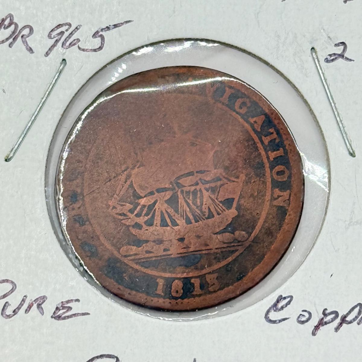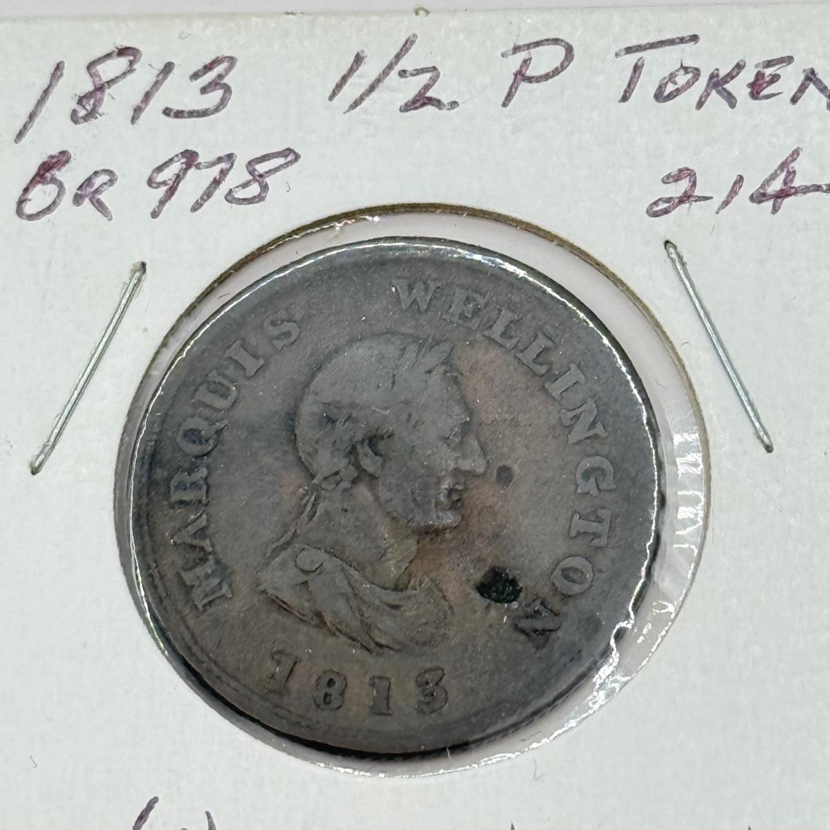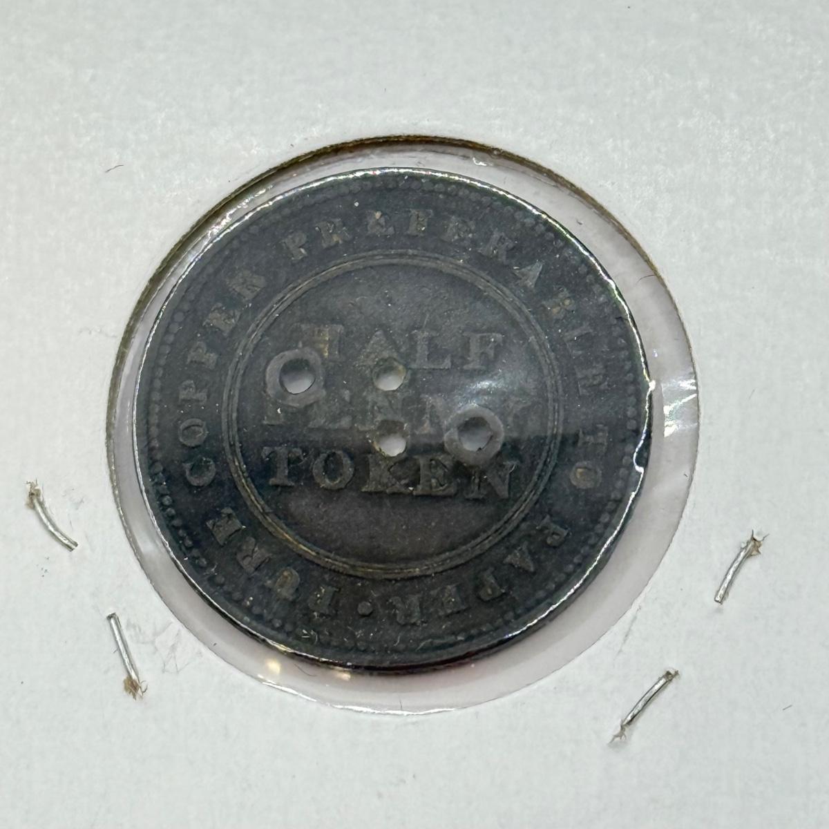 LOT 551J: 1800s Antique Canadian Coins & Tokens: New Brunswick Penny Token, Success to the Fisheries, Canadian 1/2 Penny & More