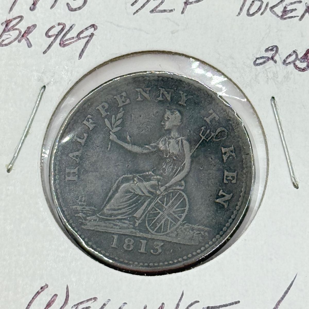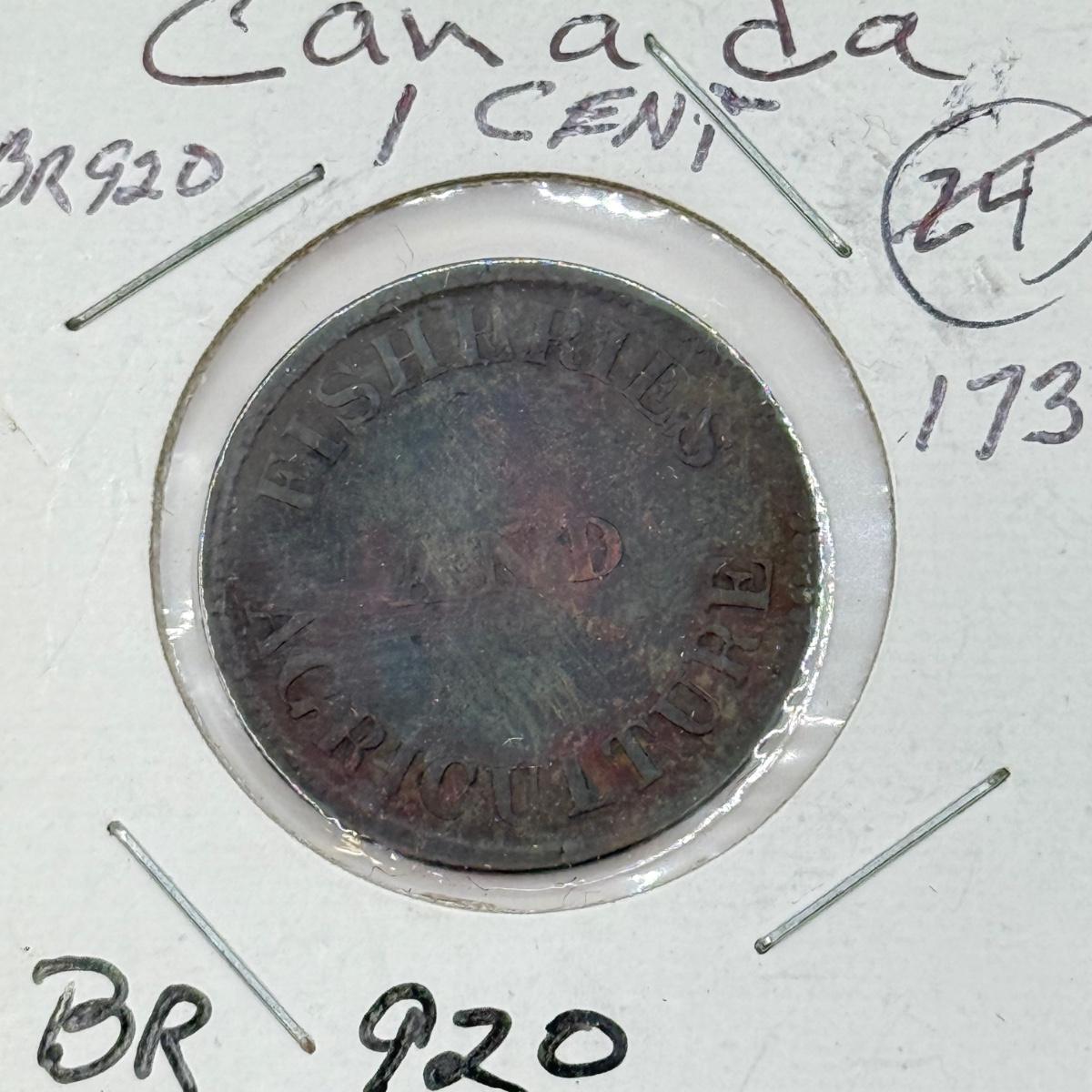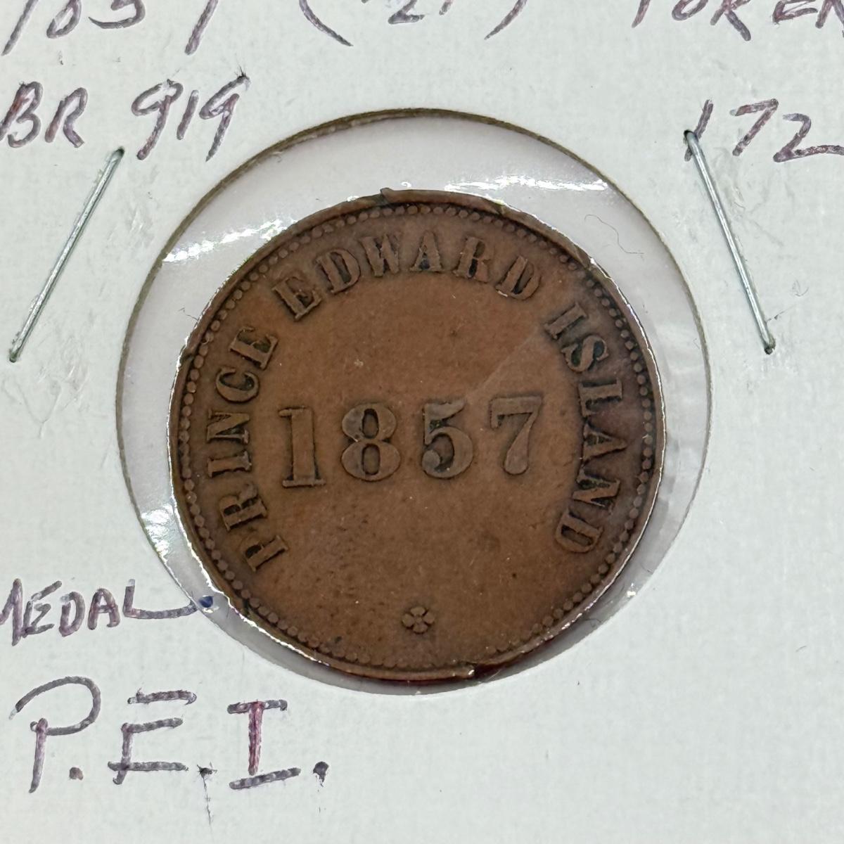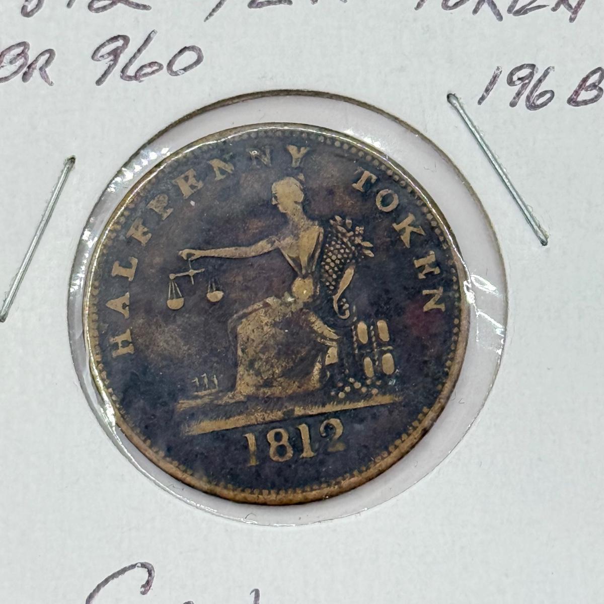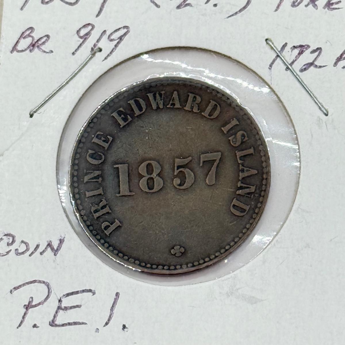 LOT 551J: 1800s Antique Canadian Coins & Tokens: New Brunswick Penny Token, Success to the Fisheries, Canadian 1/2 Penny & More
